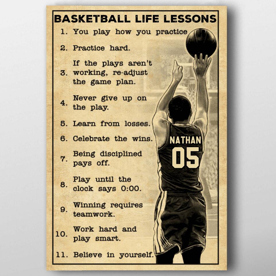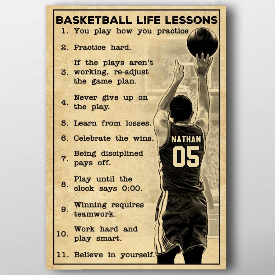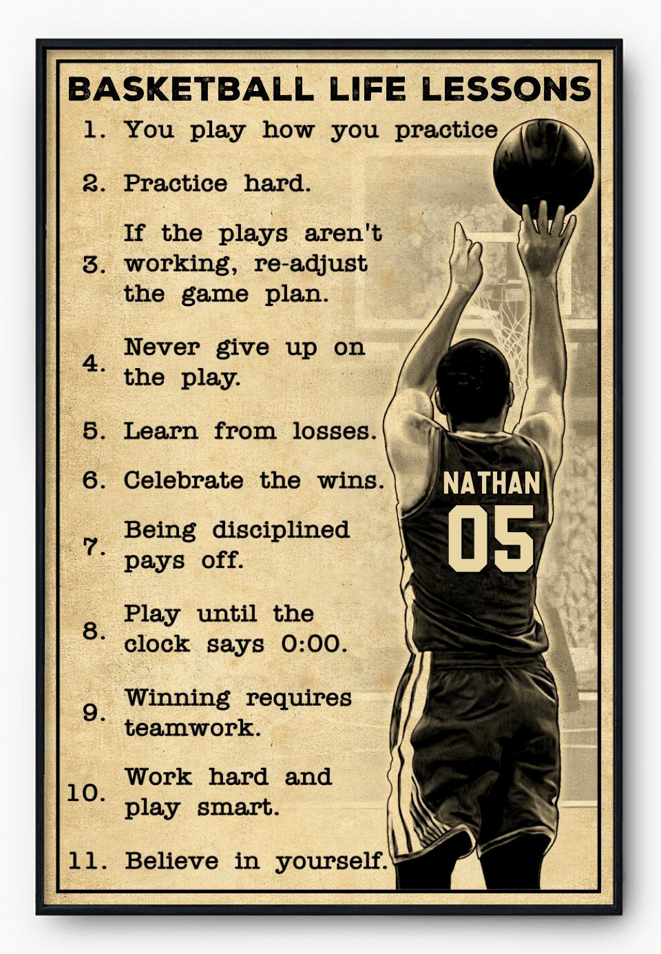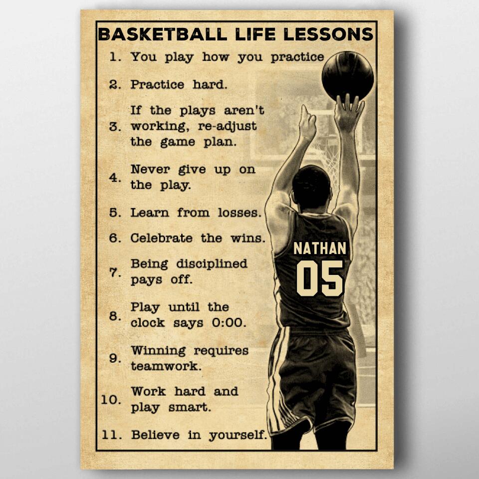 Custom Personalized Basketball Poster, Canvas, Vintage Style, Sport Gifts For Son, Gifts For Basketball Son, Basketball Lover Gifts, Personalized Basketball Gifts, Gift For A Basketball Player With Custom Name & Number LMD0704B01SA