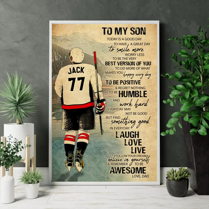 Custom Personalized Ice Hockey Poster, Canvas, Hockey Gifts, Gifts For Hockey Players, To My Son With Custom Name, Number & Appearance LTL1006B01DA