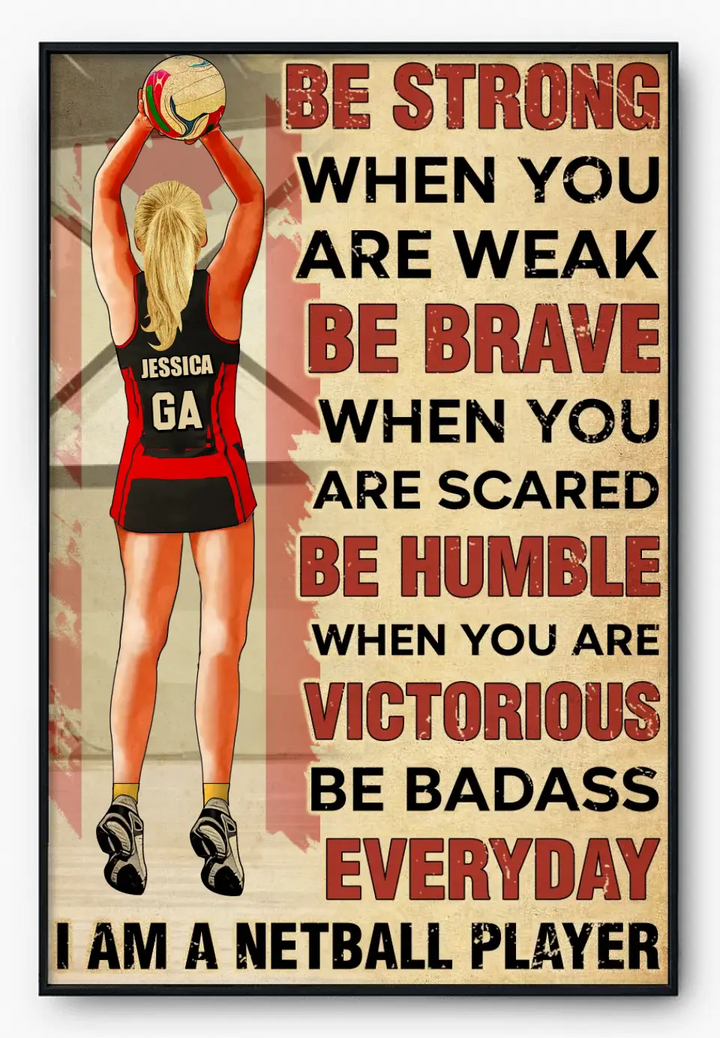 Custom Personalized Netball Poster, Canvas with custom Name, Number & Appearance, Gifts For Daughter, Netball Gift, Gifts For Netball Players