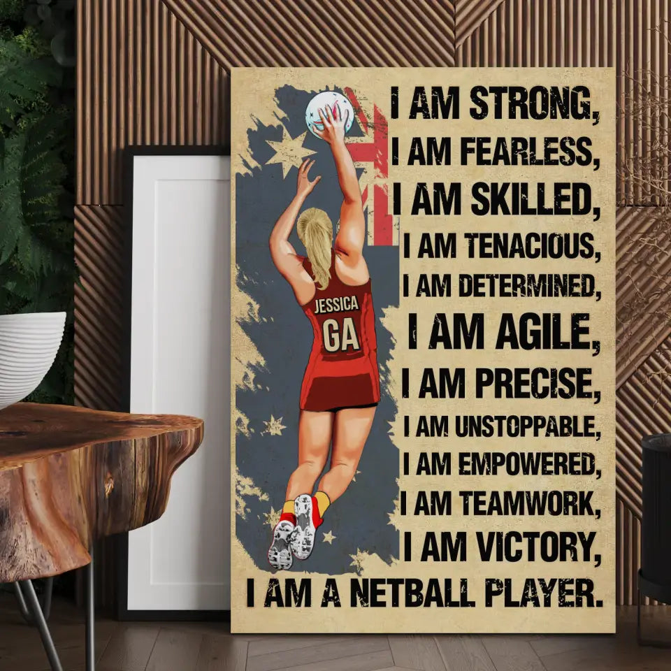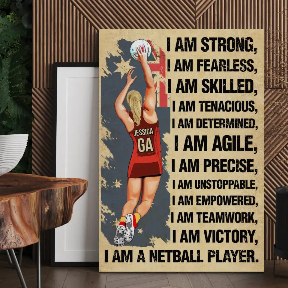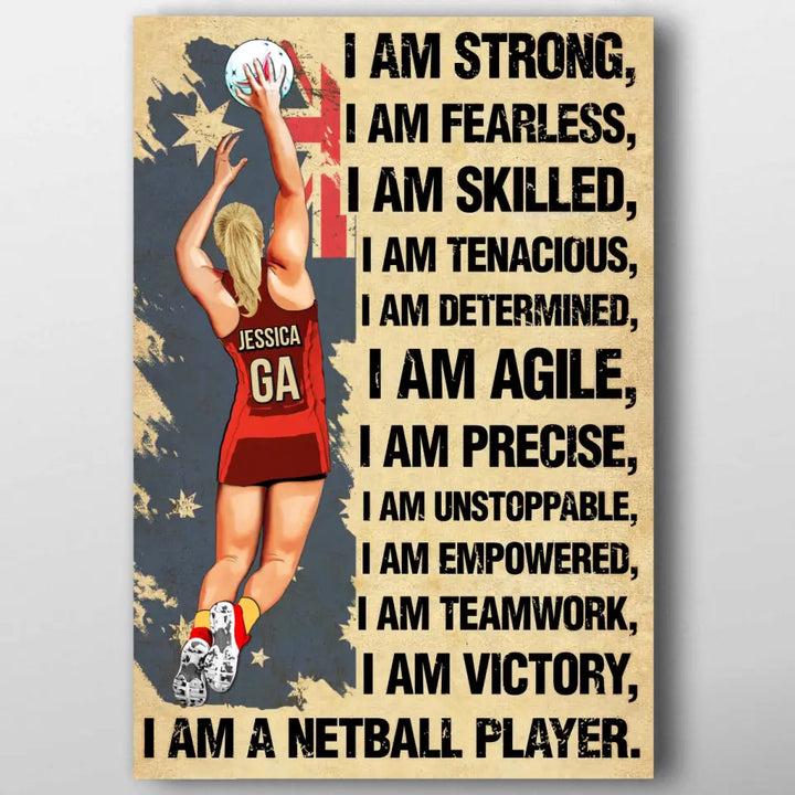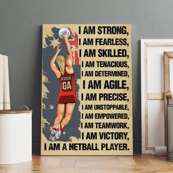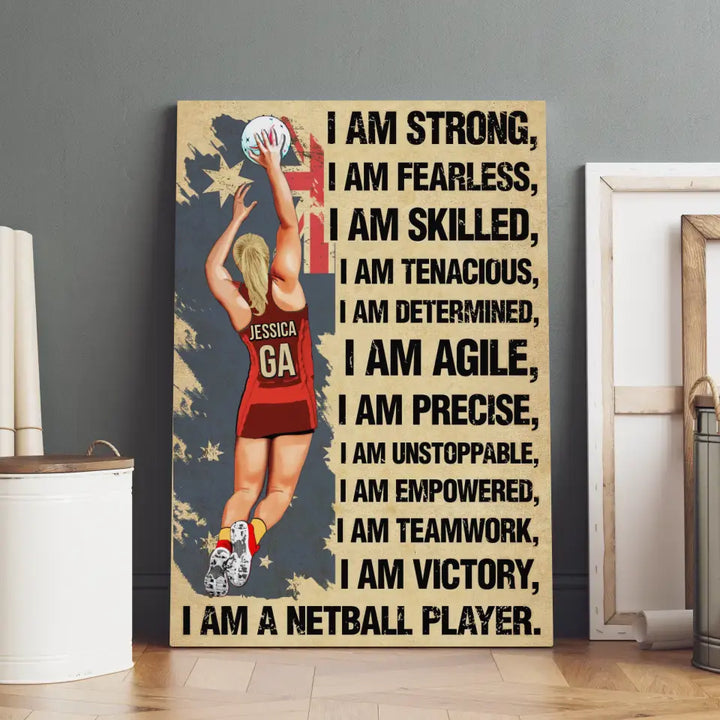 I Am Strong, Custom Personalized Netball Poster, Canvas, Canvas with custom Name, Gifts For Daughter, Gifts For Netball Players HTL0619C02SA