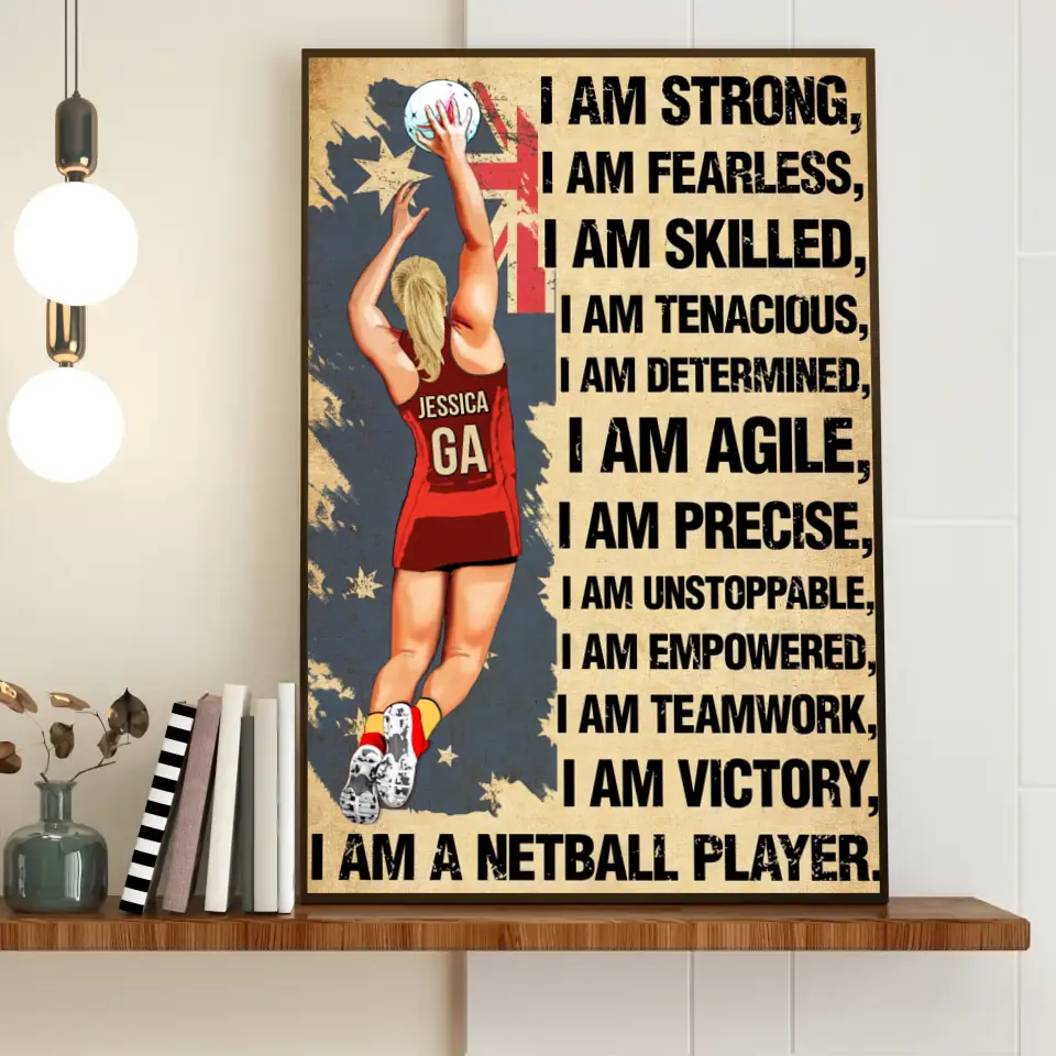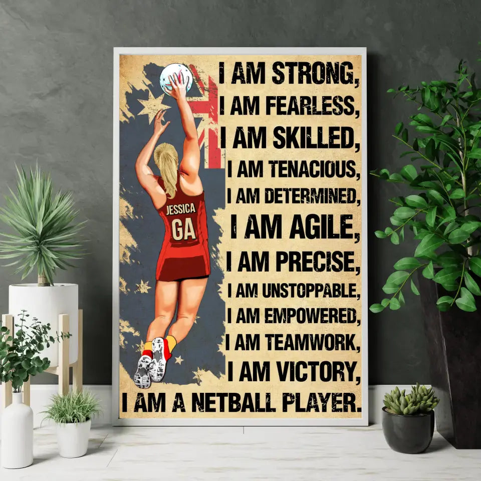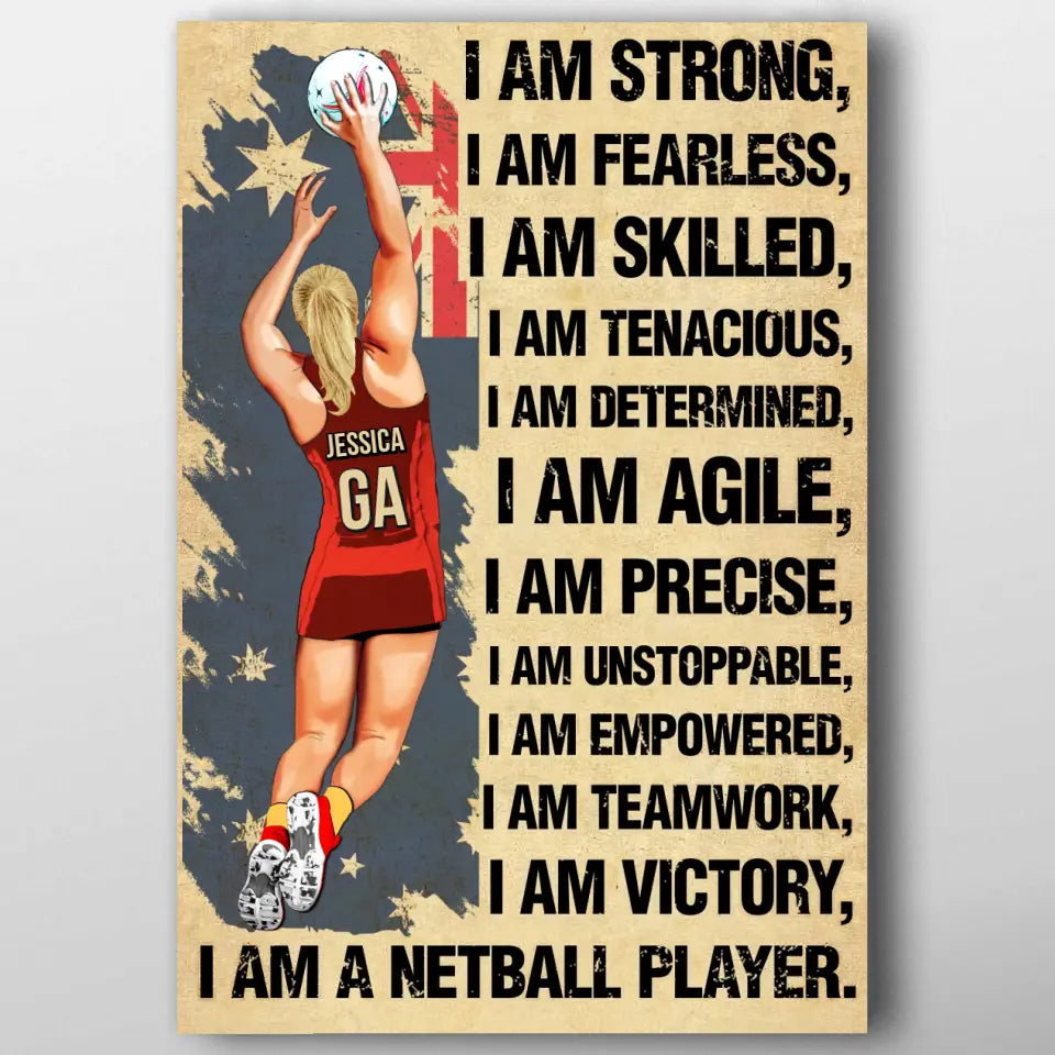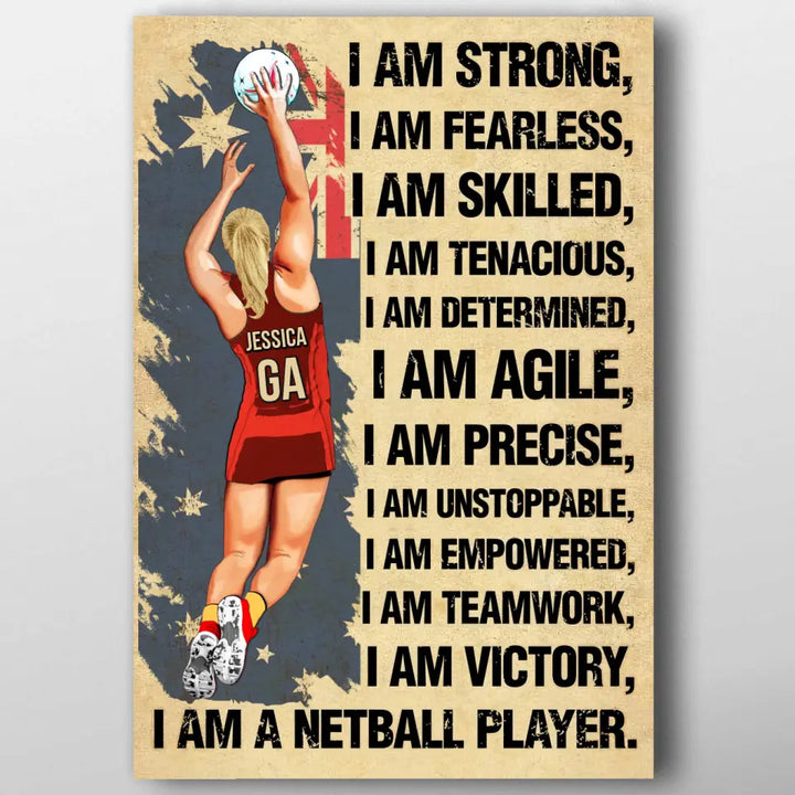 I Am Strong, Custom Personalized Netball Poster, Canvas, Canvas with custom Name, Gifts For Daughter, Gifts For Netball Players HTL0619C02SA