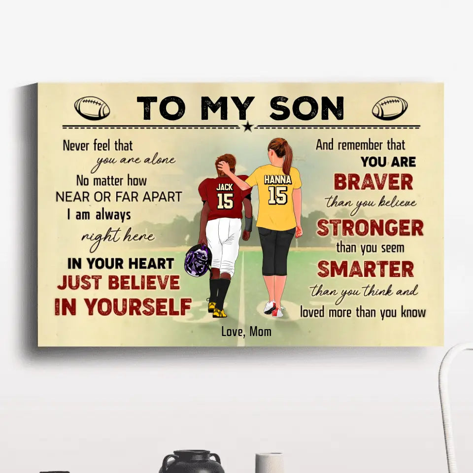 Football Poster, Canvas with custom Name, Number & Appearance, American Football Gift, Gifts For American Football Players, Sport Gifts For Son, Football Lover Gifts Lovers LLL0629C02SA