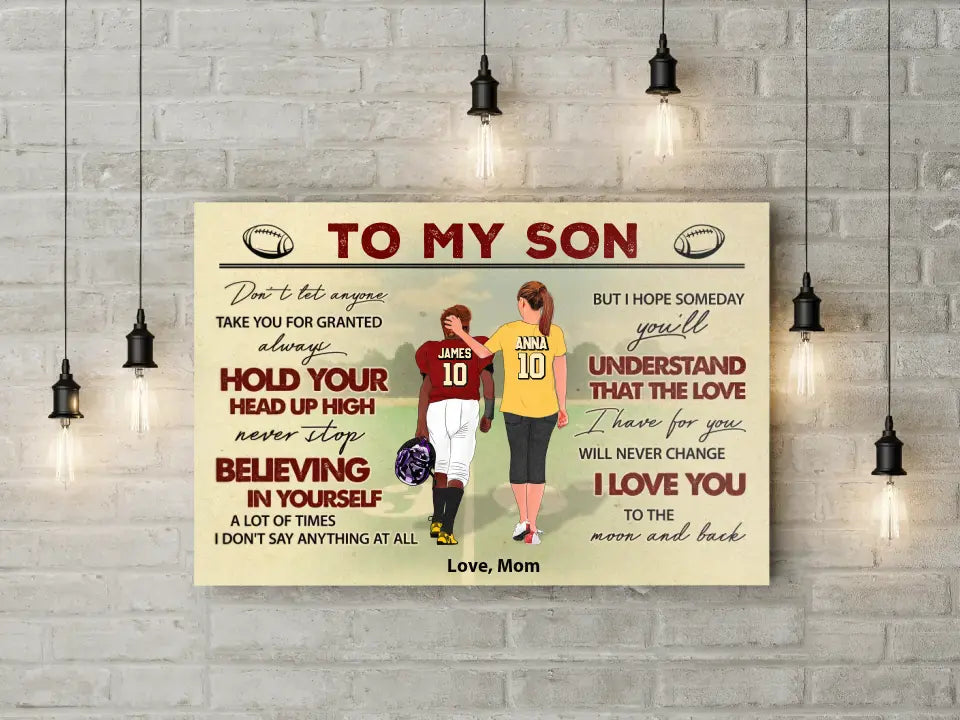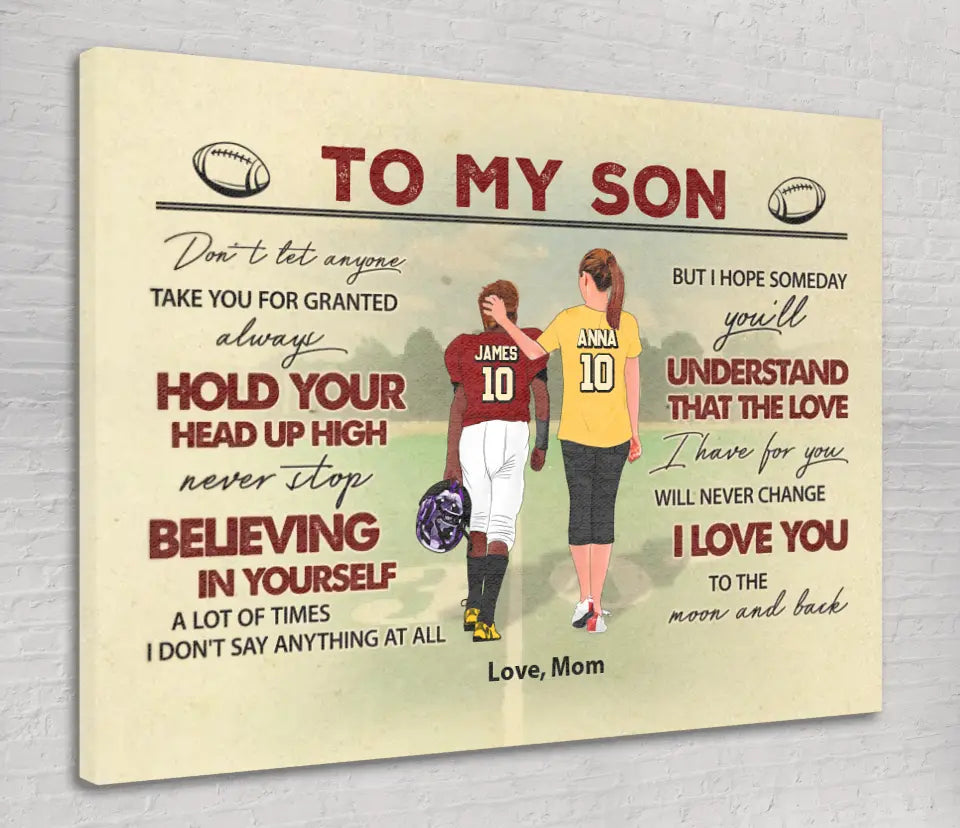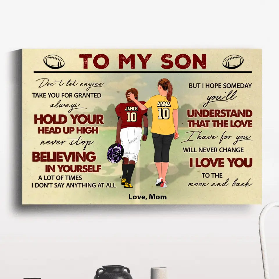 Football Poster, Canvas with custom Name, Number & Appearance, American Football Gift, Gifts For American Football Players, Sport Gifts For Son, Football Lover Gifts Lovers LLL0703C01SA