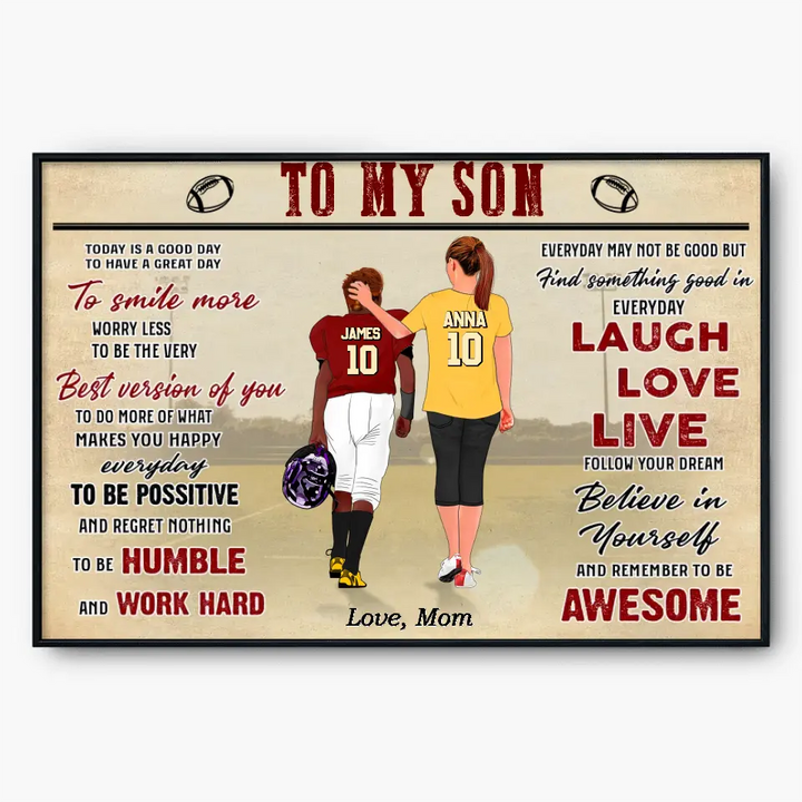Football Poster, Canvas with custom Name, Number & Appearance, American Football Gift, Gifts For American Football Players, Sport Gifts For Son, Football Lover Gifts Lovers LLL0704C01HV