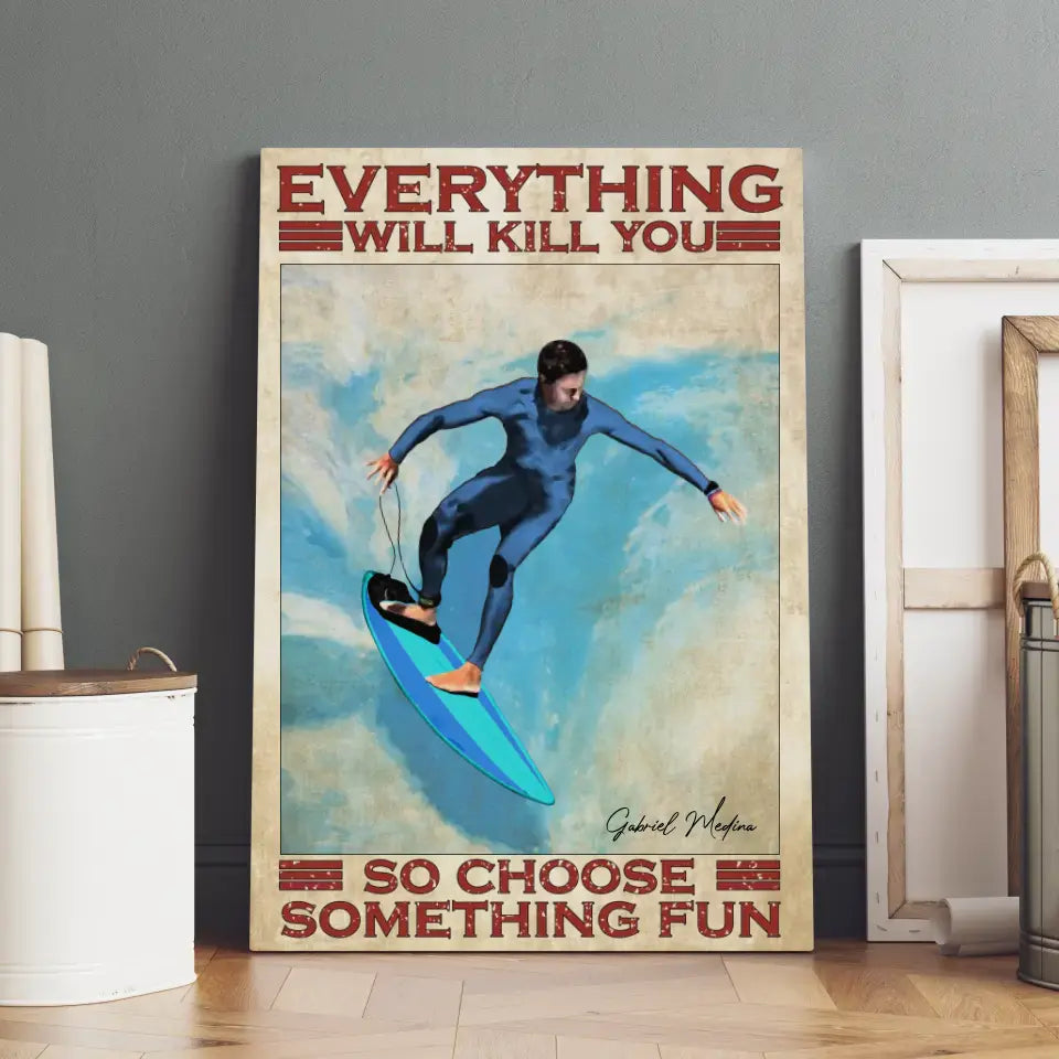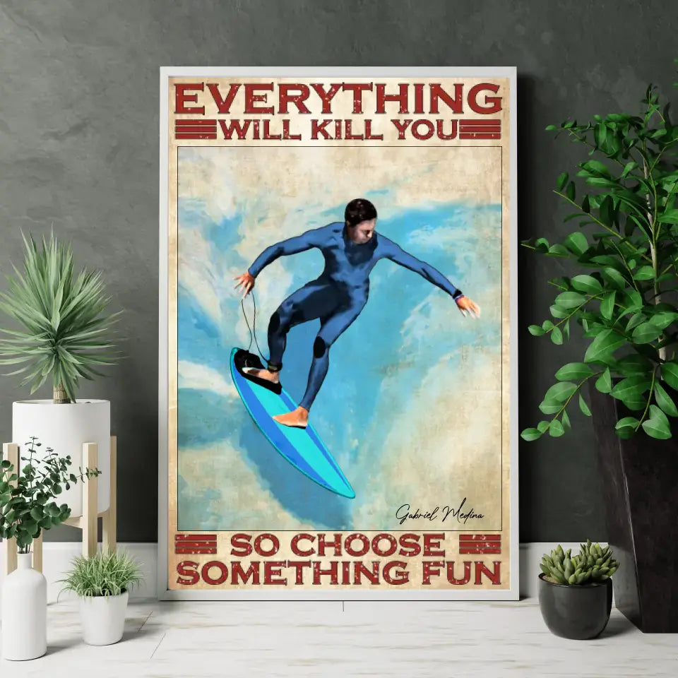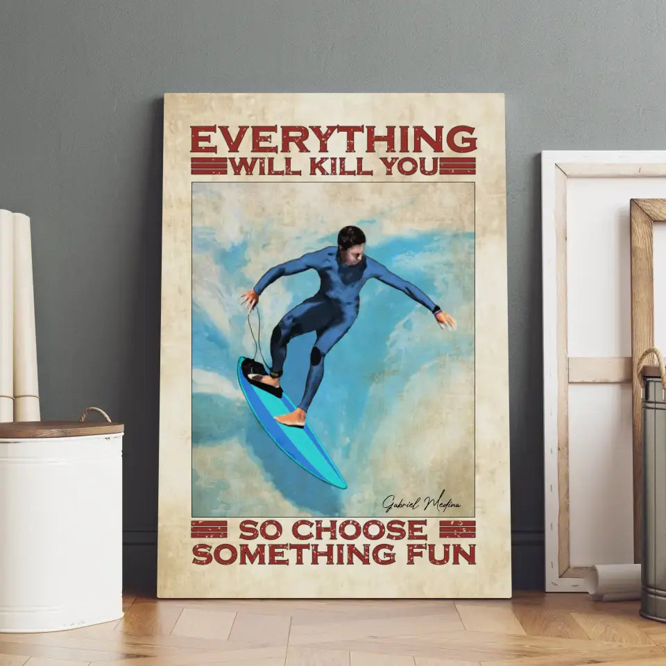 Surfing Poster, Canvas with custom Appearance, Surfing Gift, Gifts For Surfers, Sport Gifts For Son, Surfing Lover Gifts Lovers LLL0718C01DP