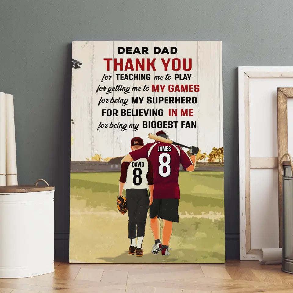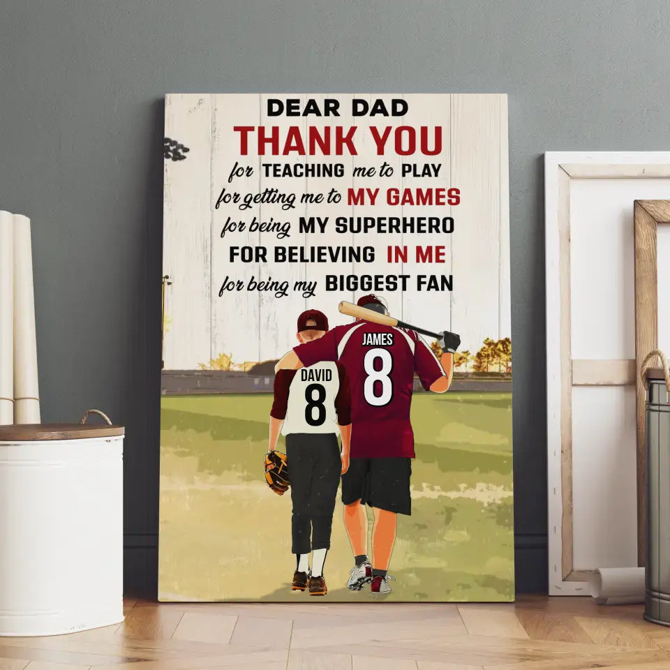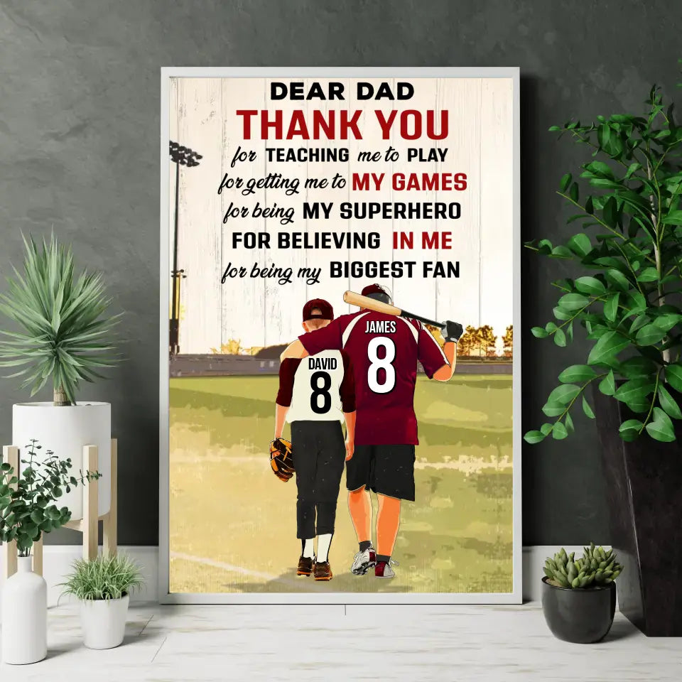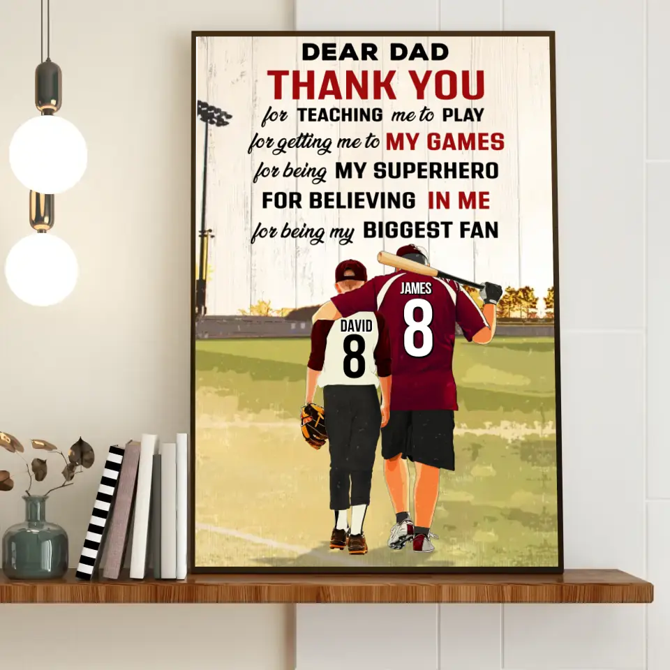 Custom Personalized Dear Dad, Thank You For Teaching Me To Play Baseball Poster, Canvas with custom Name, Number & Appearance, Baseball Gift, Gifts For Baseball Players, Sport Gifts For Son, Baseball Lover Gifts NHT0529C03SA