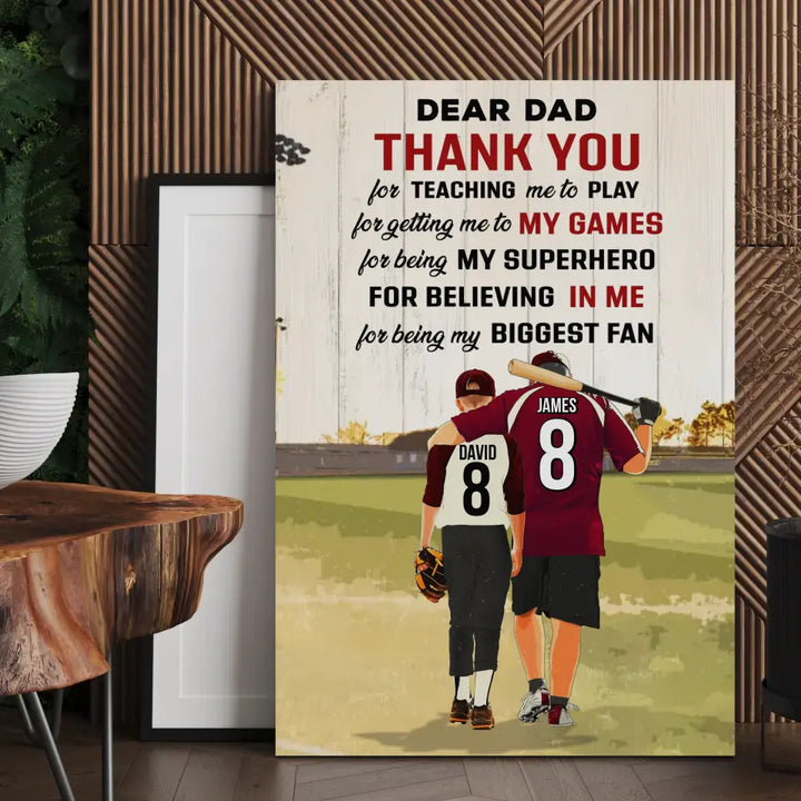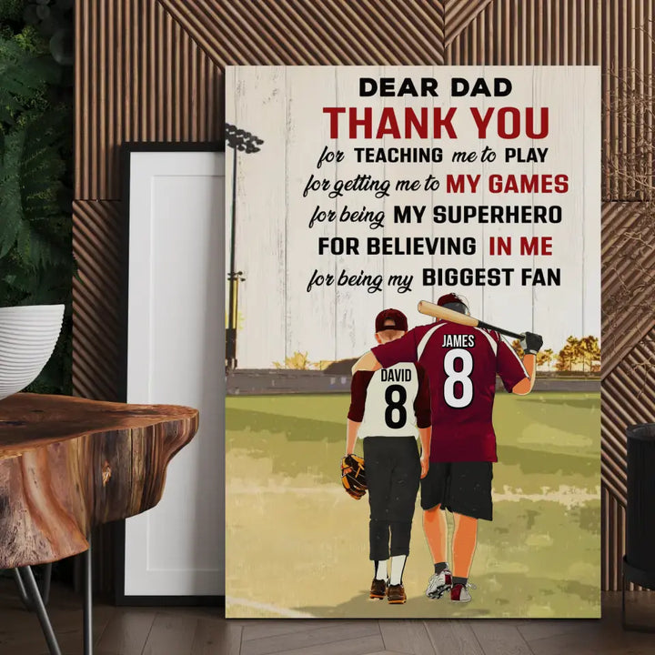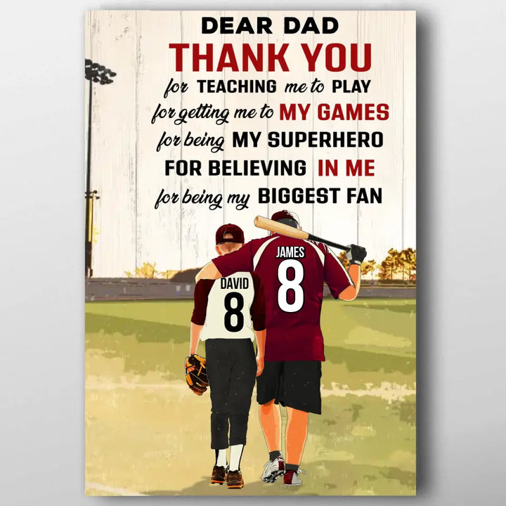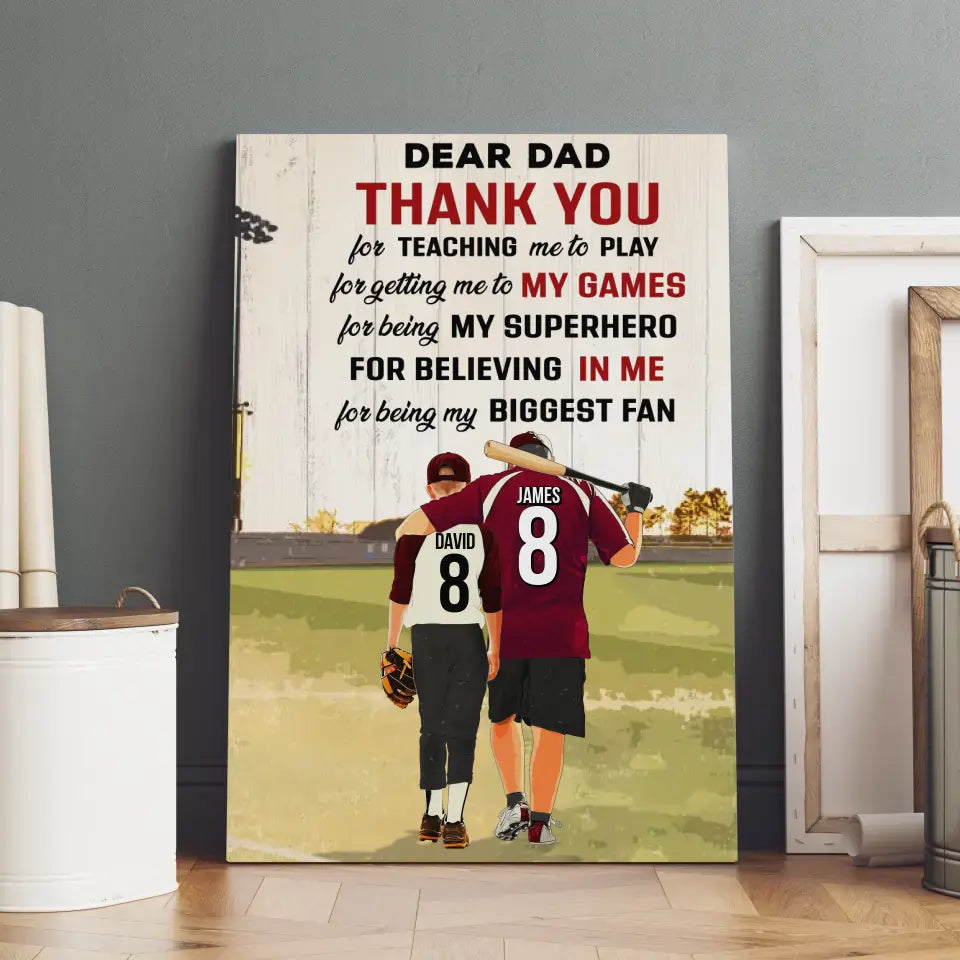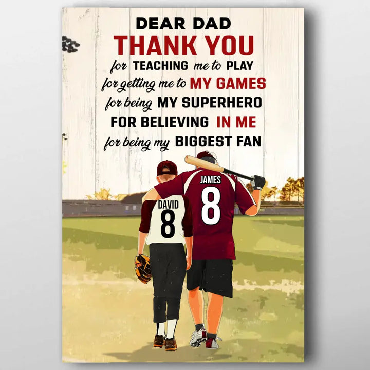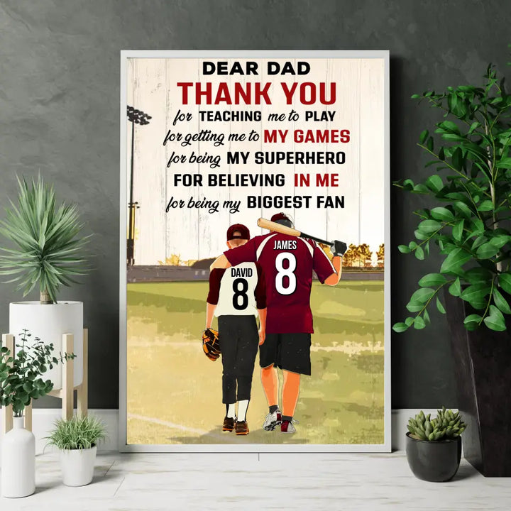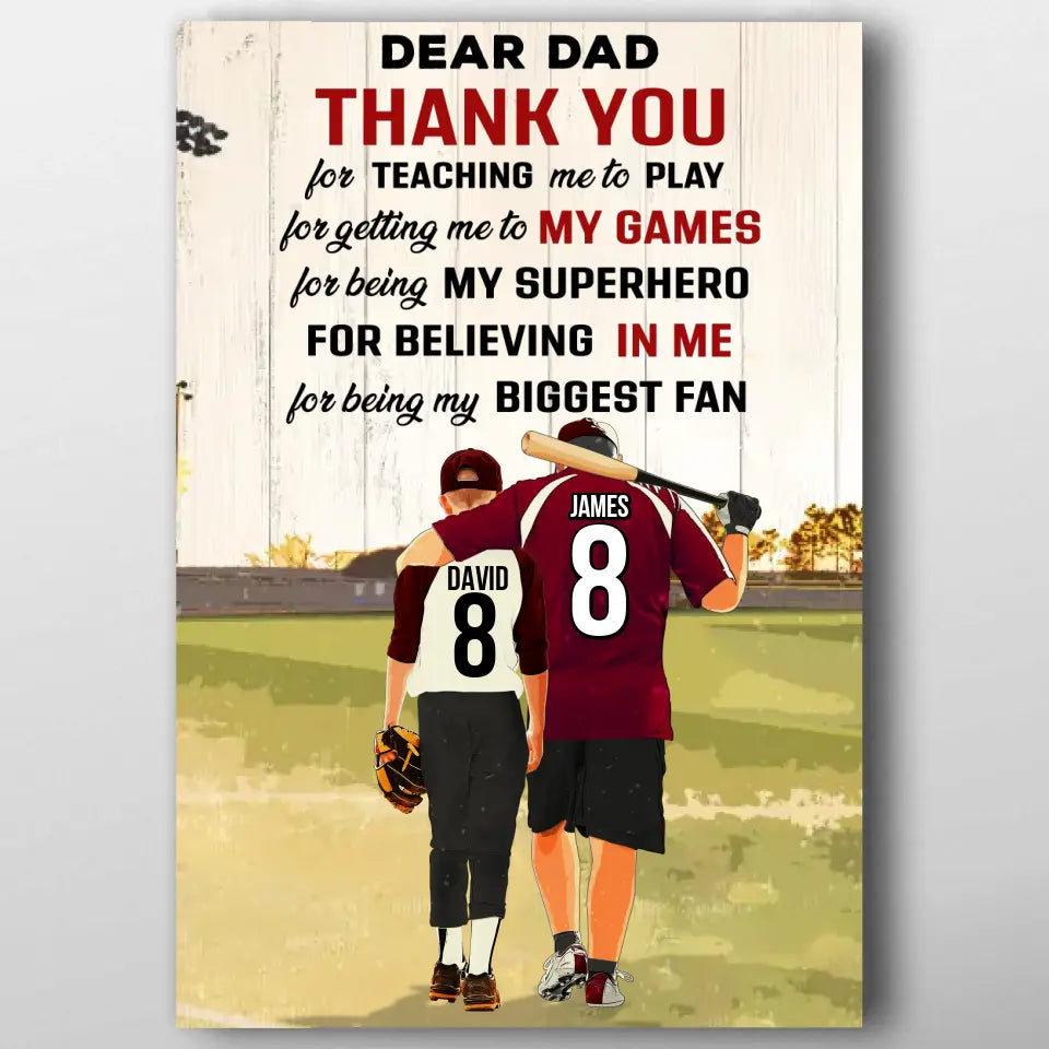 Custom Personalized Dear Dad, Thank You For Teaching Me To Play Baseball Poster, Canvas with custom Name, Number & Appearance, Baseball Gift, Gifts For Baseball Players, Sport Gifts For Son, Baseball Lover Gifts NHT0529C03SA