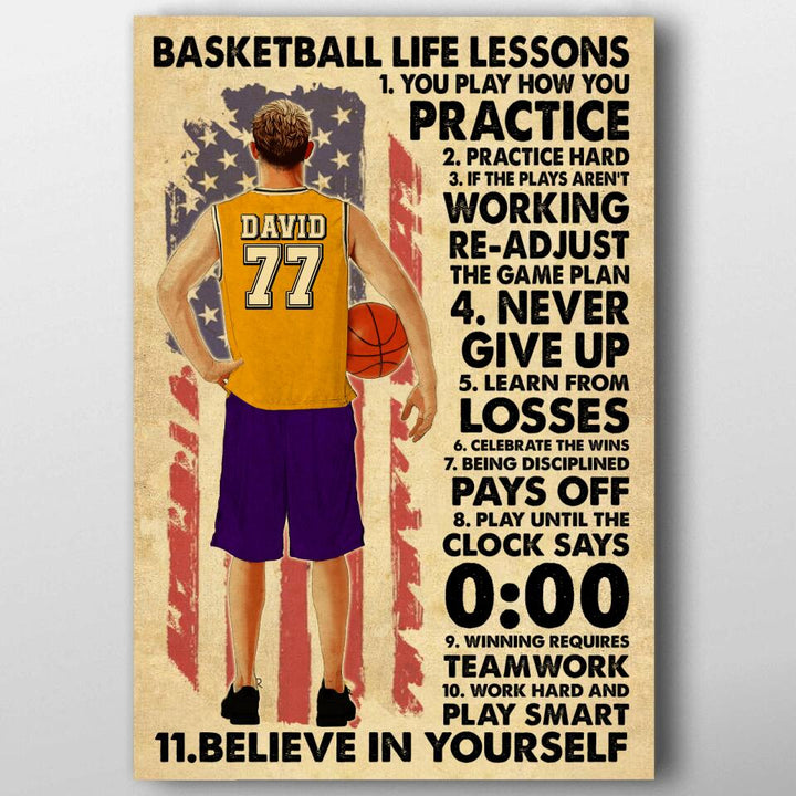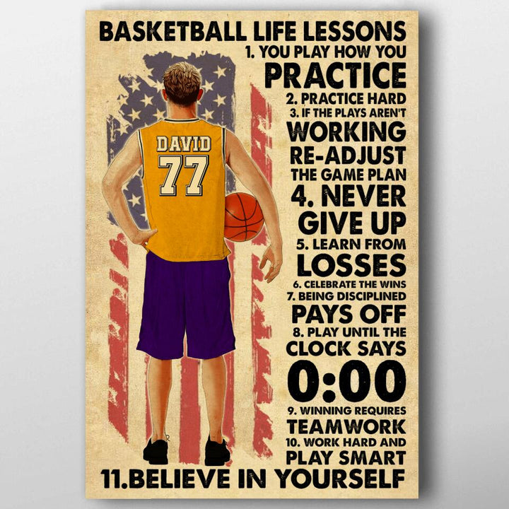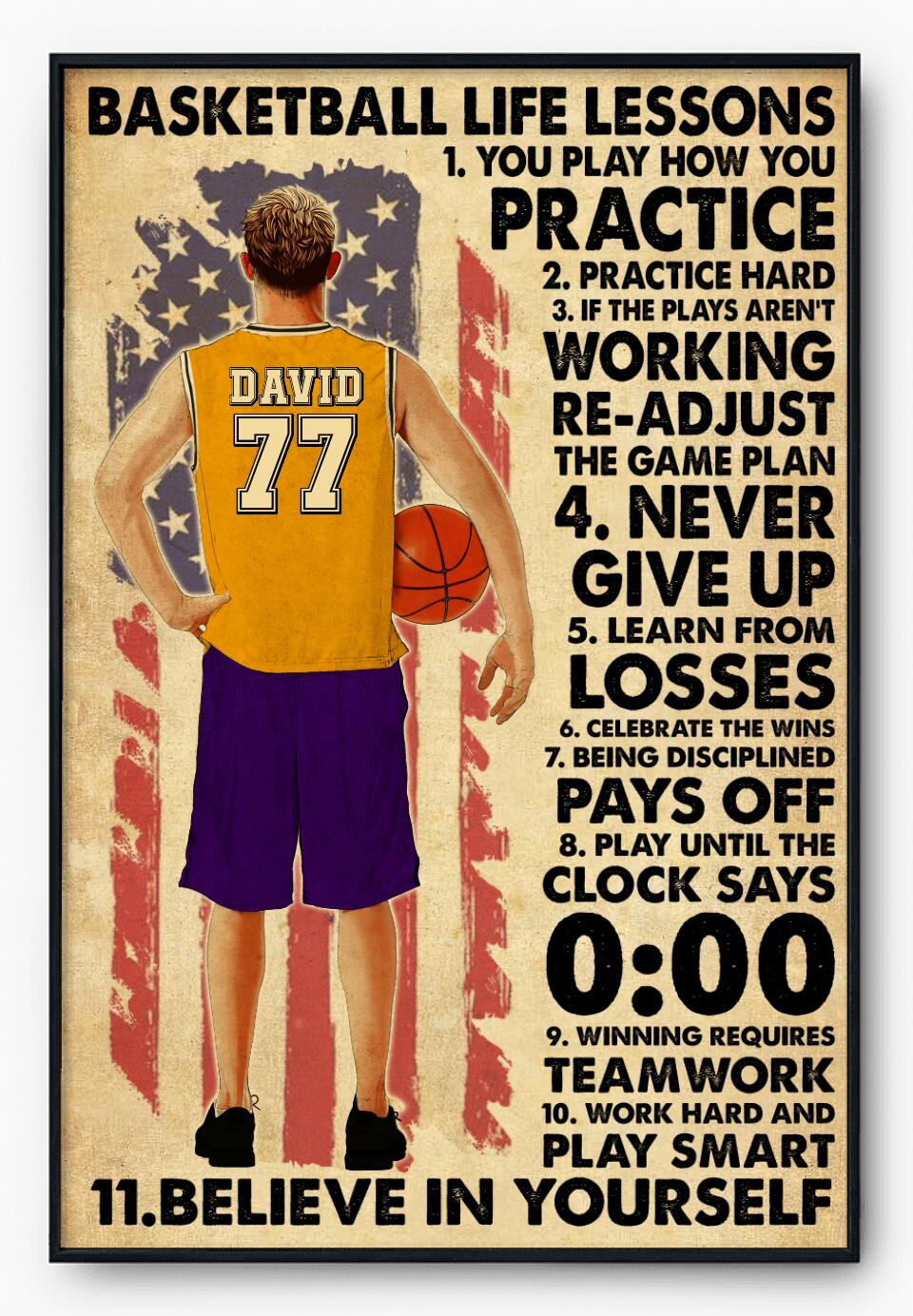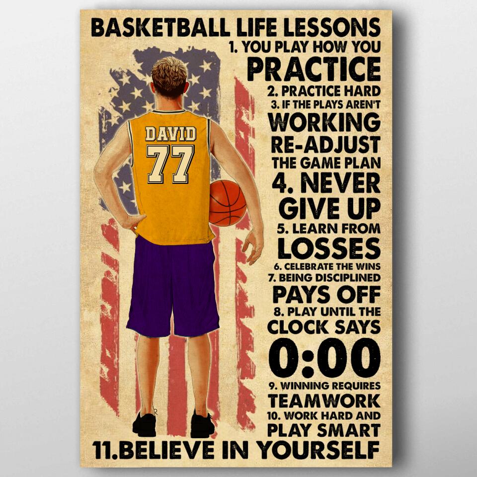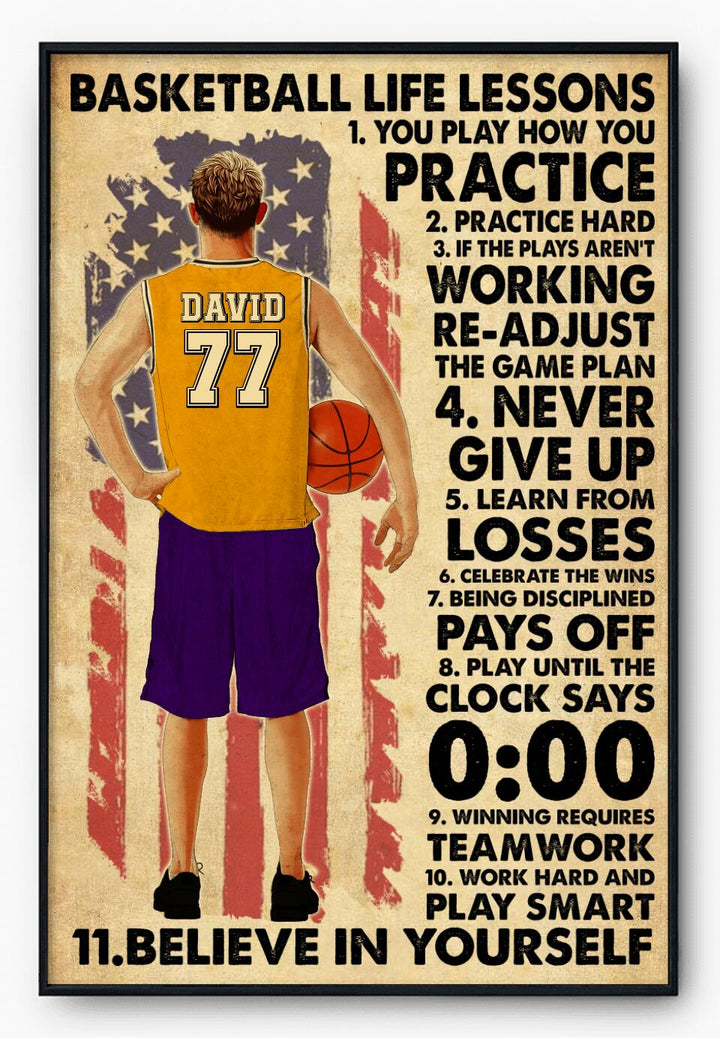 Custom Personalized Basketball Poster, Canvas with custom Name, Number, Appearance & Background, Vintage Style Wall Art, Sport Gifts For Son NTB0427B03DP