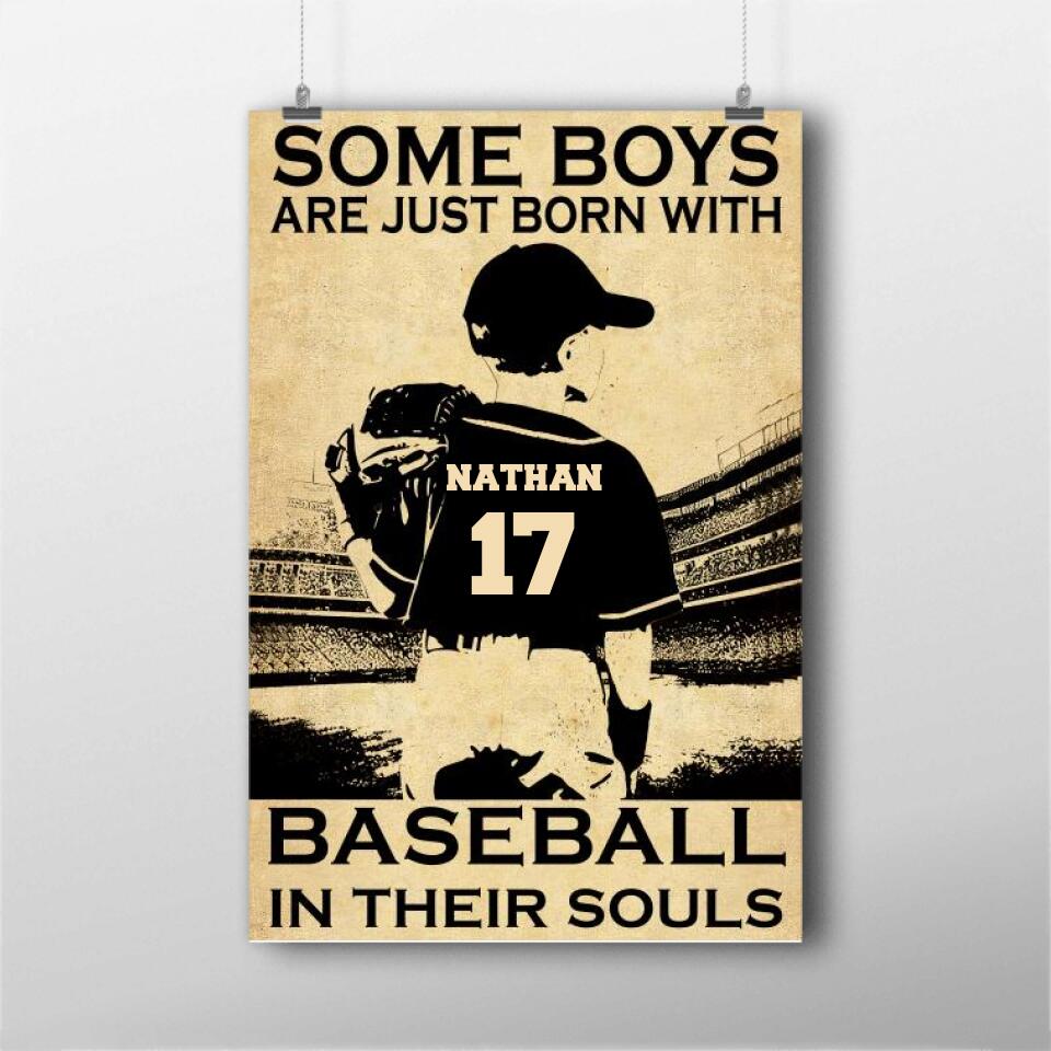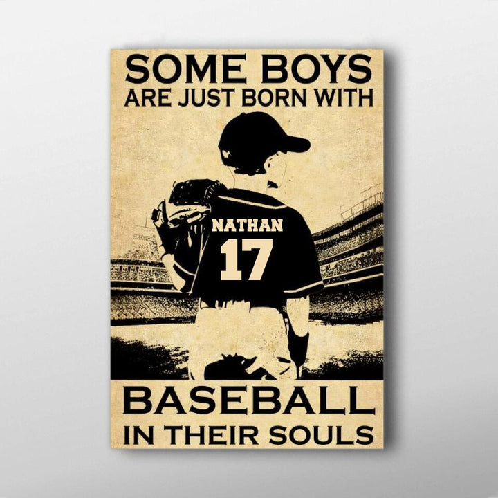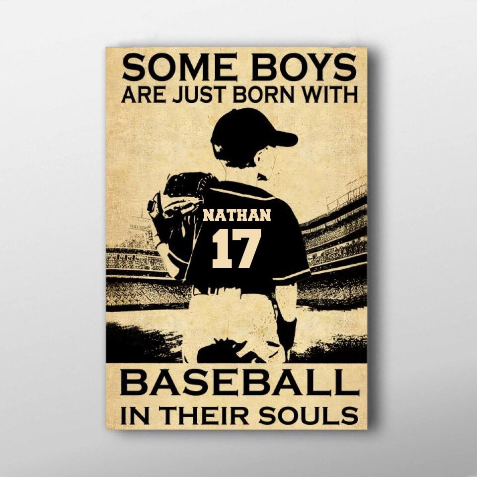 Personalized Baseball Poster, Canvas with custom Name & Number, Vintage Style, Baseball Gifts To My Son NTB0310B15CL