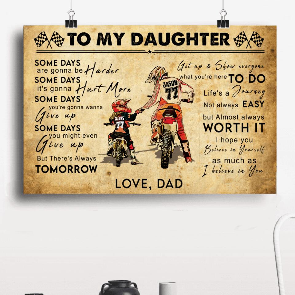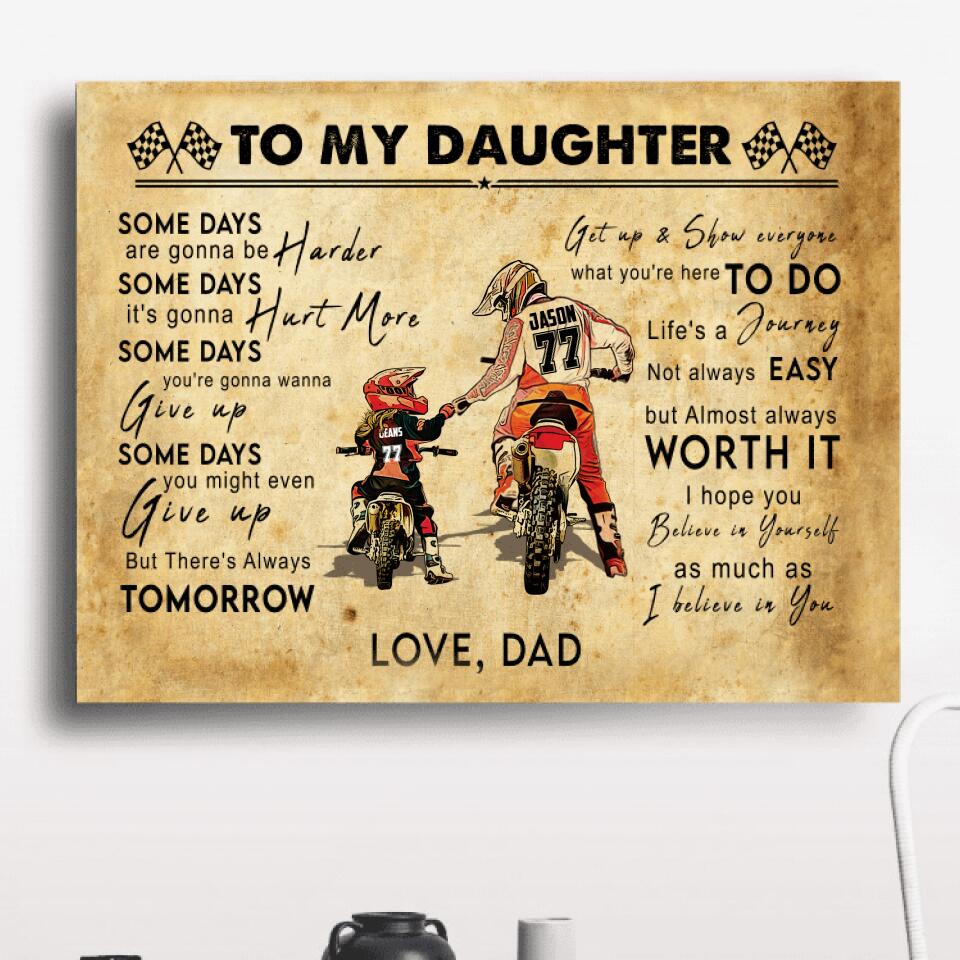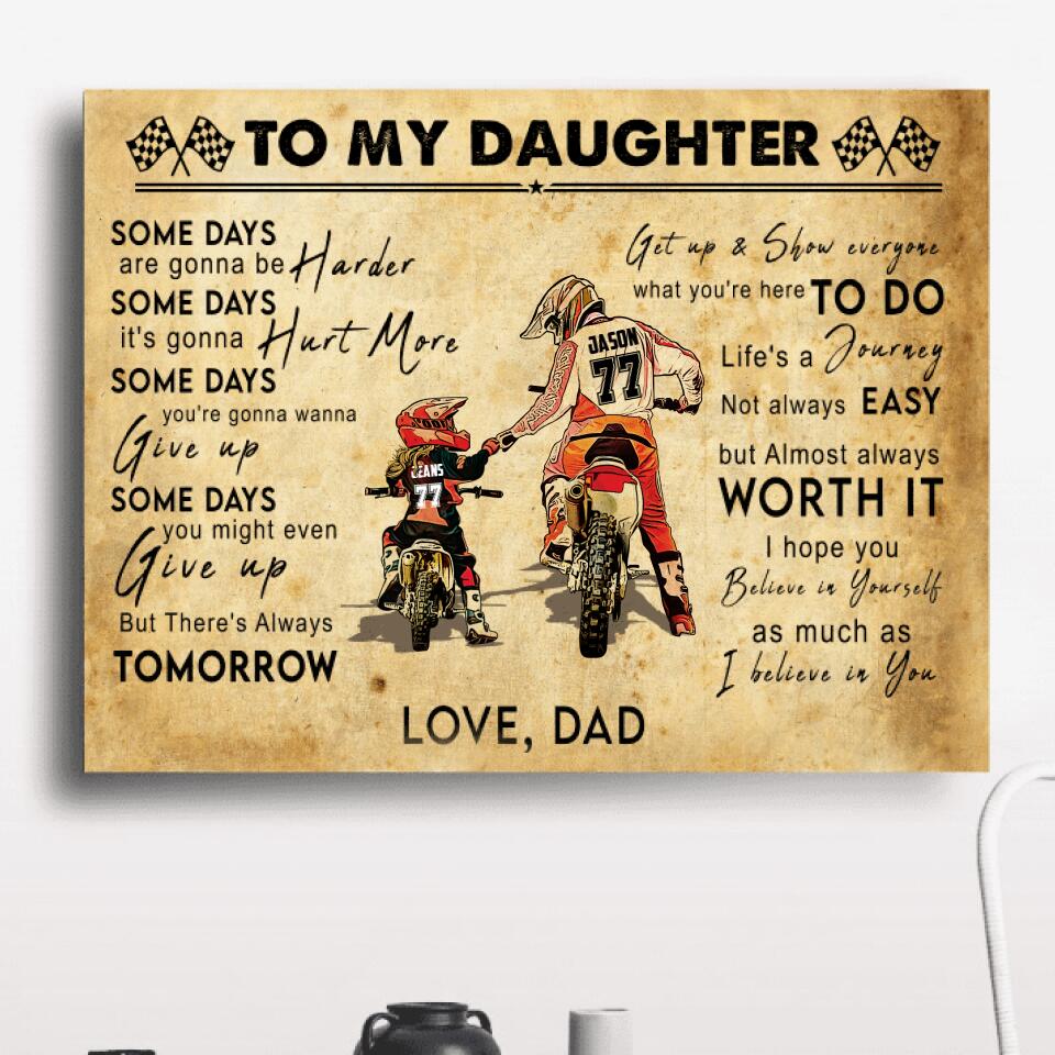 Custom Personalized Motocross Poster, Canvas with custom Name, Number & Appearance, Vintage Dirt Bike Dad And Daughter - NTB0114B01DP
