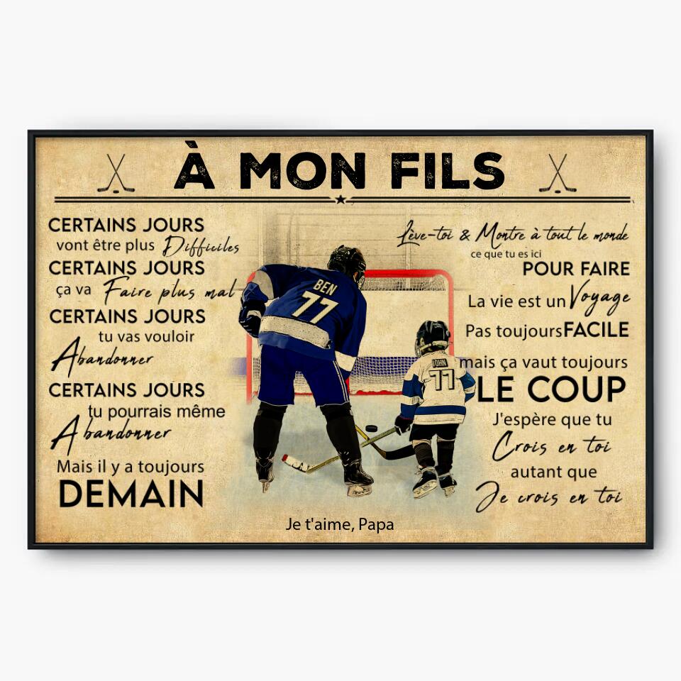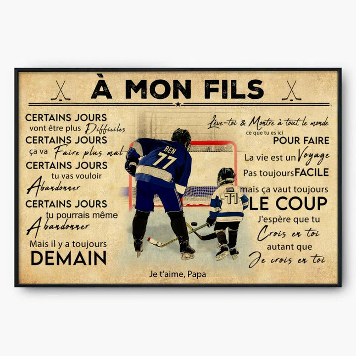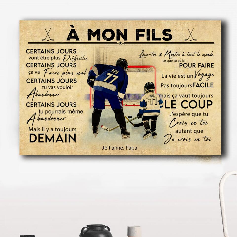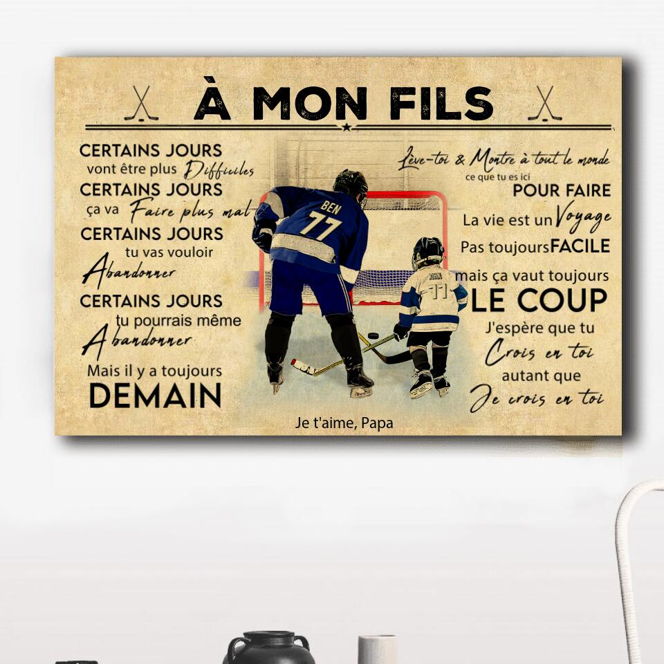 Poster, Canvas Personnalisées de Hockey sur Glace, Avec Nom, Numéro, Apparence & Paysage Personnalisés, Style Vintage, À Mon Fils, Cadeaux Pour Fils, Cadeau de Hockey sur Glace NTB0519B01DPFR
