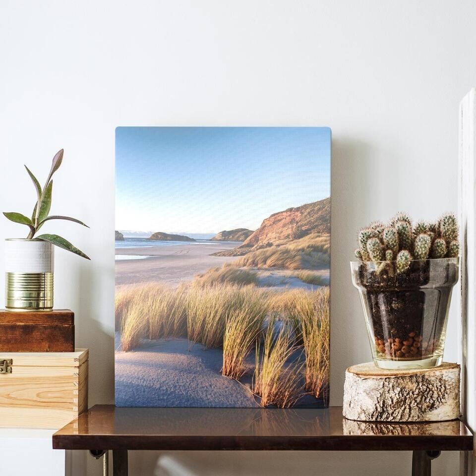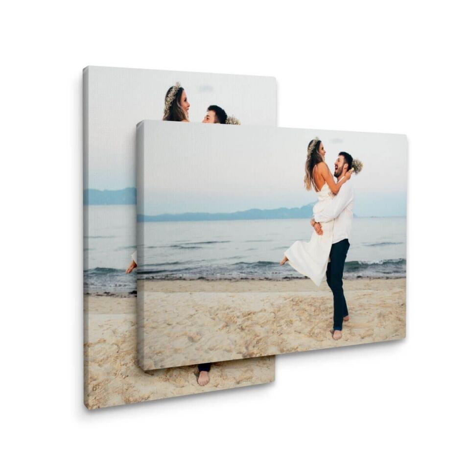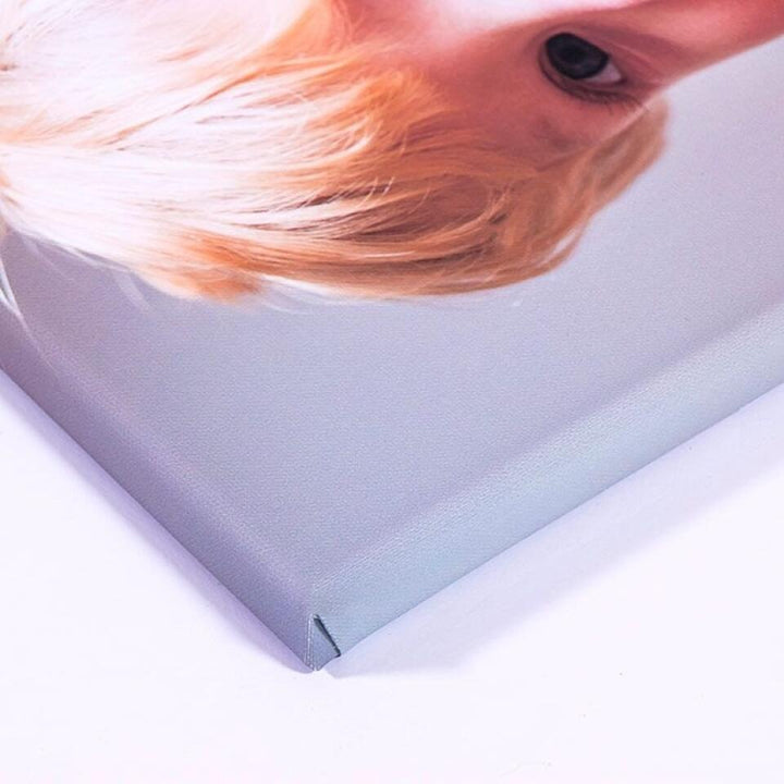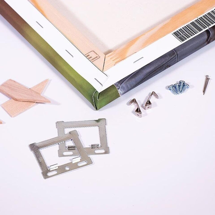 The image is stretched around the sides and stapled to the back of the wooden frame. Your piece of art will be ready to hang, and will include an easy-to-use hanging kit.