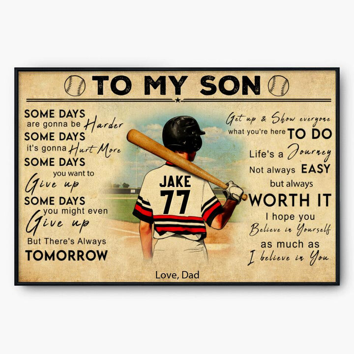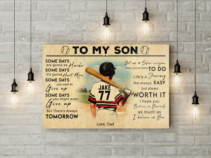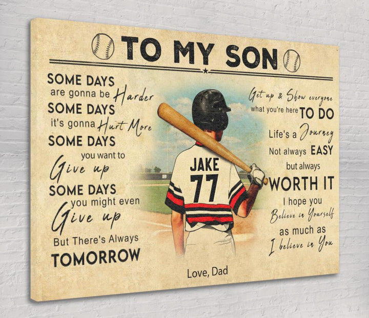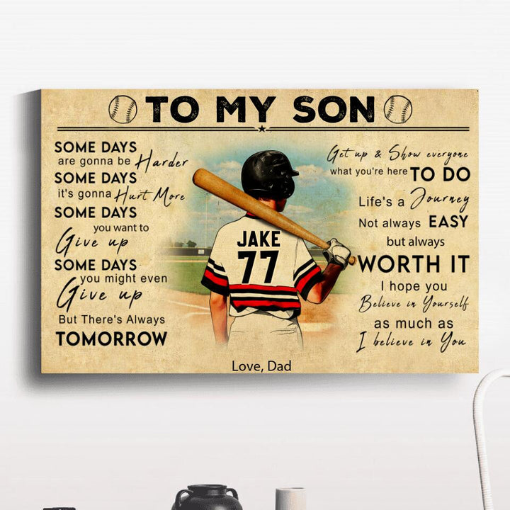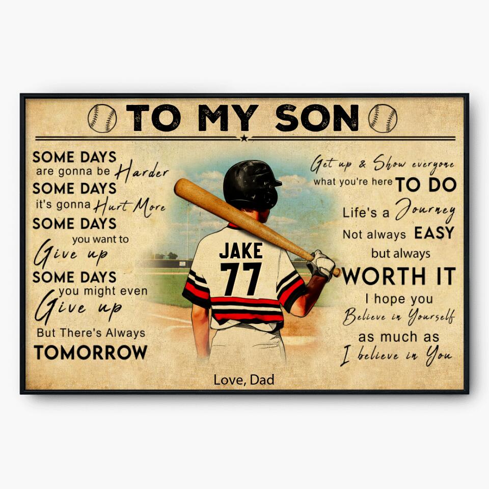 Custom Personalized To My Son Baseball Poster, Canvas, Vintage Style, Baseball Gifts, Baseball Poster, Baseball Room Decor With Custom Name, Number & Appearance LMD0805B01DA