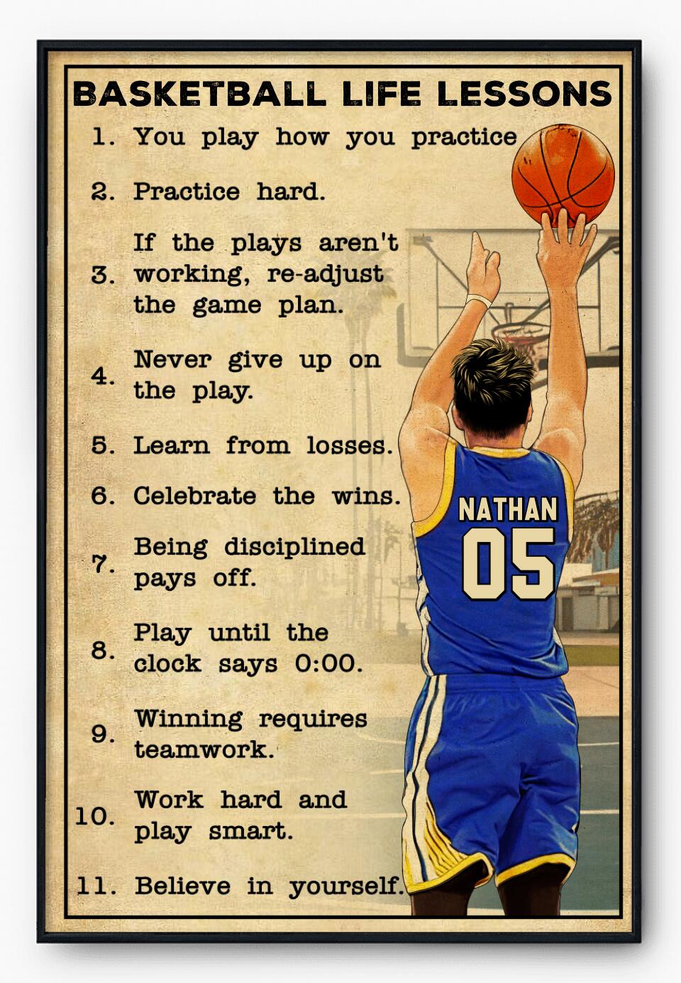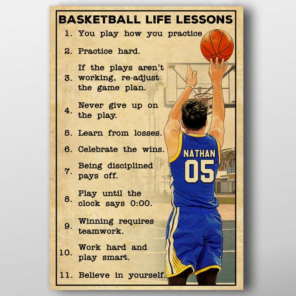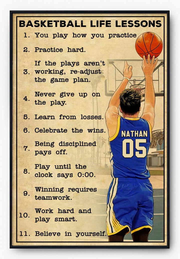 Custom Personalized Basketball Poster, Canvas, Vintage Style, Sport Gifts For Son, Gifts For Basketball Son, Basketball Lover Gifts, Personalized Basketball Gifts, Gift For A Basketball Player With Custom Name, Number & Appearance LMD0711B01SA