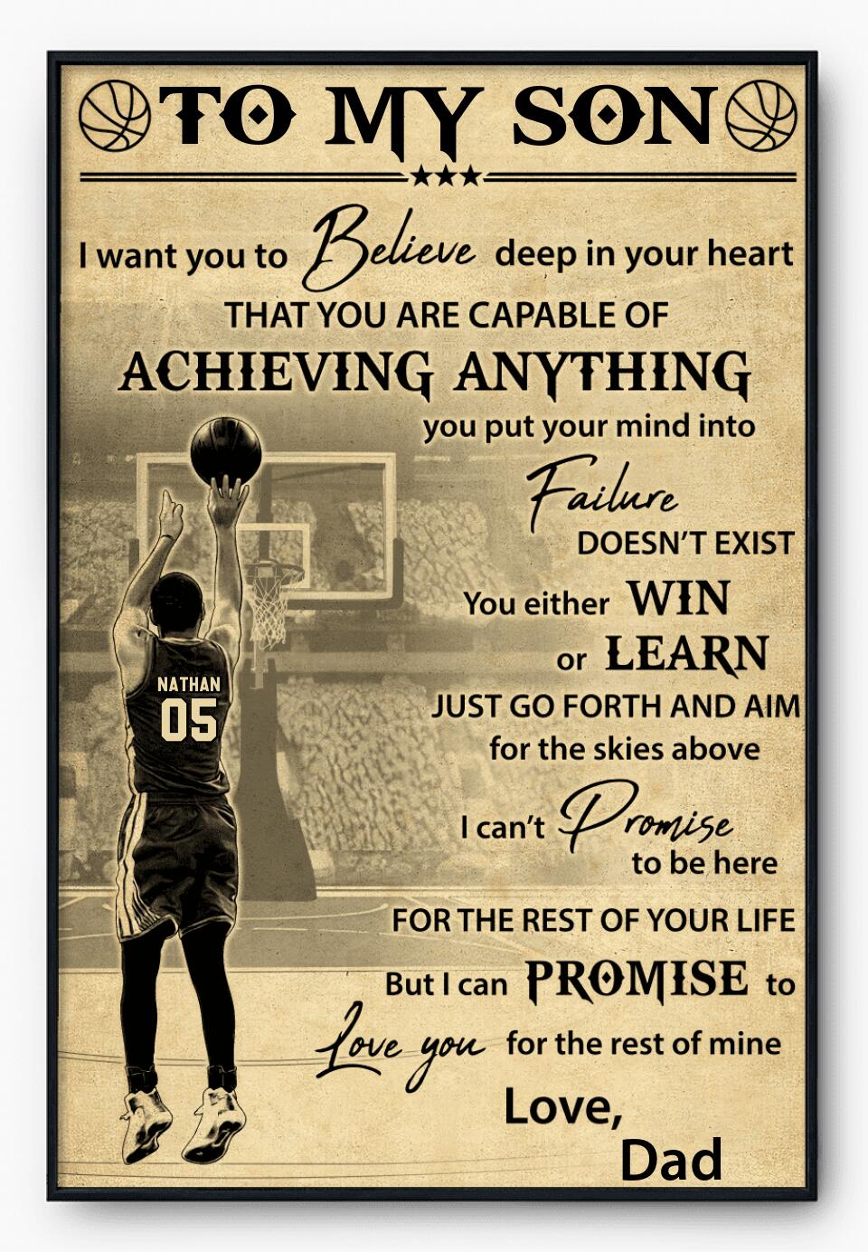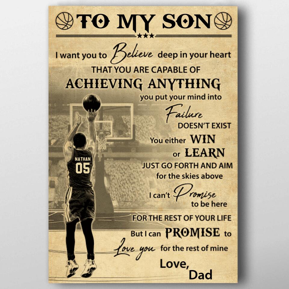 Custom Personalized Basketball Poster, Canvas, Vintage Style, Sport Gifts For Son, Gifts For Basketball Son, Basketball Lover Gifts, Personalized Basketball Gifts, Gift For A Basketball Player With Custom Name & Number LMD0615B02SA