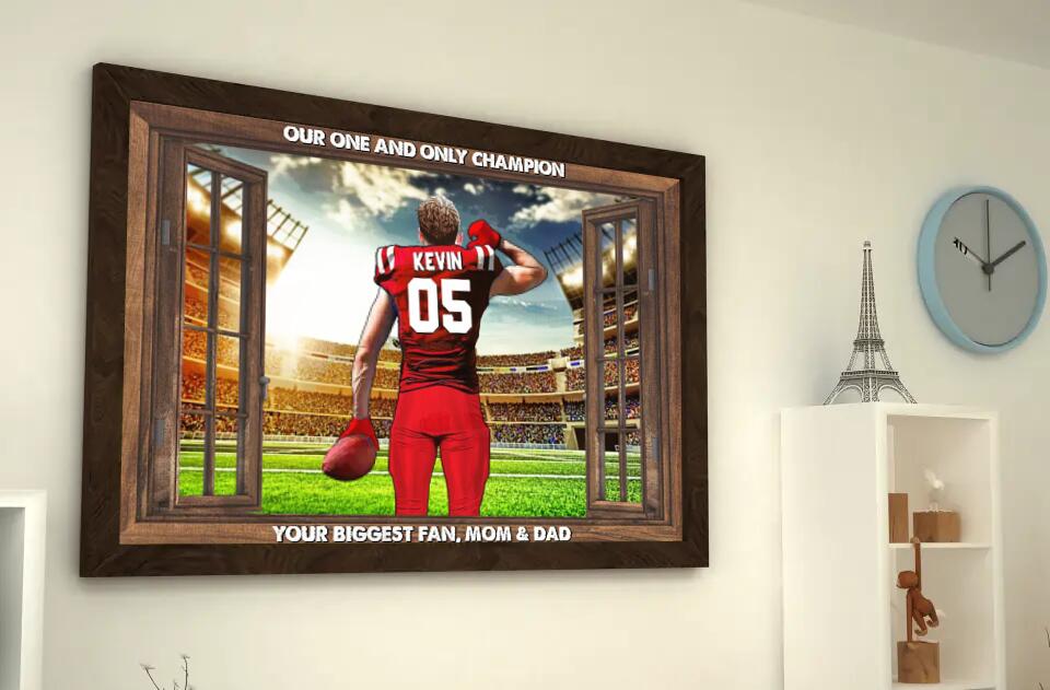 Custom Personalized Football Poster, Canvas with custom Name, Number, Appearance & Landscape, Football Gift, Gifts For Football Players, Sport Gifts For Son, Football Lover Gifts LMD0929B03DA