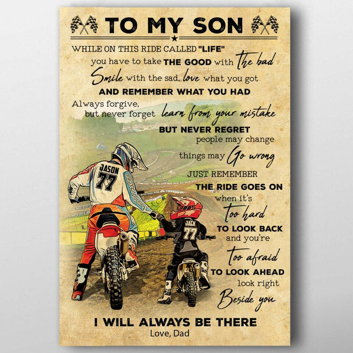 Custom Personalized Motocross Poster, Canvas, Vintage Style, Dirt Bike Gifts For Son, Gift For Daughter With Custom Name, Number & Appearance NTB1606B03SA