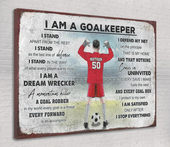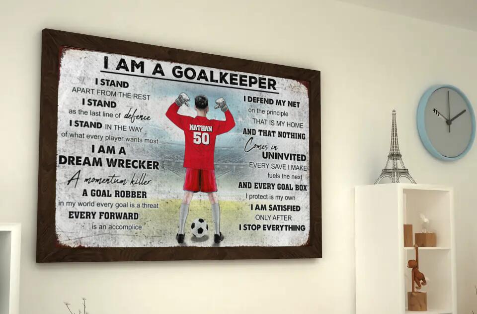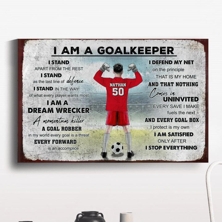 Custom Personalized Soccer Poster, Canvas, Soccer Gift, Gifts For Soccer Players, Sport Gifts For Son, Gifts For Goalkeepers, I Am A Goalkeeper With Custom Name, Number, Appearance & Background LML0201C02DA