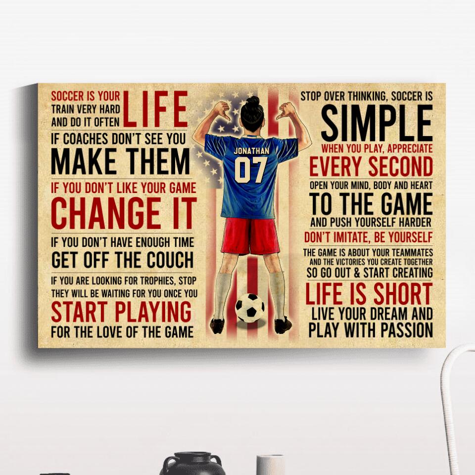Custom Personalized Soccer Poster, Canvas with custom Name, Number, Appearance & Background, Vintage Style, Sport Gifts For Son NTB0422B01DP