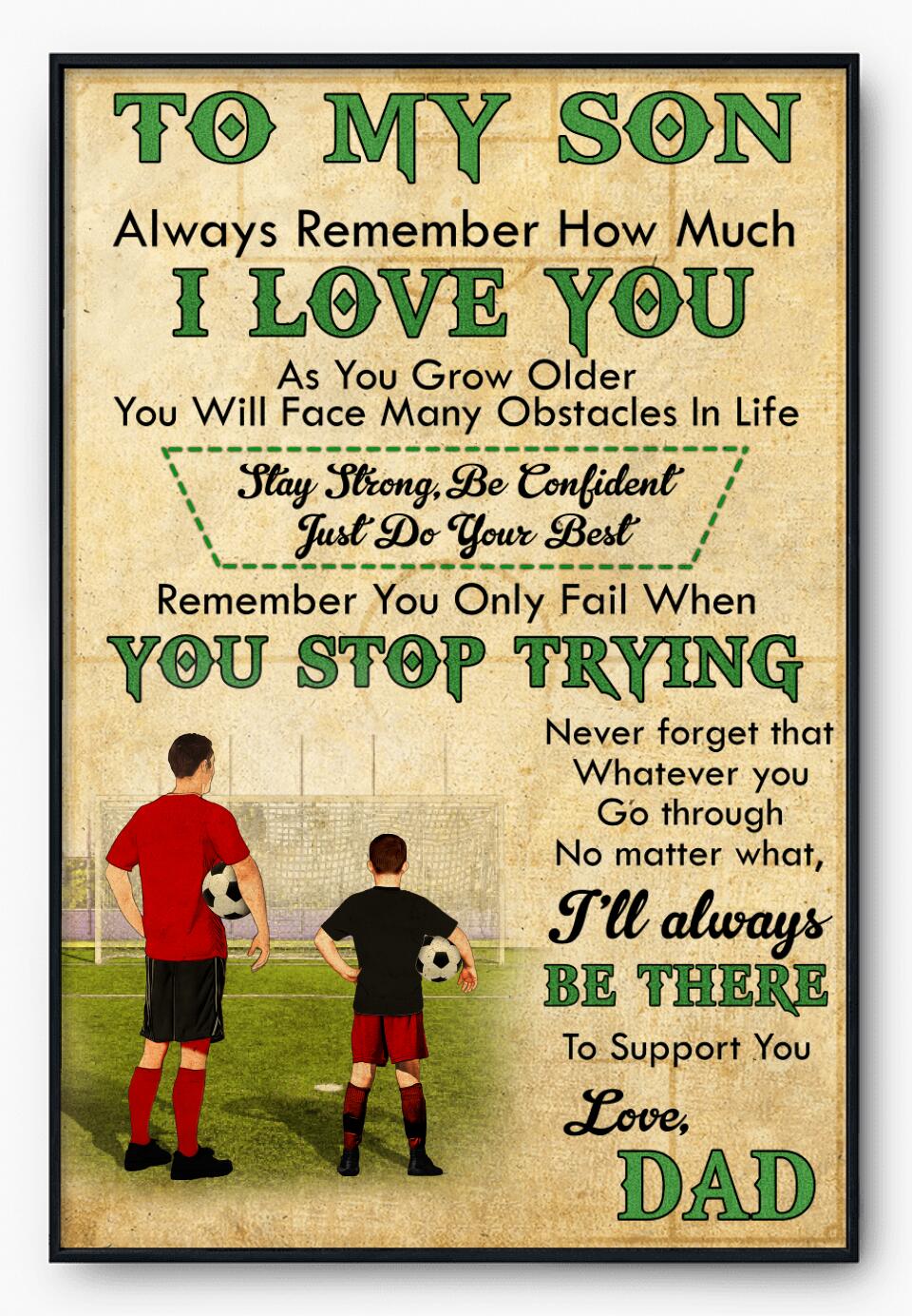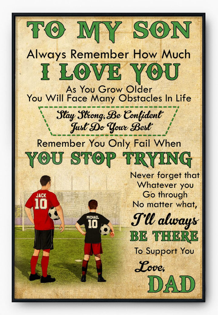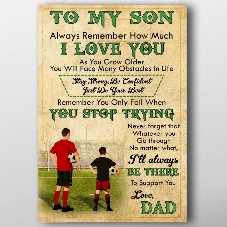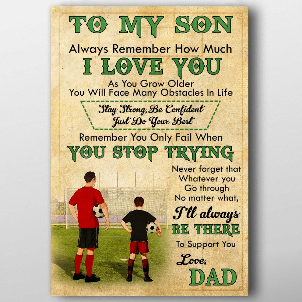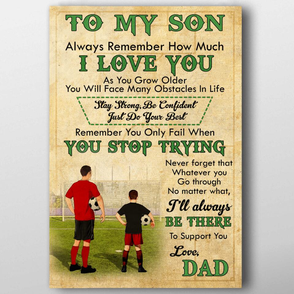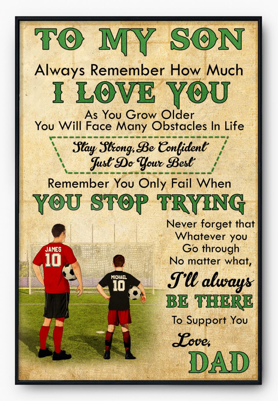 Custom Personalized To My Son Motivational Soccer Poster, Canvas with custom Name, Number, Appearance & Landscape, Vintage Style, Sport Gifts For Son NTB0412B06SA
