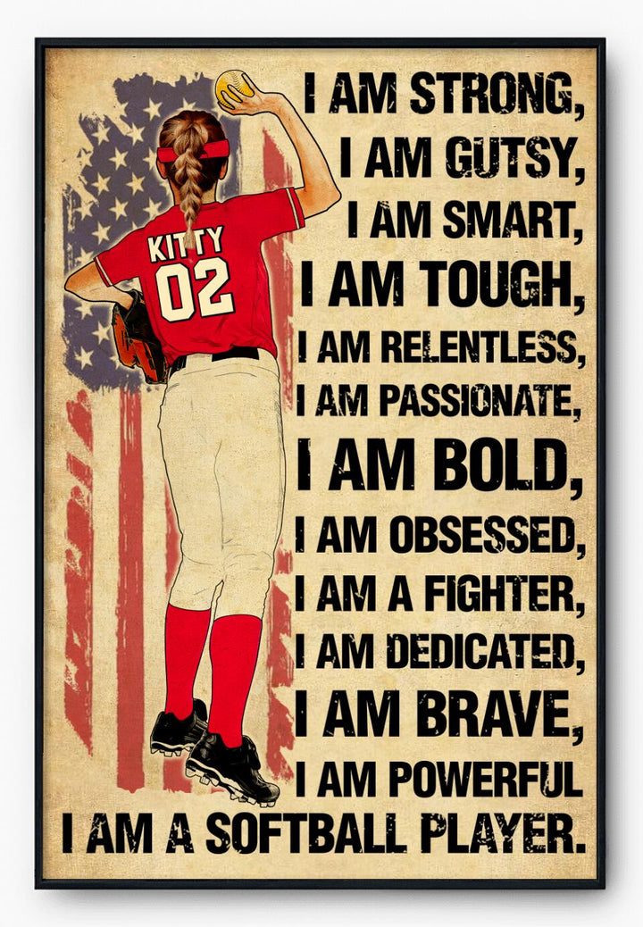 Custom Personalized Softball Poster, Canvas, Softball Gift, Gifts For Softball Players, Softball Lover Gifts With Custom Name, Number, Appearance & Landscape LTL0812B01DA