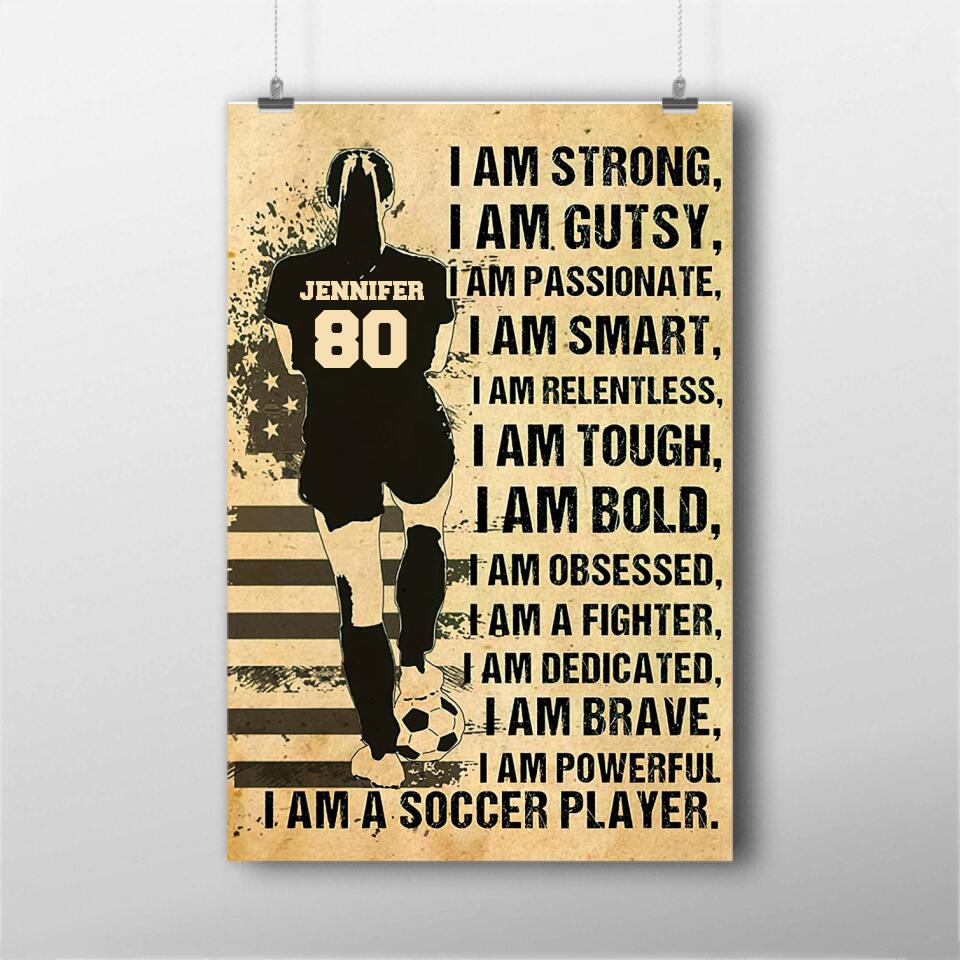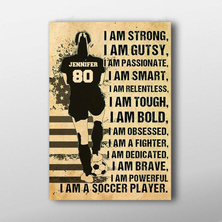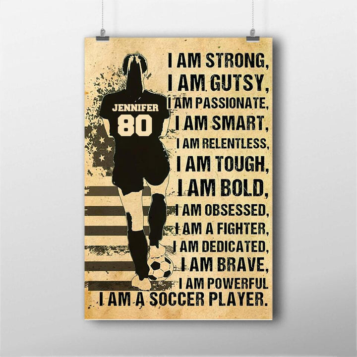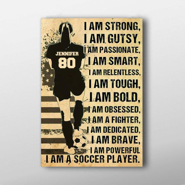 I am a Soccer Player Custom Personalized Soccer Poster, Canvas with custom Name & Number, Vintage Style Gifts NTB0311B07CL