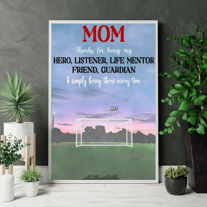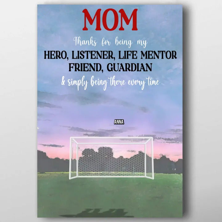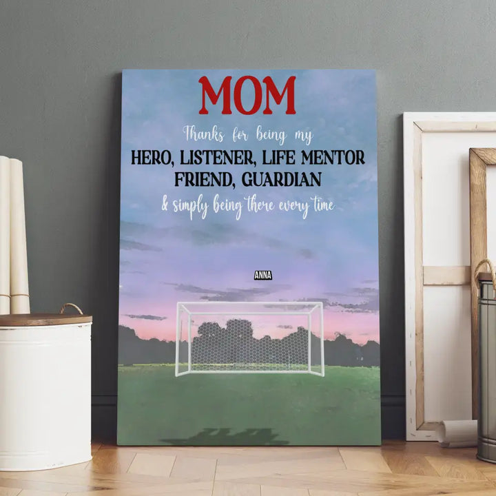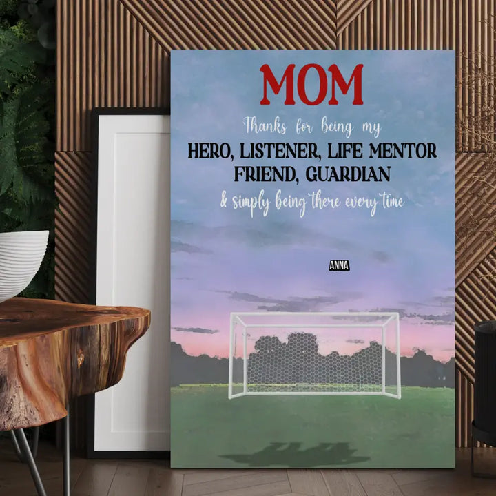 Custom Personalized Soccer Poster, Canvas with custom Name, Number & Appearance, Thanks For Being My Hero, Gifts For Mom, Soccer Poster, Soccer Room Decor, Soccer Wall Decor, LLL0530C01HV