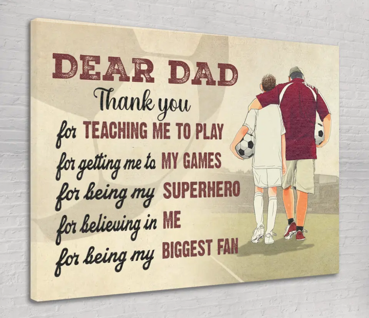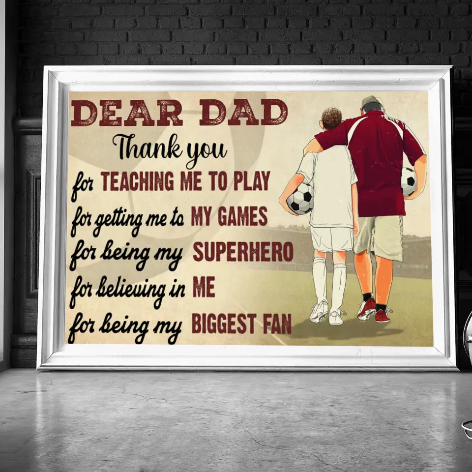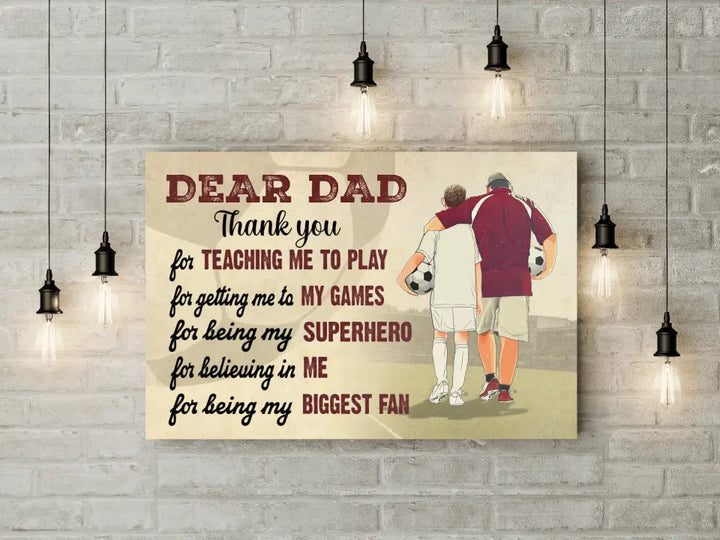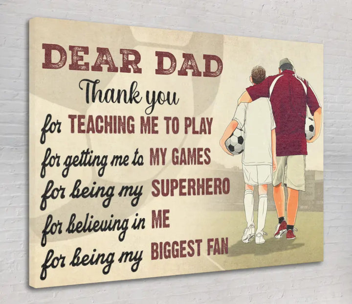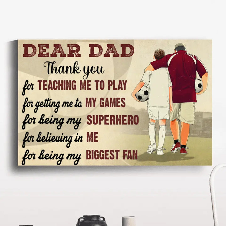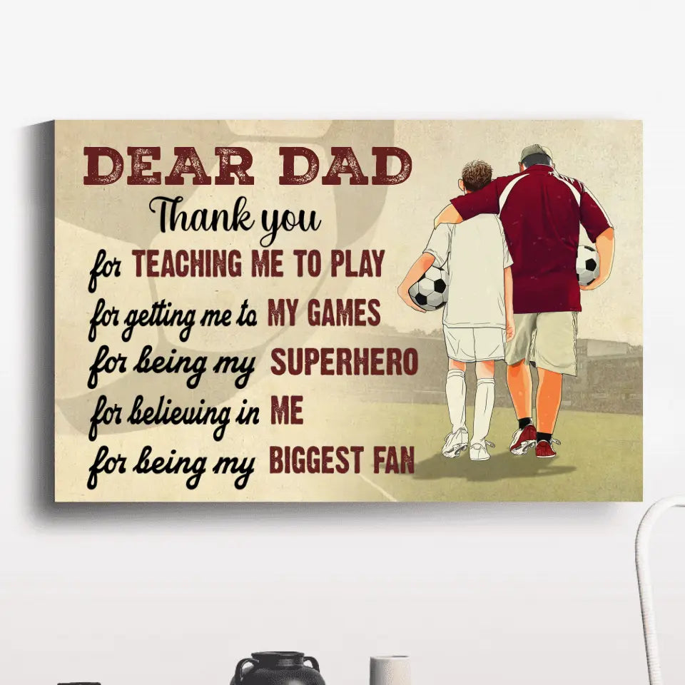 Custom Personalized Soccer Poster, Canvas with custom Name, Number & Appearance, Dear Dad, Thank You For Teaching Me To Play, Soccer Gift, Gifts For Soccer Players, Sport Gifts For Son, Soccer Lover Gifts LLL0605C01HV