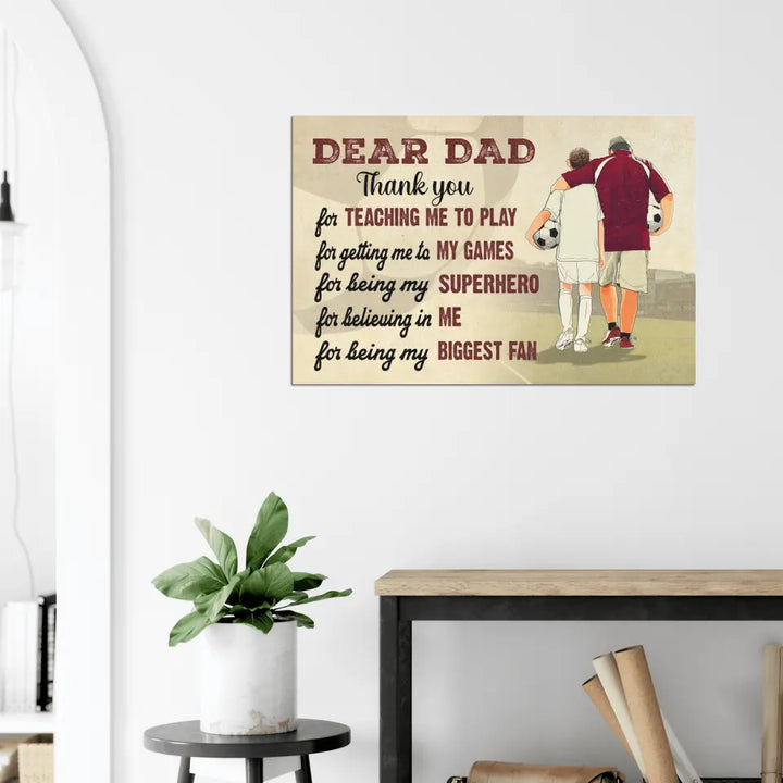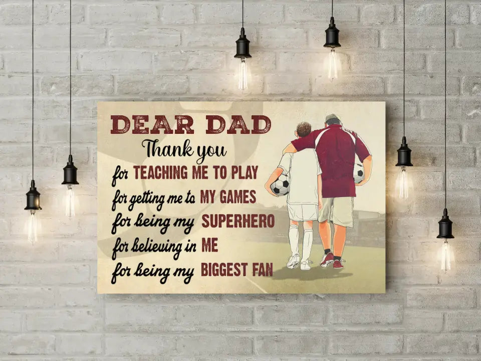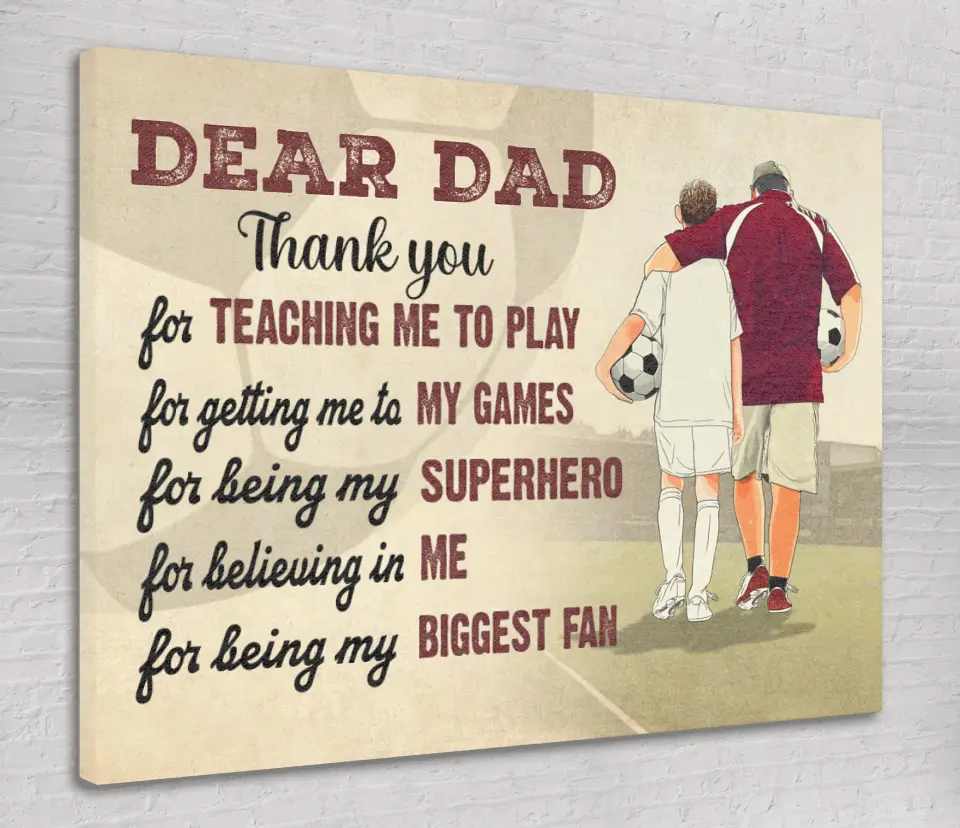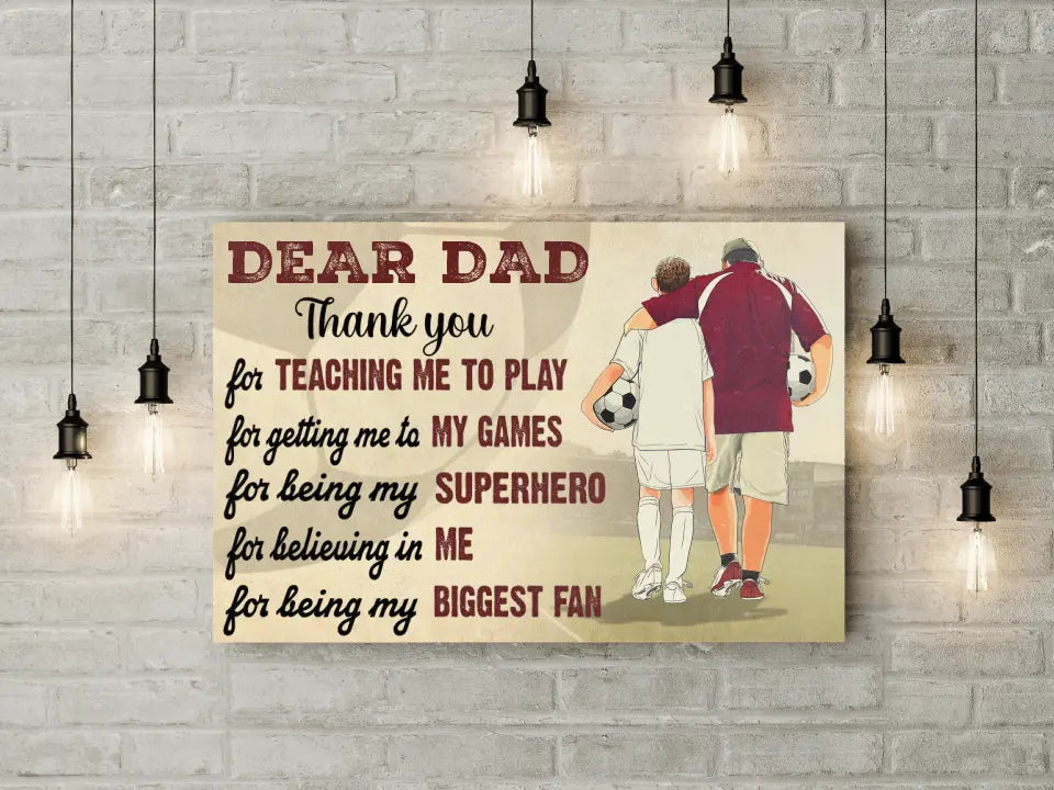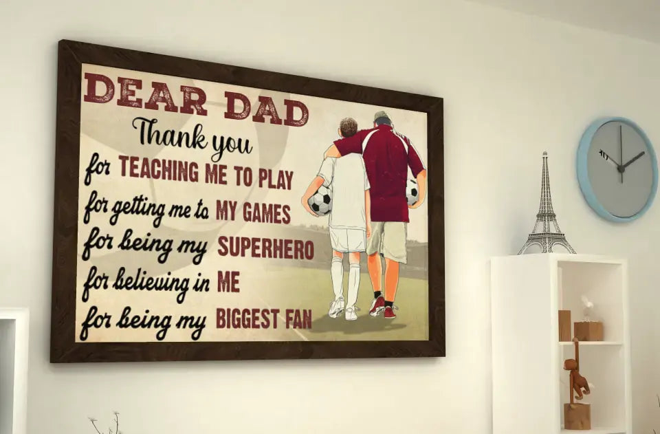 Custom Personalized Soccer Poster, Canvas with custom Name, Number & Appearance, Dear Dad, Thank You For Teaching Me To Play, Soccer Gift, Gifts For Soccer Players, Sport Gifts For Son, Soccer Lover Gifts LLL0605C01HV