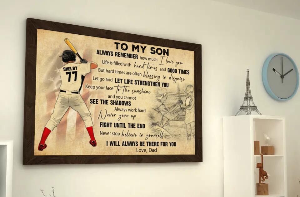 Custom Personalized Baseball Poster, Canvas, Vintage Style, Baseball Gifts, Baseball Poster, Baseball Room Decor With Custom Name, Number & Appearance LML1222B04DA