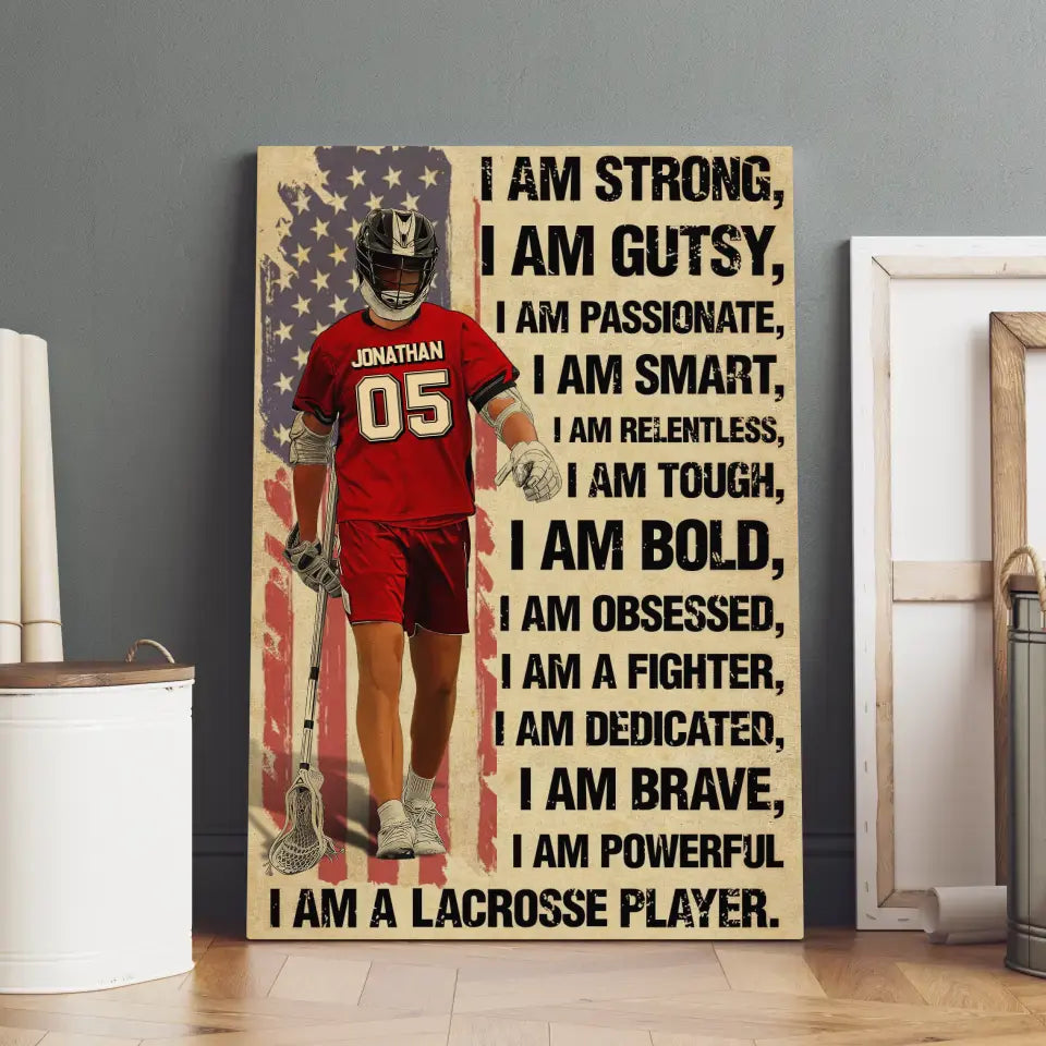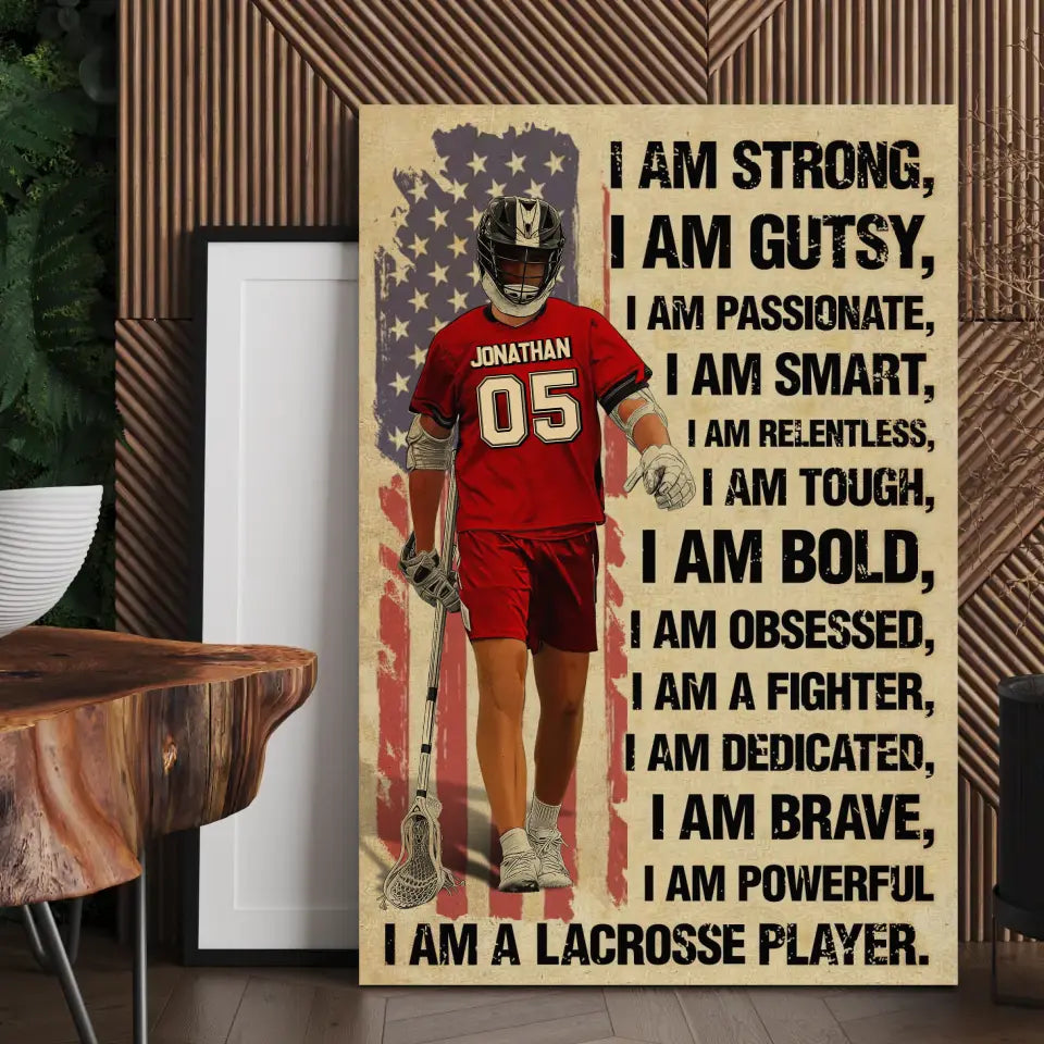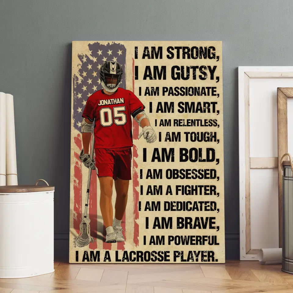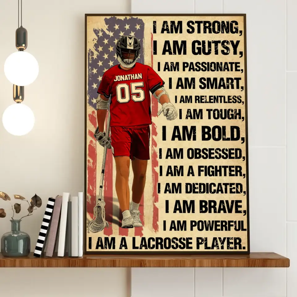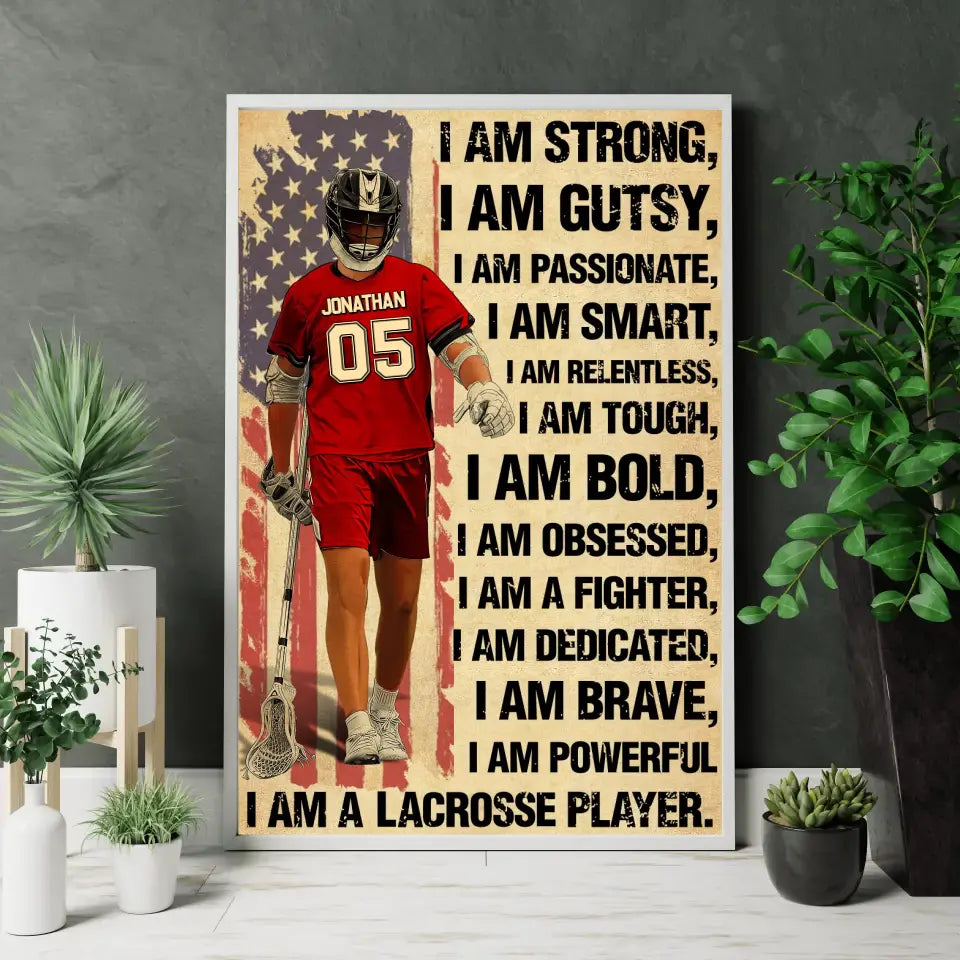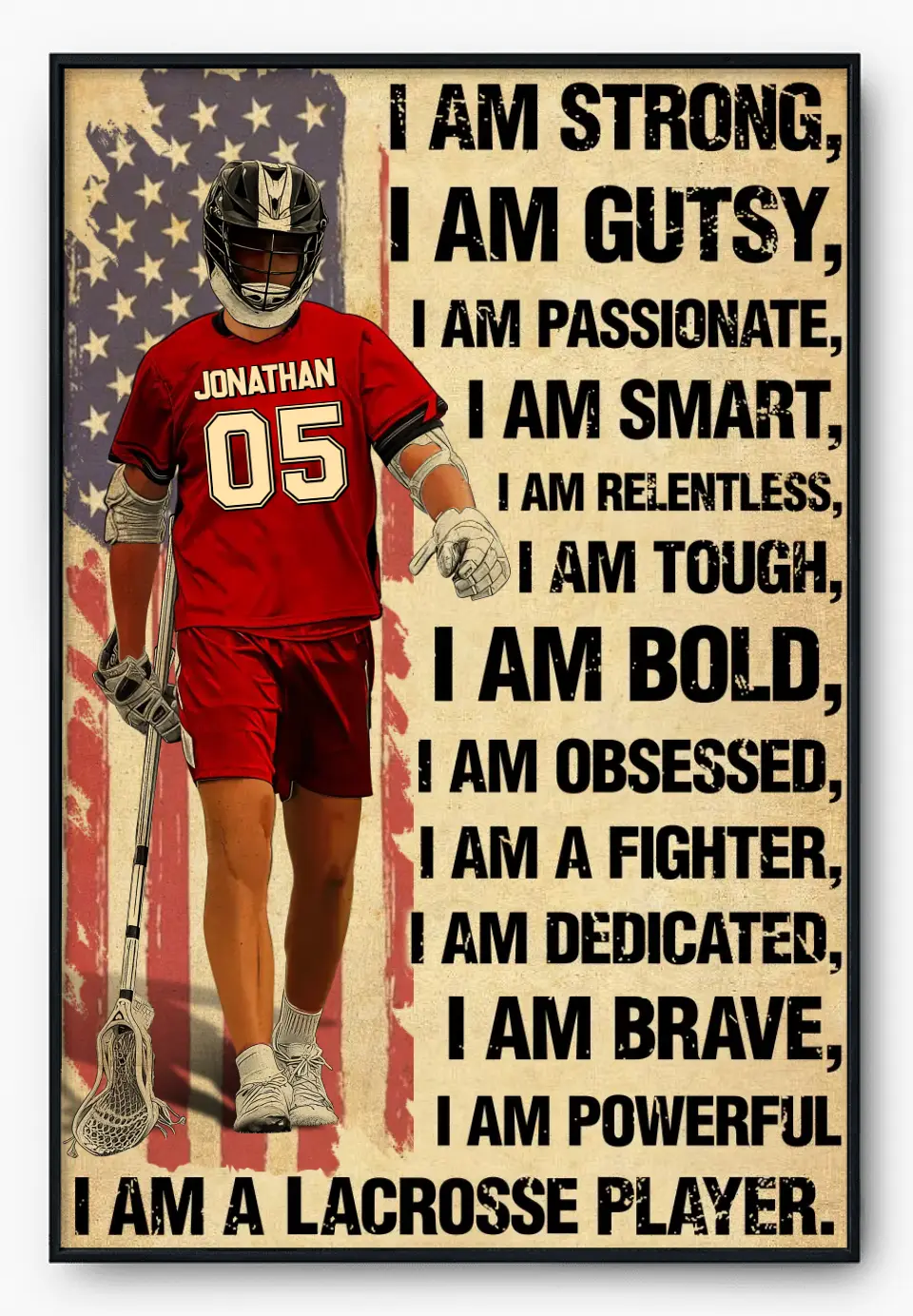 Custom Personalized Lacrosse Poster, Canvas, Gifts For Son, Lacrosse Gift, Gifts For Lacrosse Players With Custom Name, Number & Appearance NHT0509B01SA