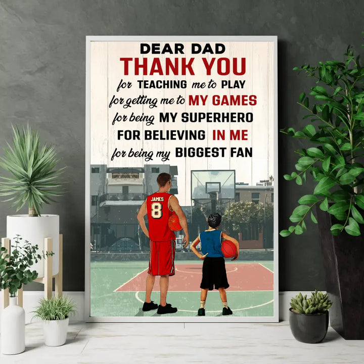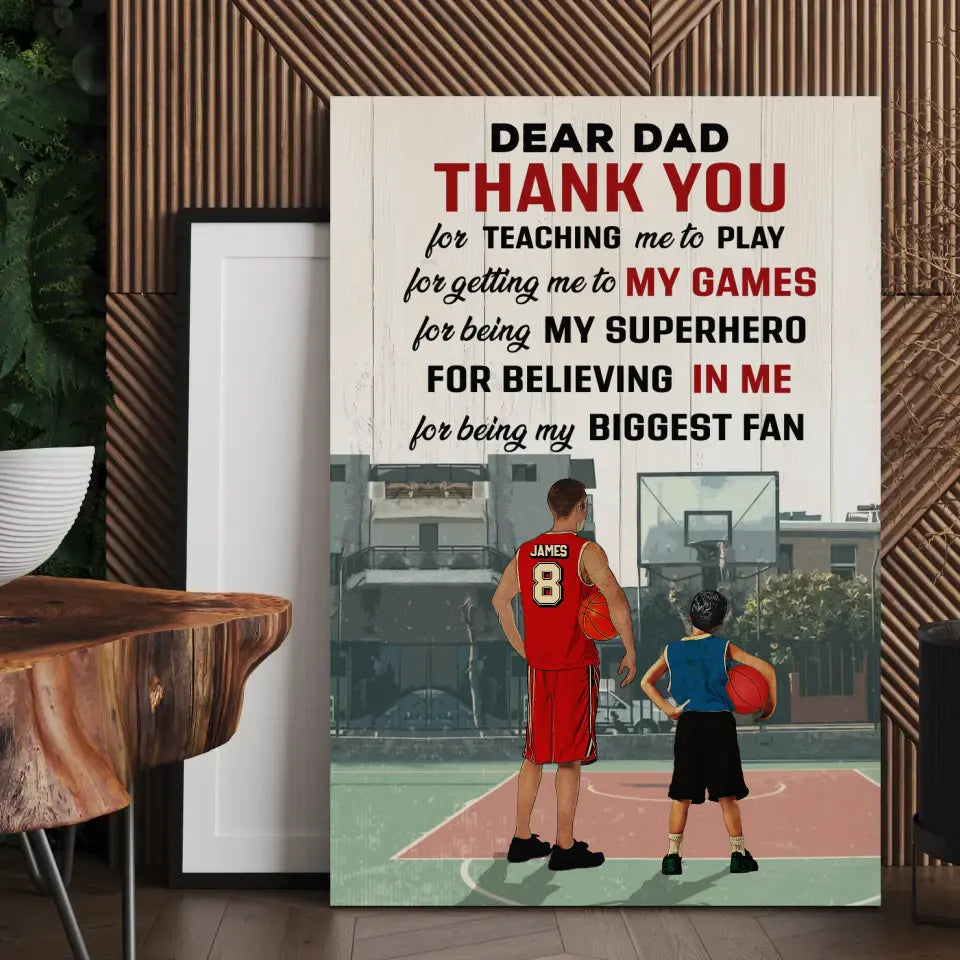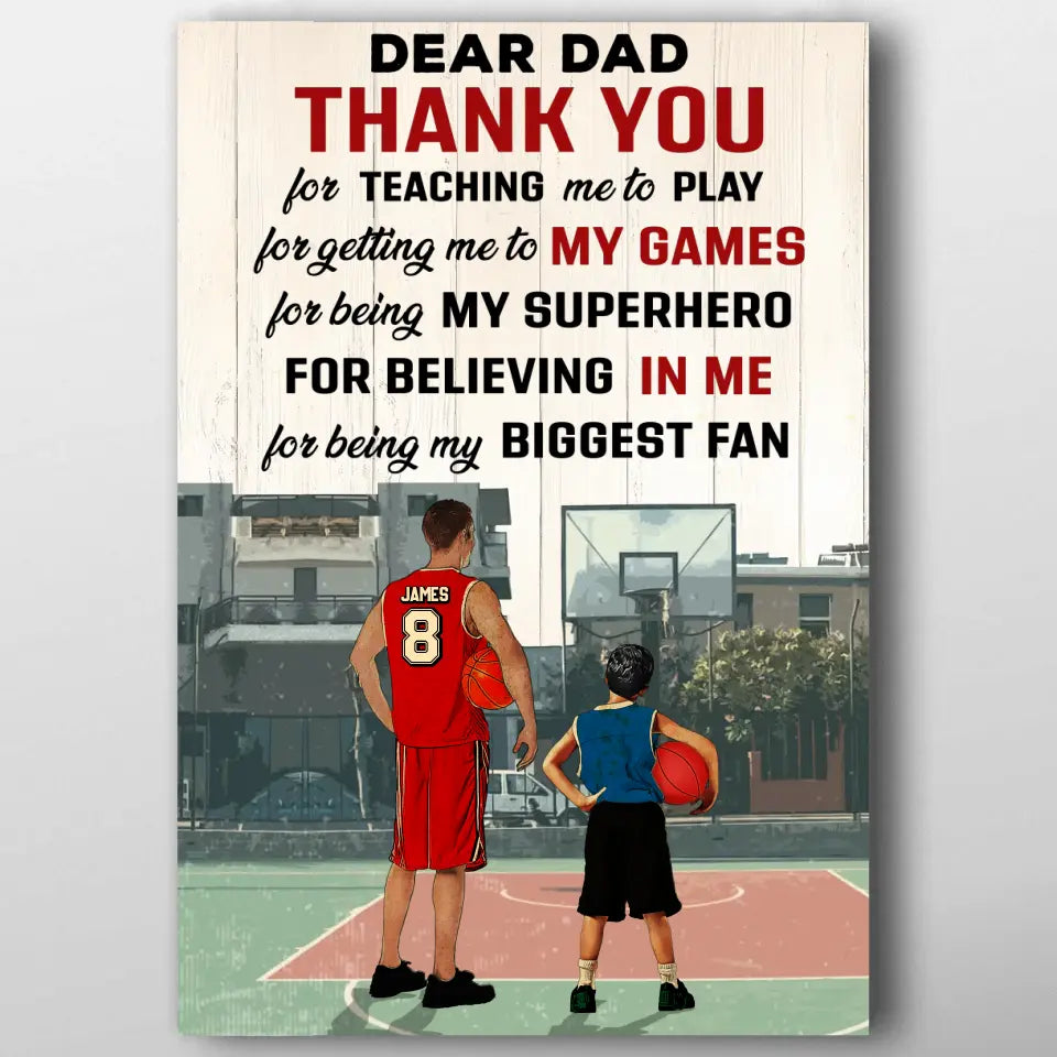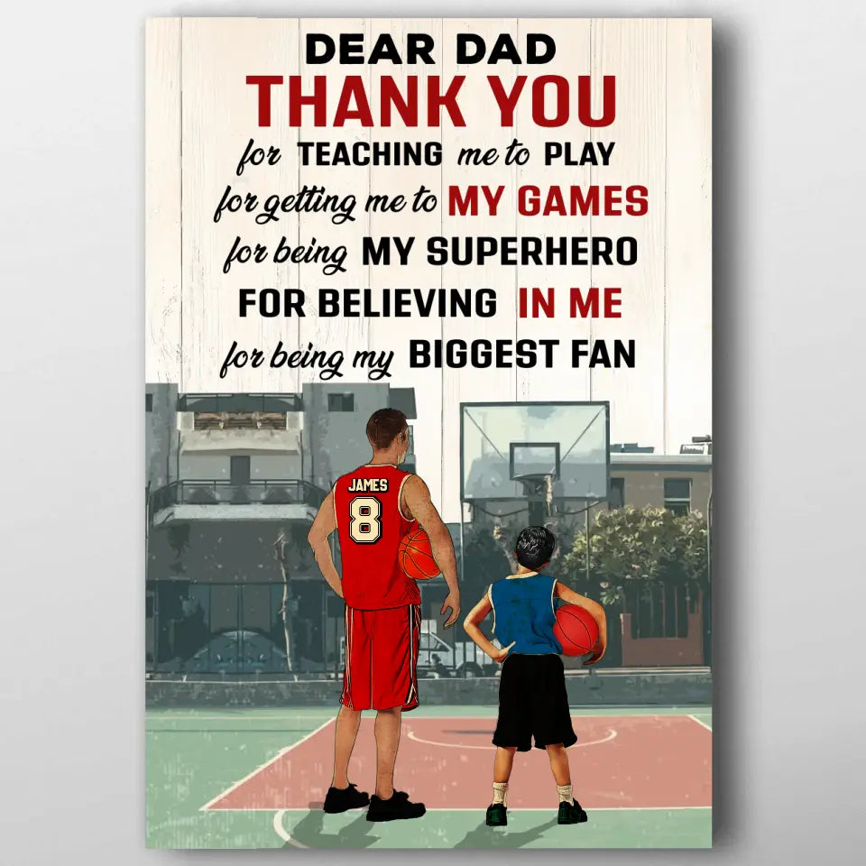 Custom Personalized Basketball Poster, Canvas with custom Name, Number & Appearance, Dear Dad, Thank You For Teaching Me To Play, Soccer Gift, Gifts For Soccer Players, Sport Gifts For Son, Soccer Lover Gifts NHT0529C04DP