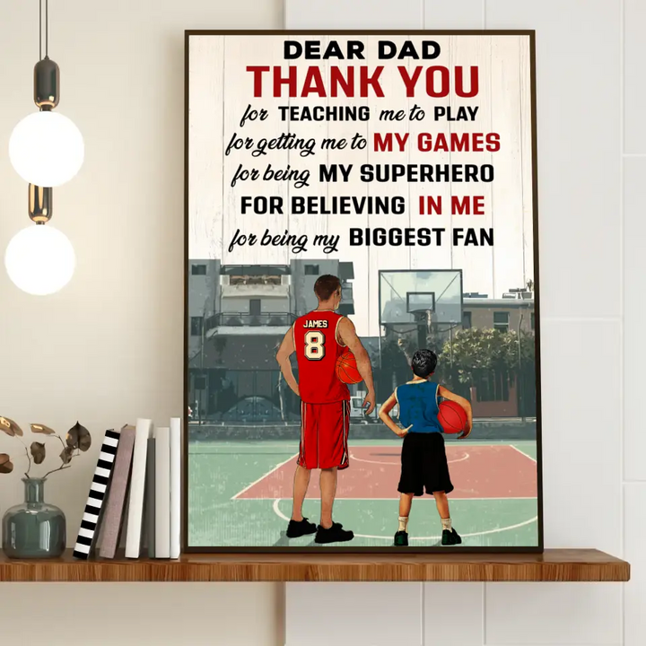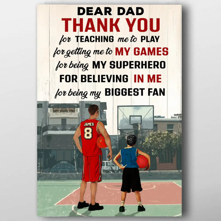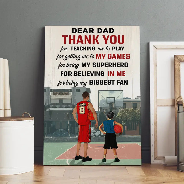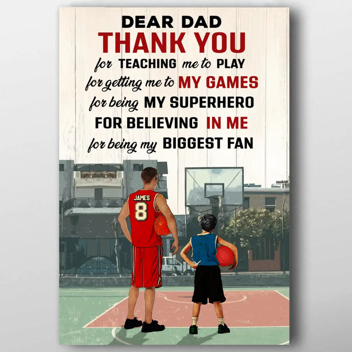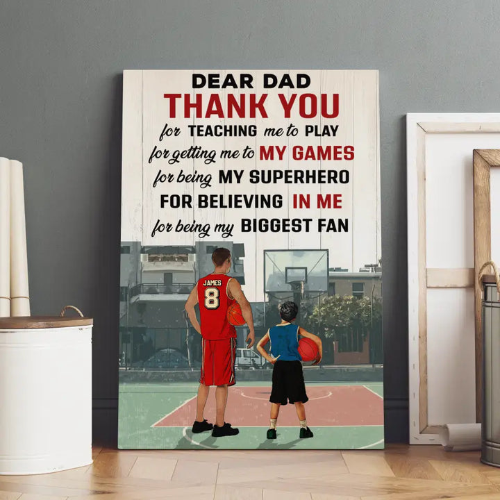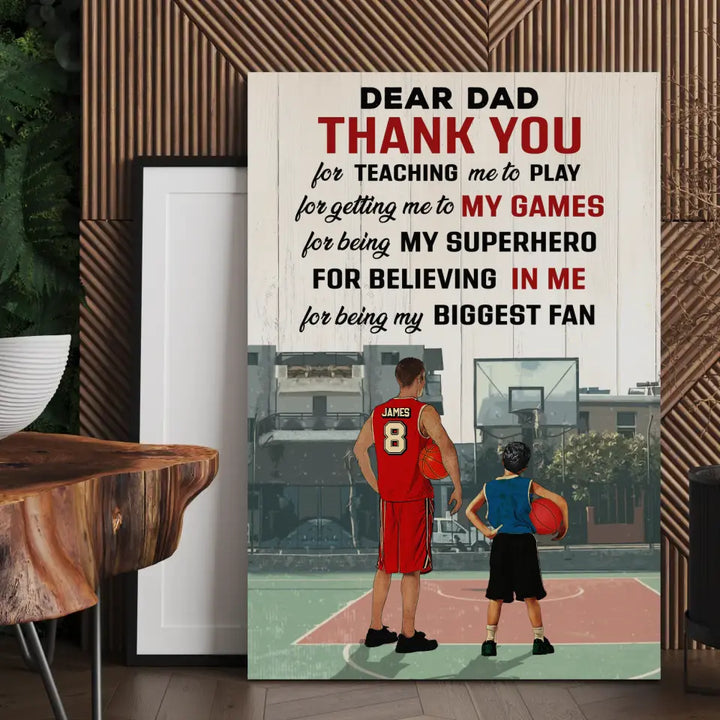Custom Personalized Basketball Poster, Canvas with custom Name, Number & Appearance, Dear Dad, Thank You For Teaching Me To Play, Soccer Gift, Gifts For Soccer Players, Sport Gifts For Son, Soccer Lover Gifts NHT0529C04DP