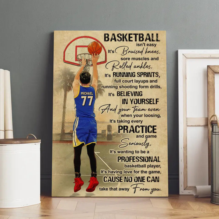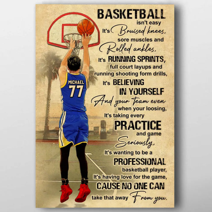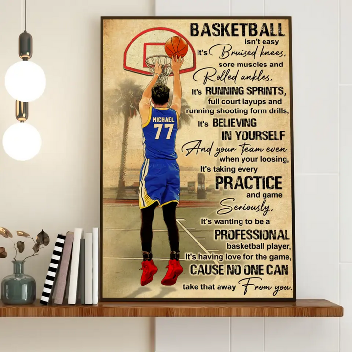 Custom Personalized Basketball Poster, Canvas with custom Name, Number & Appearance, Vintage Style, Sport Gifts For Son, Gifts For Basketball Son, Basketball Lover Gifts, Personalized Basketball Gifts, Gift For A Basketball Player NHT0529C08SA