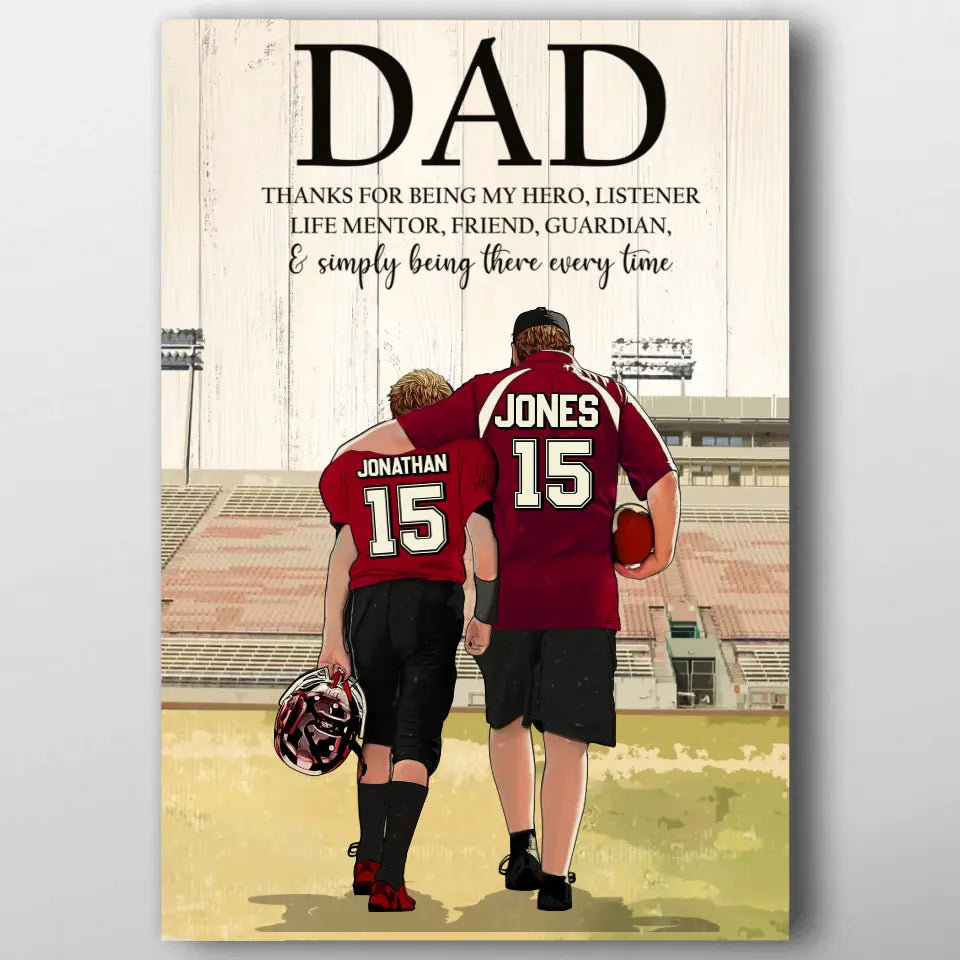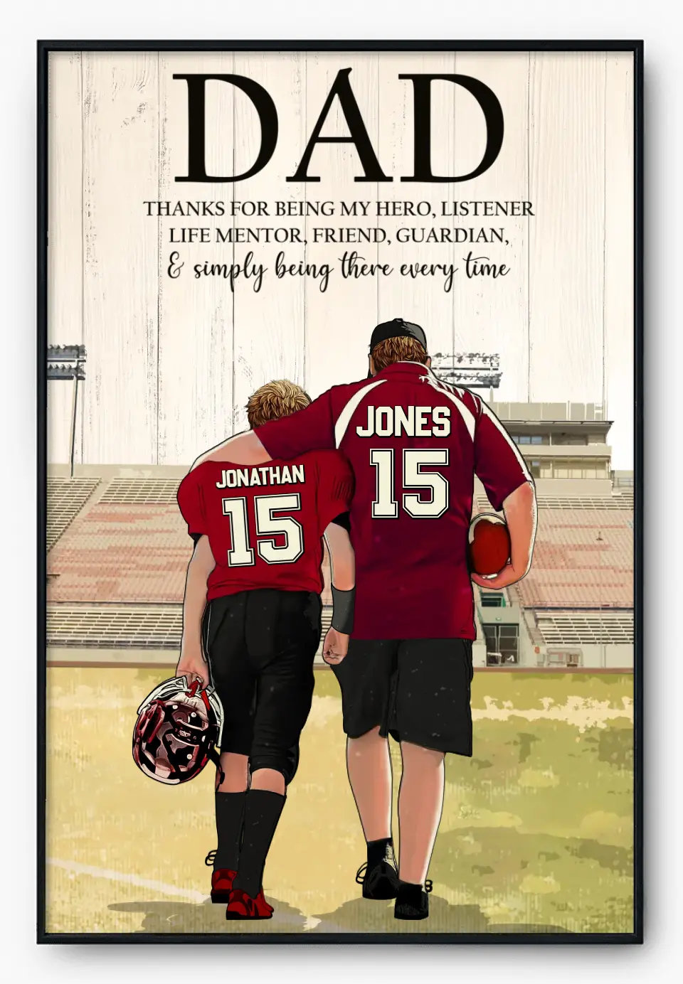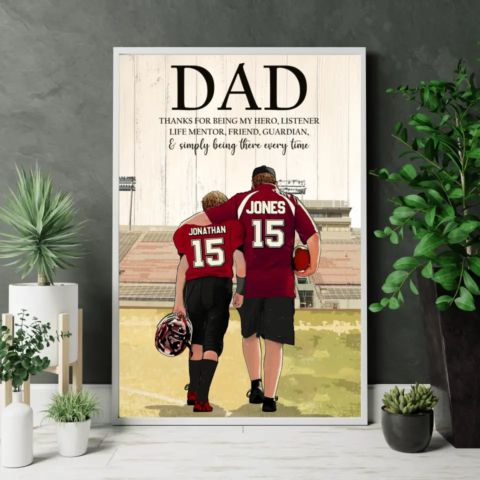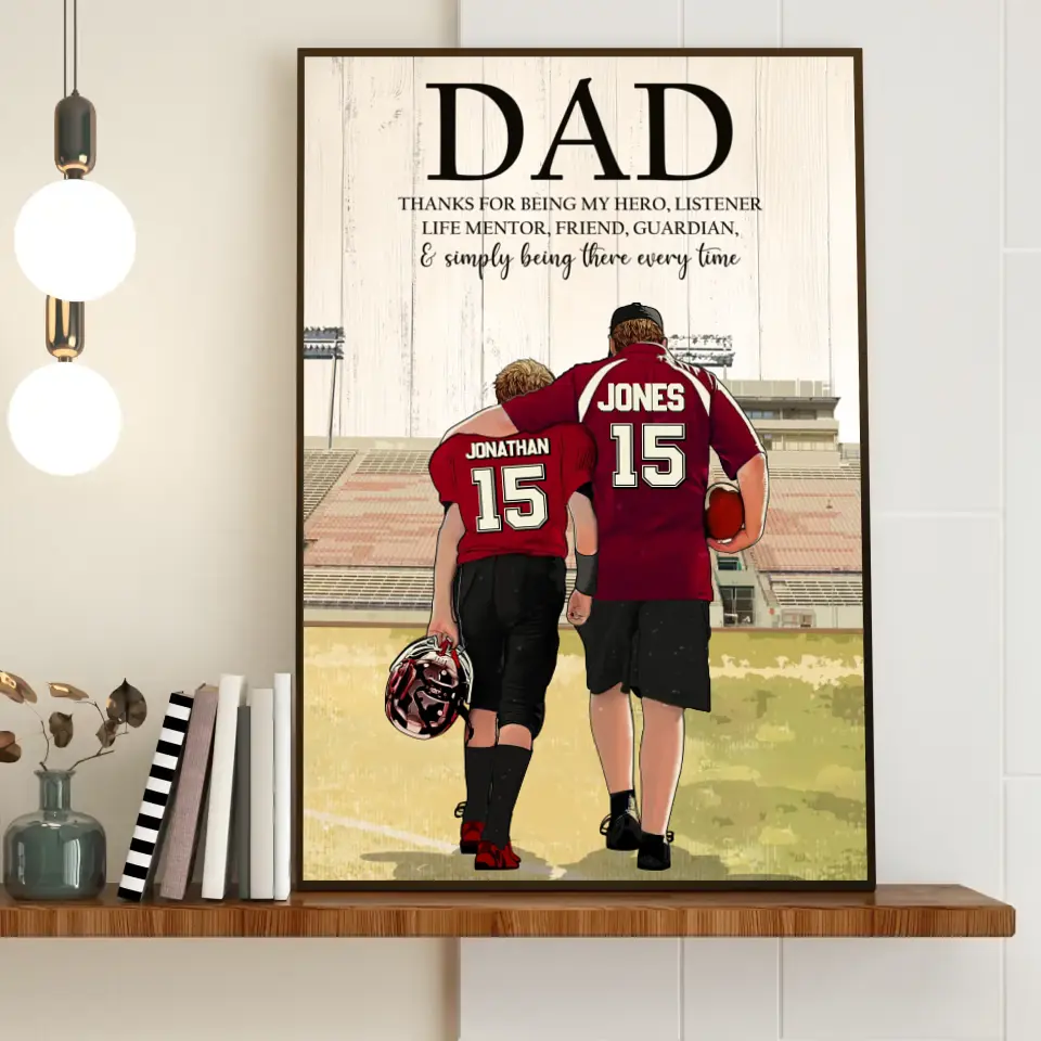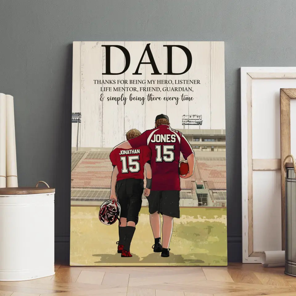 Custom Personalized Thanks For Being My Hero Football Poster, Canvas with custom Name & Appearance, Gifts For Dad, Father, Coach, Football Poster, Football Room Decor, Football Wall Decor, Football Poster Ideas NHT1805C05DP