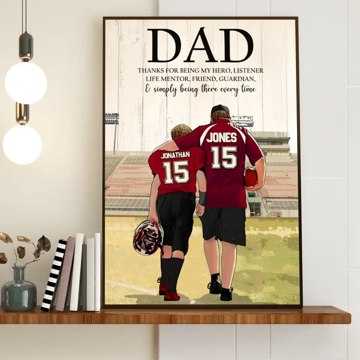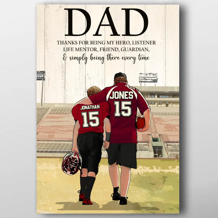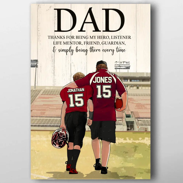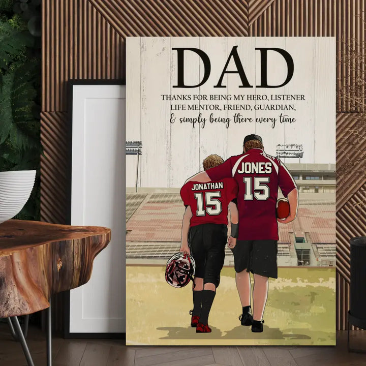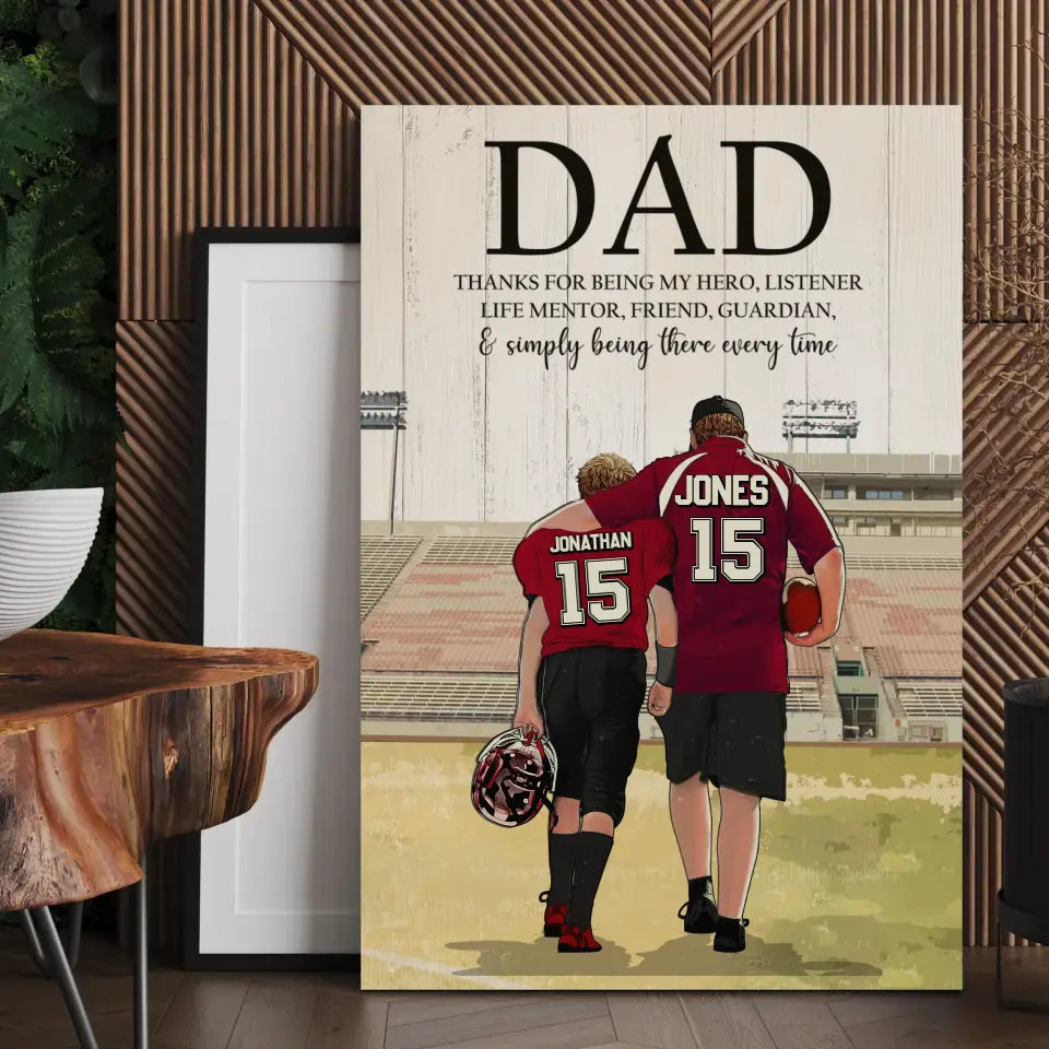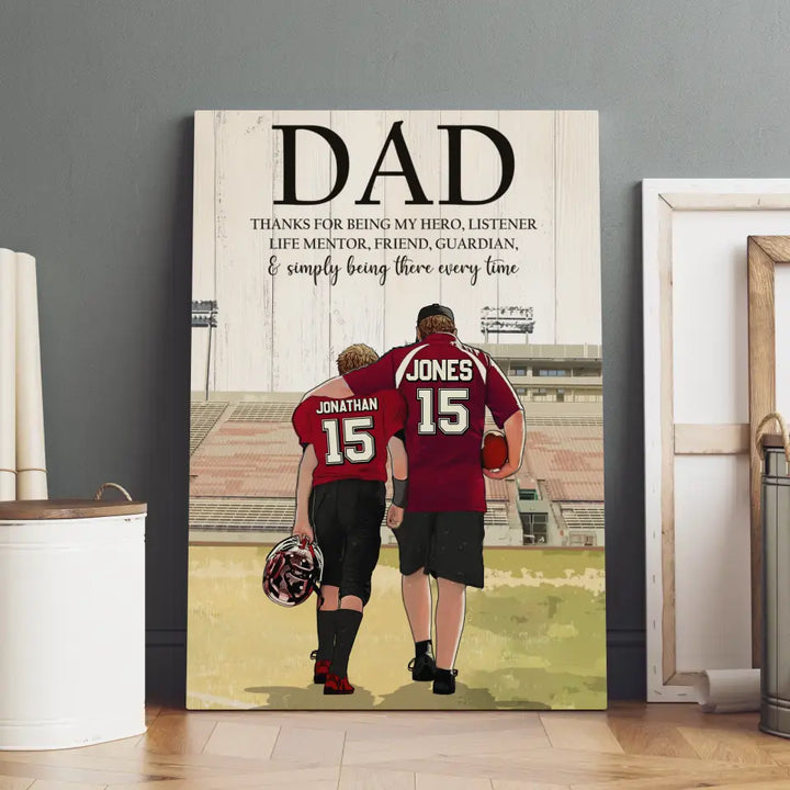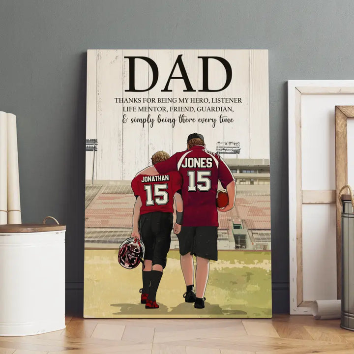 Custom Personalized Thanks For Being My Hero Football Poster, Canvas with custom Name & Appearance, Gifts For Dad, Father, Coach, Football Poster, Football Room Decor, Football Wall Decor, Football Poster Ideas NHT1805C05DP