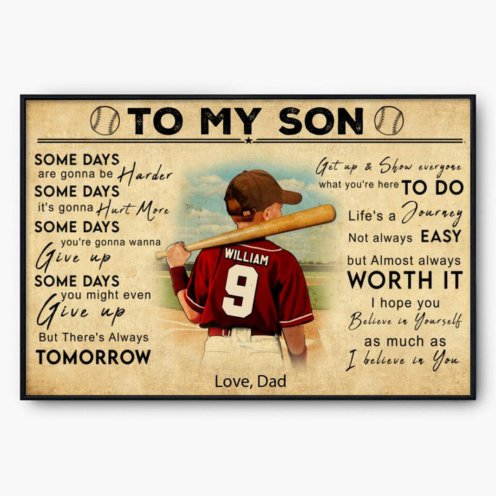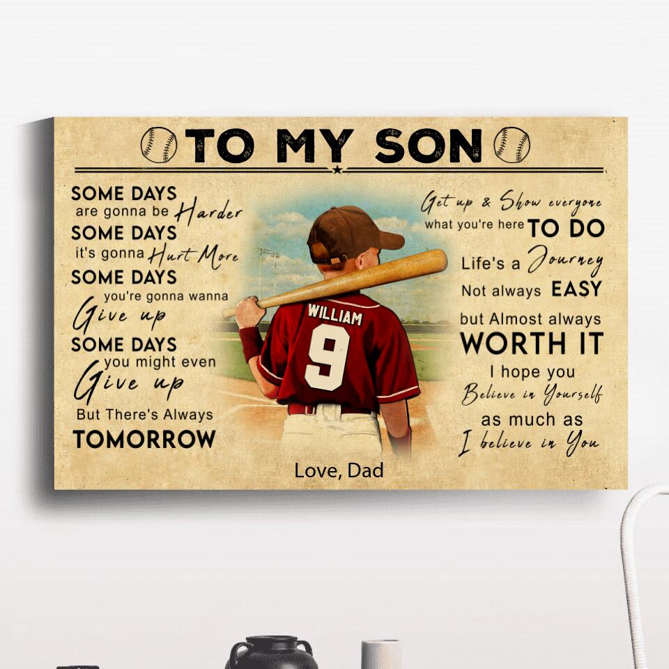 Custom Personalized To My Son Baseball Poster, Canvas with custom Name, Number, Appearance & Landscape, Vintage Style, Sport Gifts For Son, Baseball Poster, Baseball Room Decor, Baseball Wall Decor, Baseball Poster Ideas NTB0405B01DP