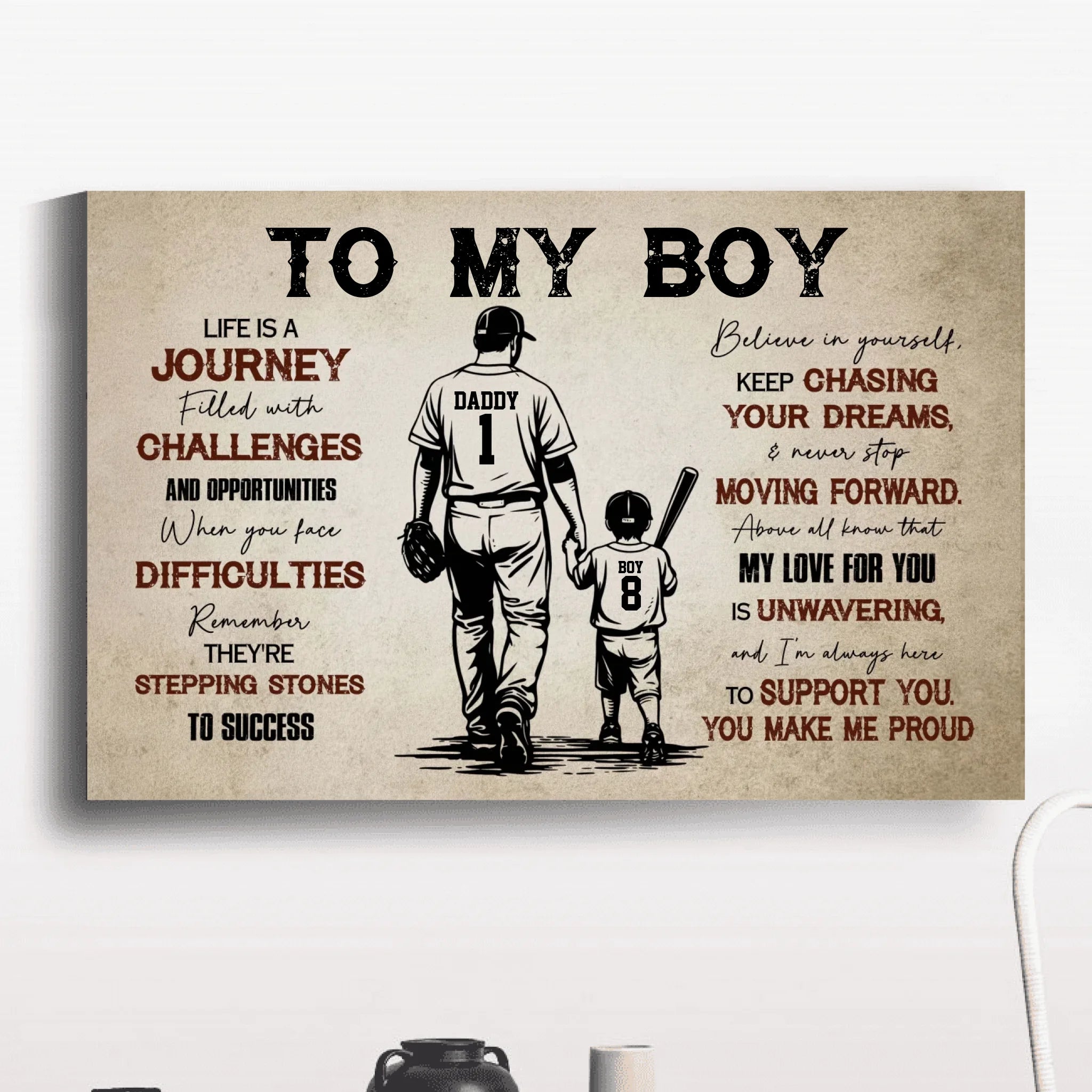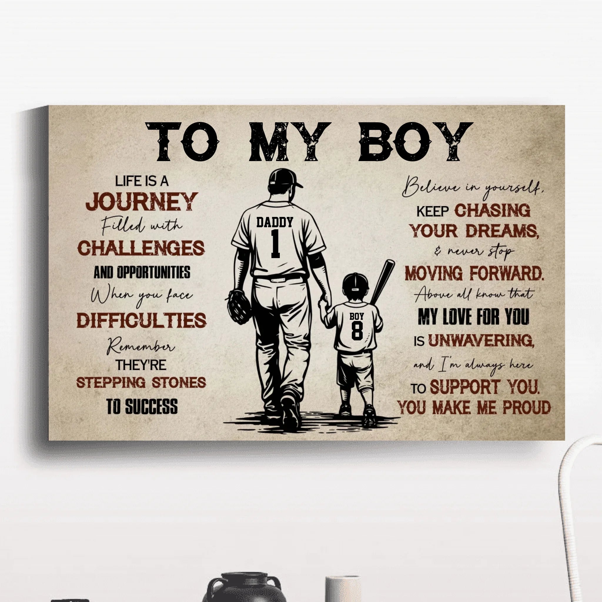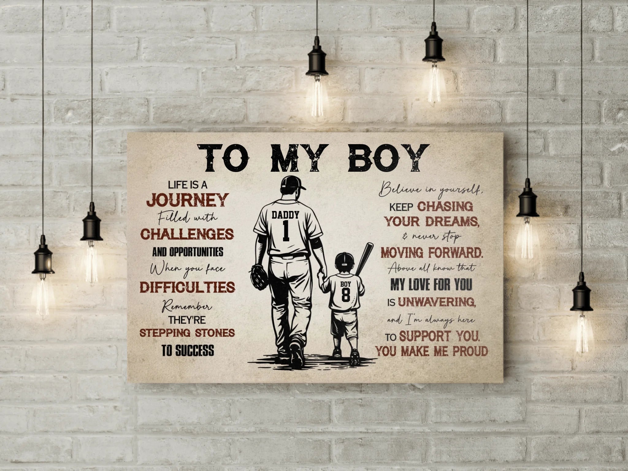 To My Boy Canvas – Personalized Baseball Wall Art, Father & Son Gift, Custom Name & Number, Inspirational Gift from Dad NTH26040239NVH