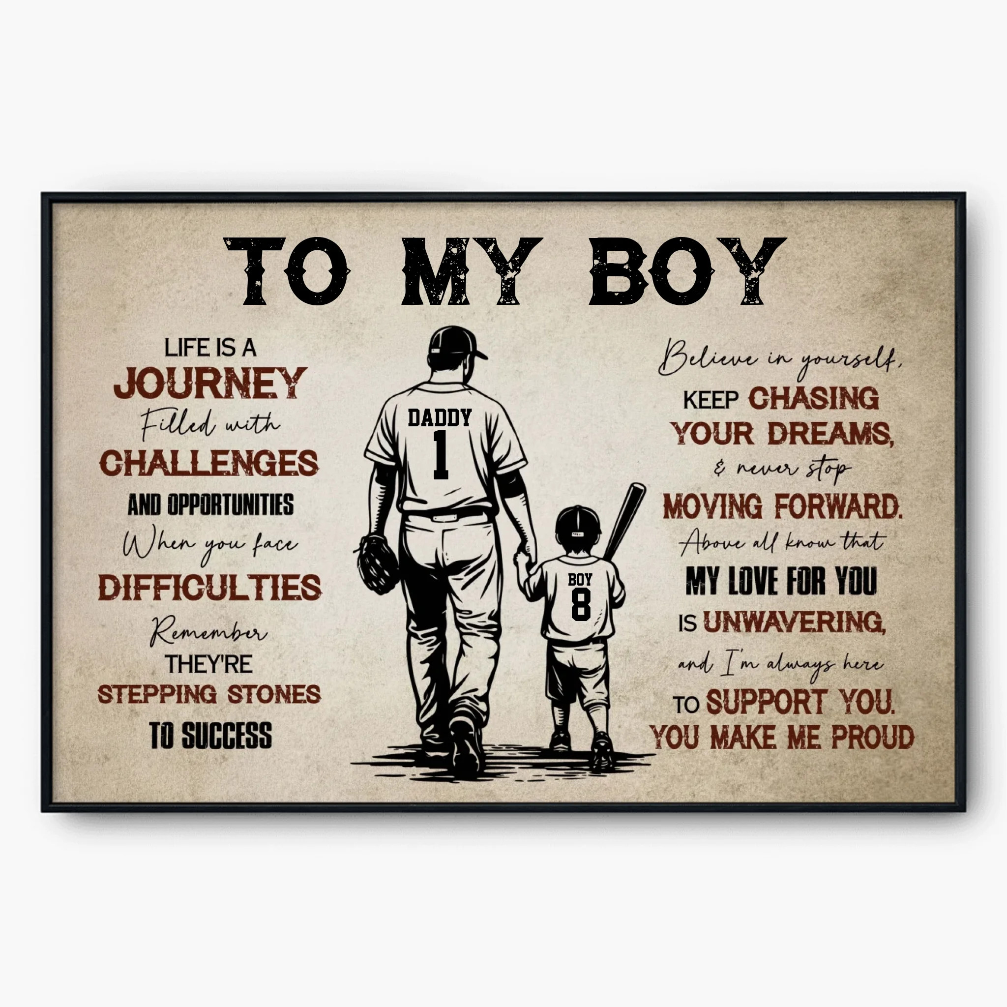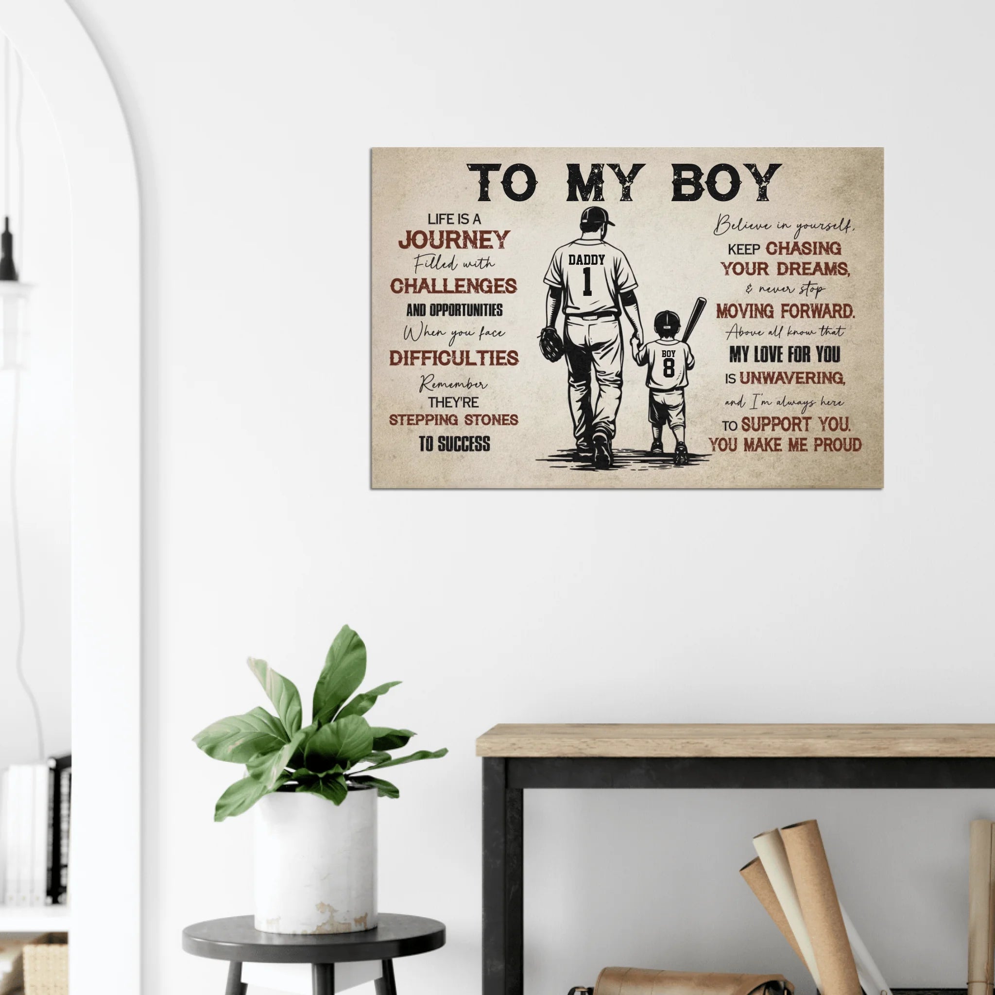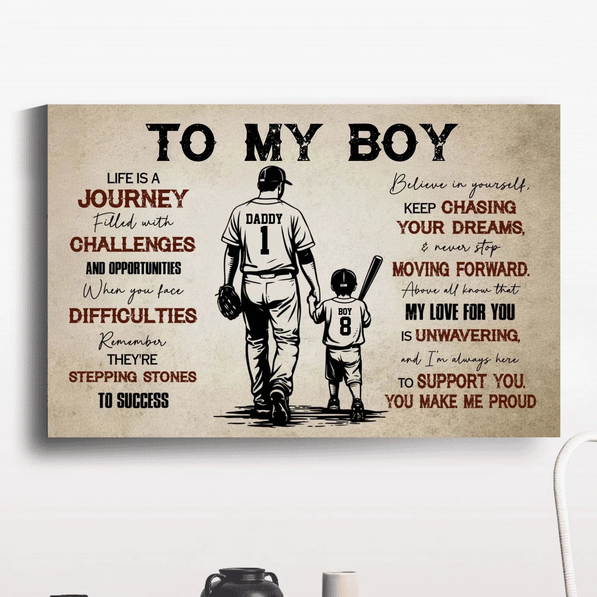 To My Boy Canvas – Personalized Baseball Wall Art, Father & Son Gift, Custom Name & Number, Inspirational Gift from Dad NTH26040239NVH