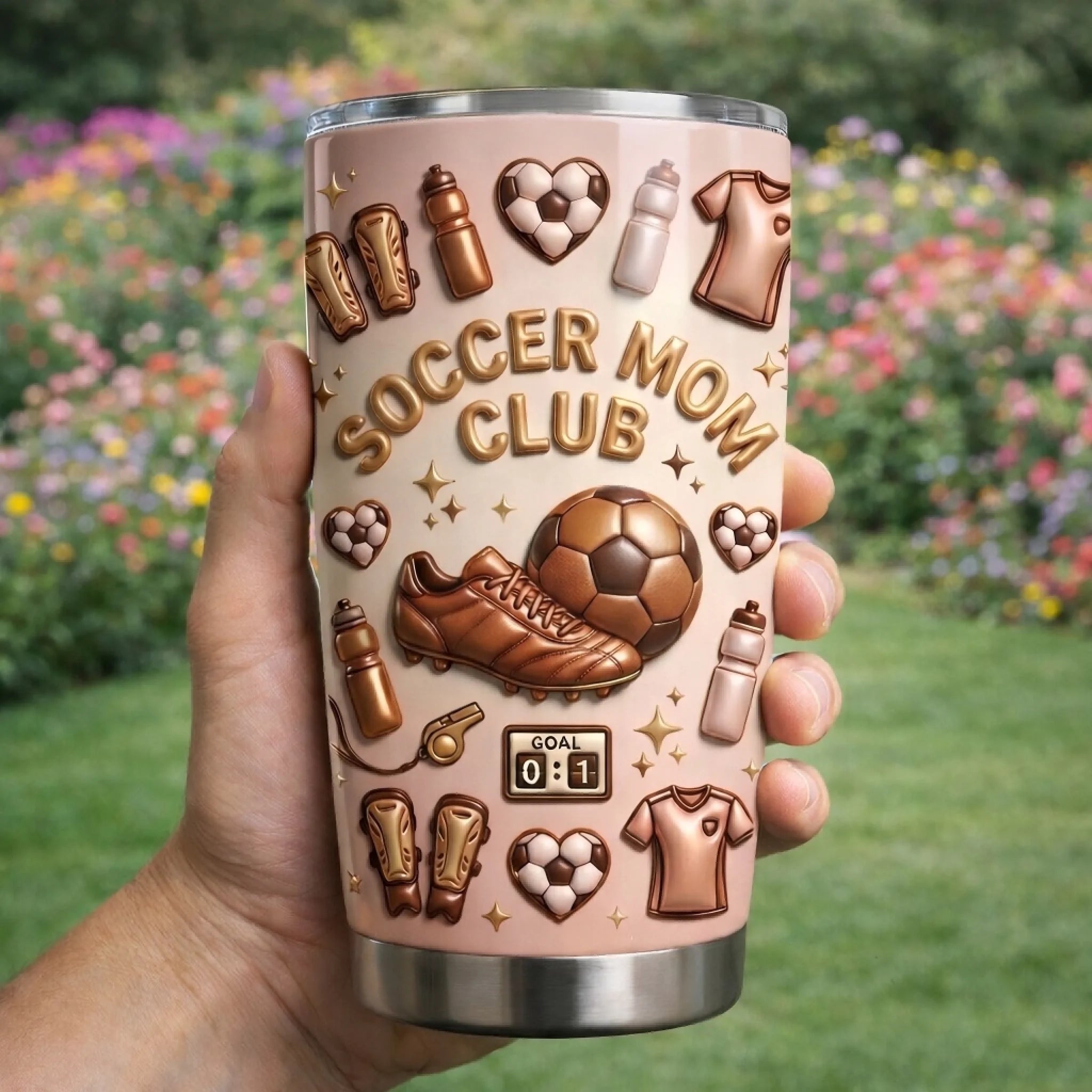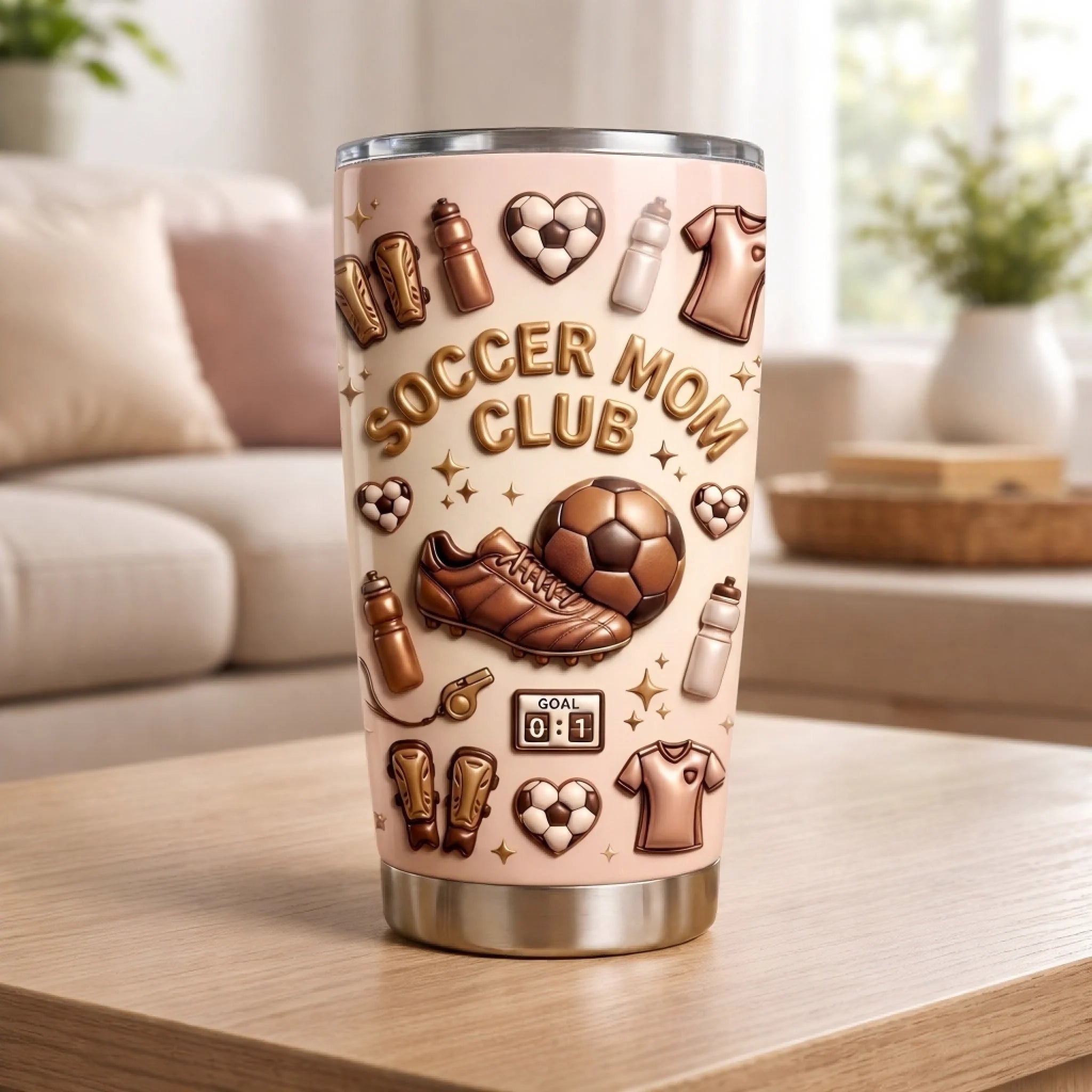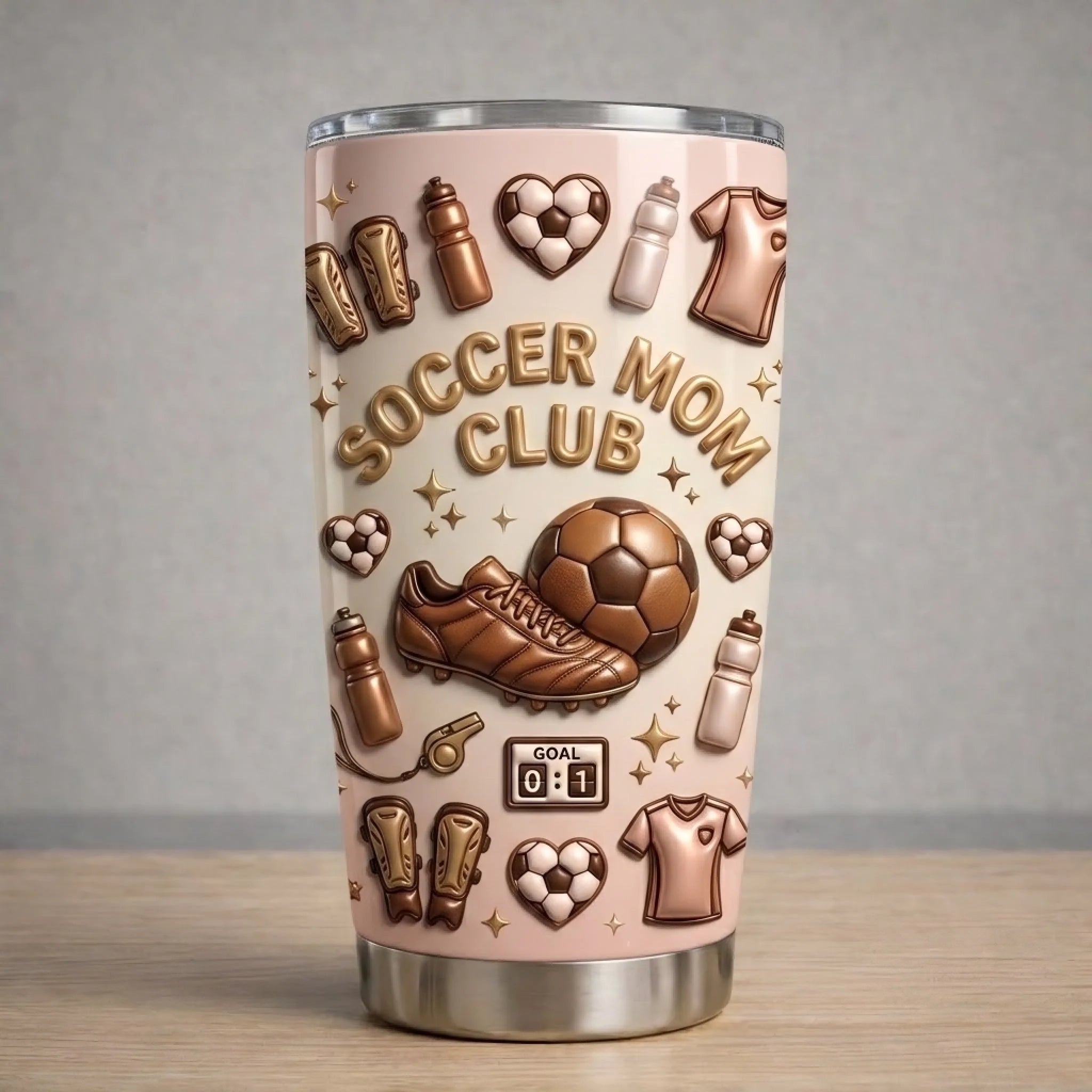 3D Inflated Effect Tumbler, Soccer Mom Club Cup, Sports Mom Gift, Soccer Lover Tumbler, Team Mom Drinkware NTH26040240