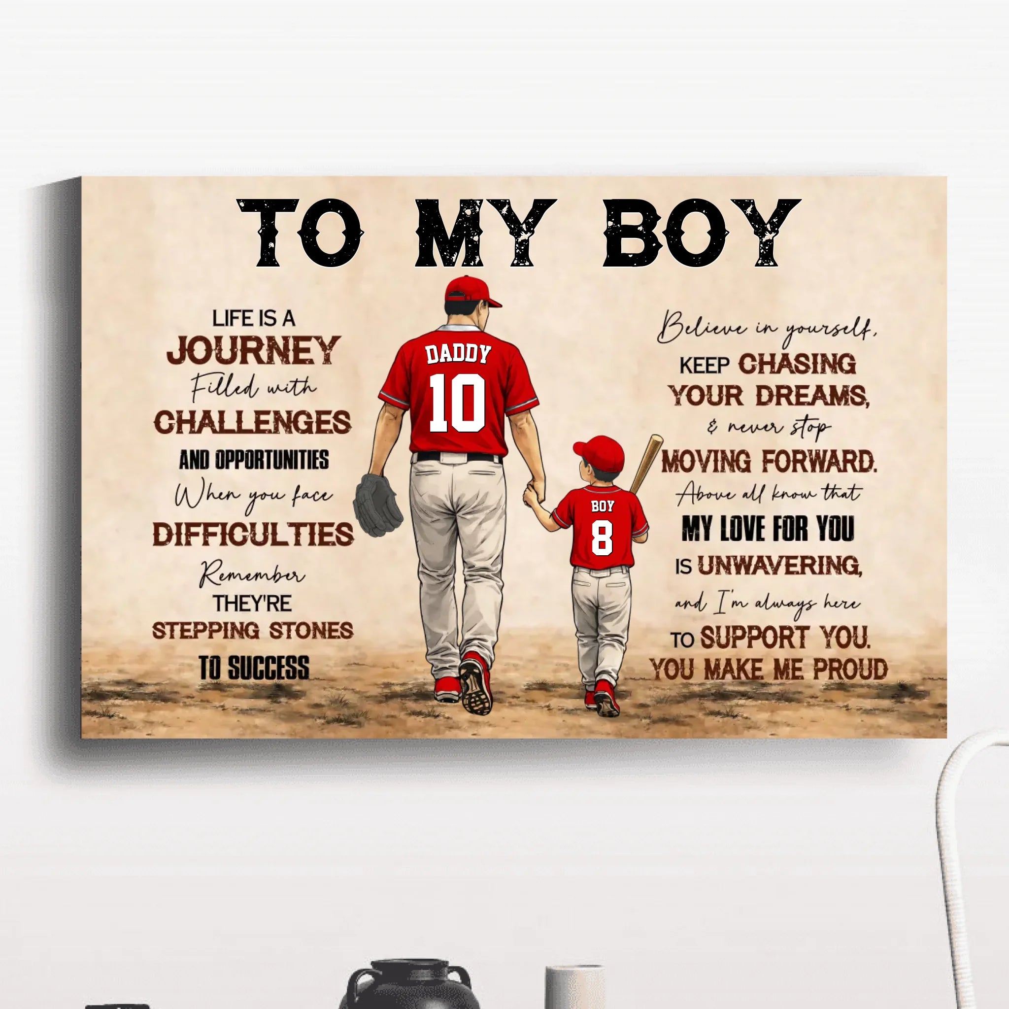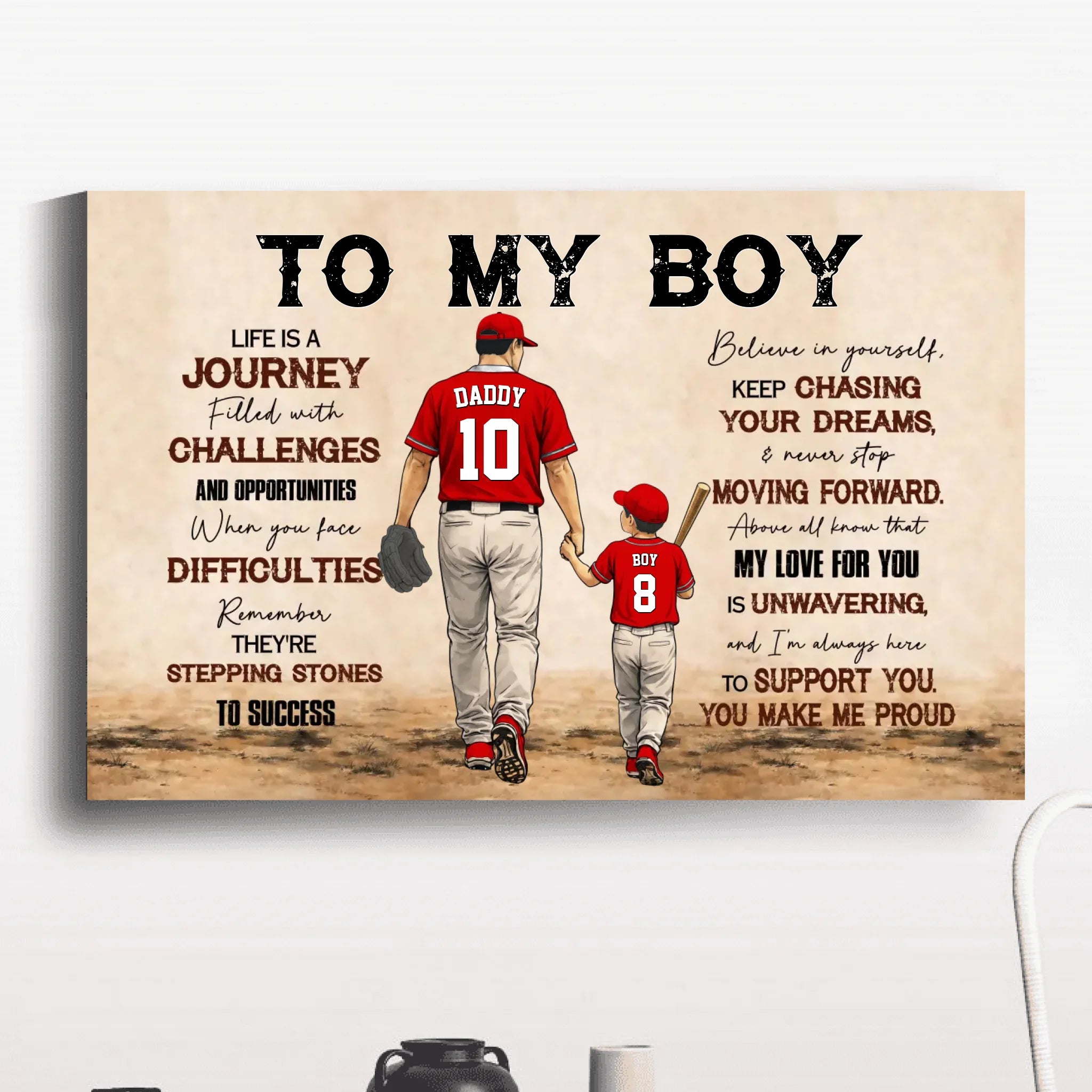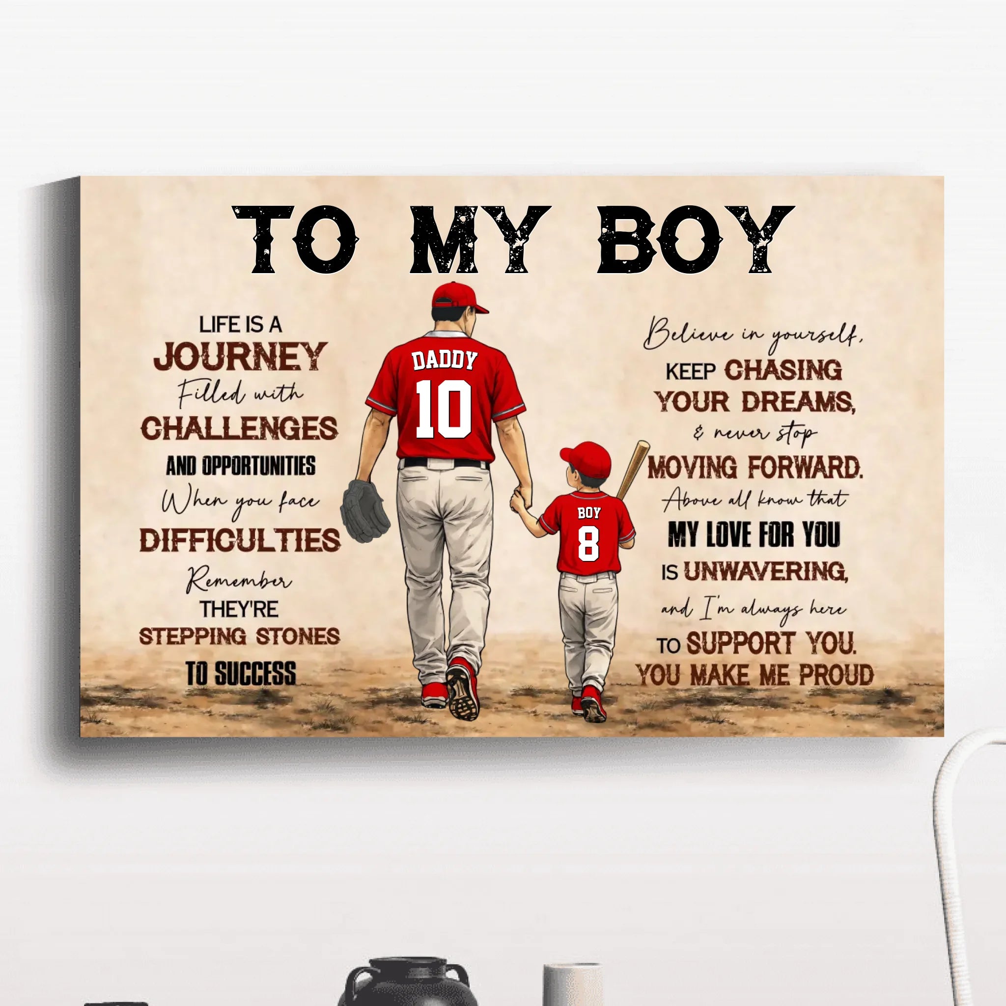 To My Boy Canvas – Personalized Baseball Wall Art, Father & Son Gift, Custom Name & Number, Inspirational Gift from Dad NTH26040240NVH