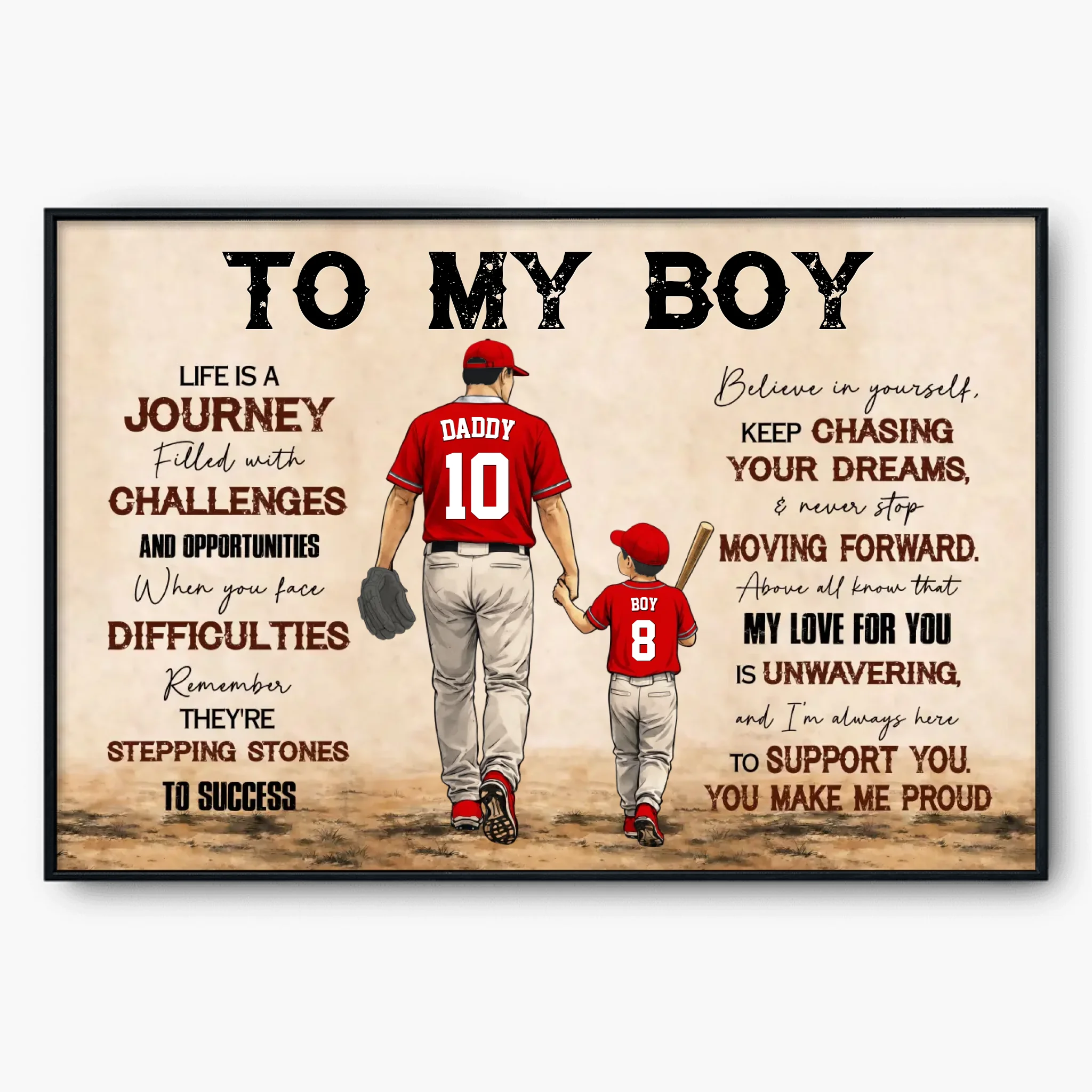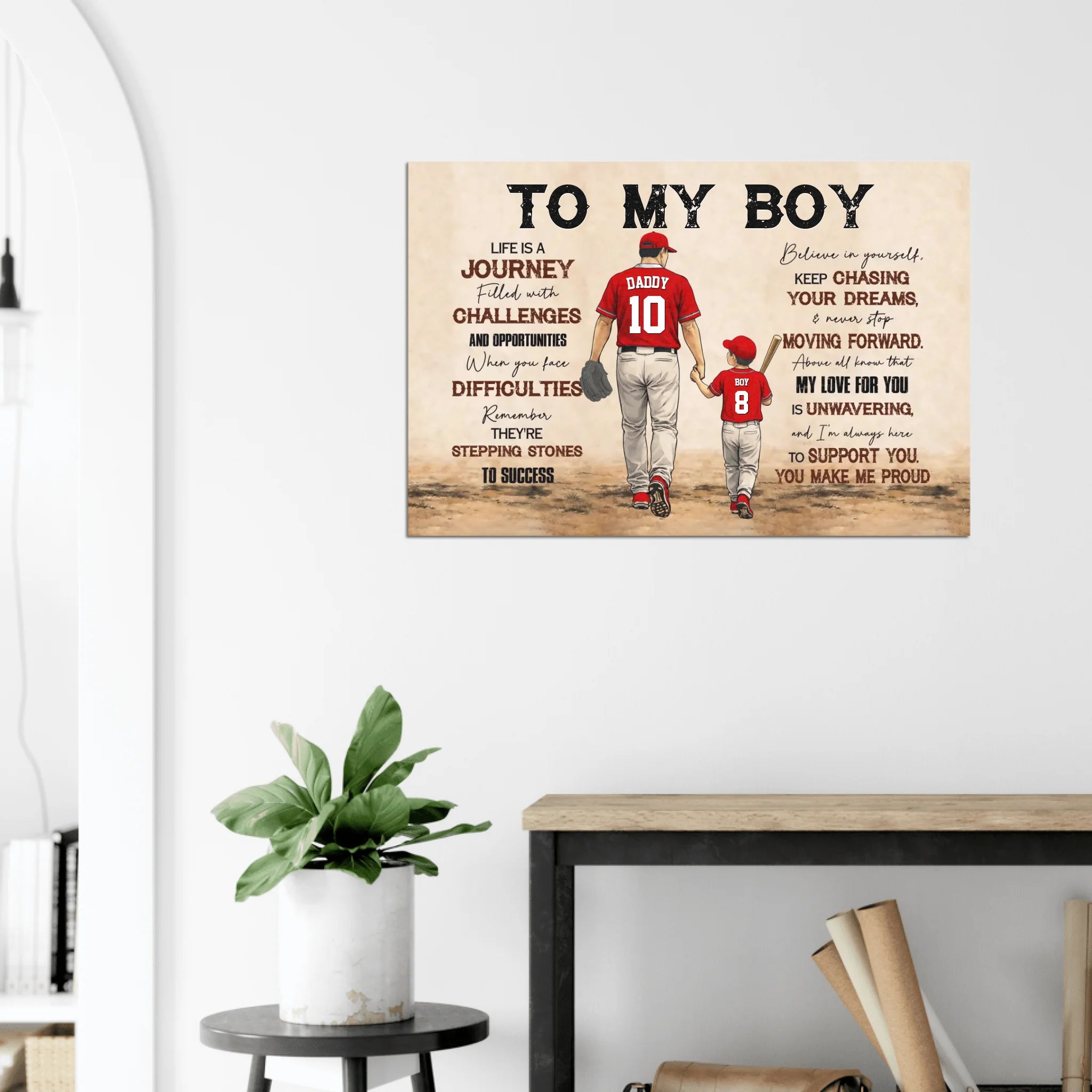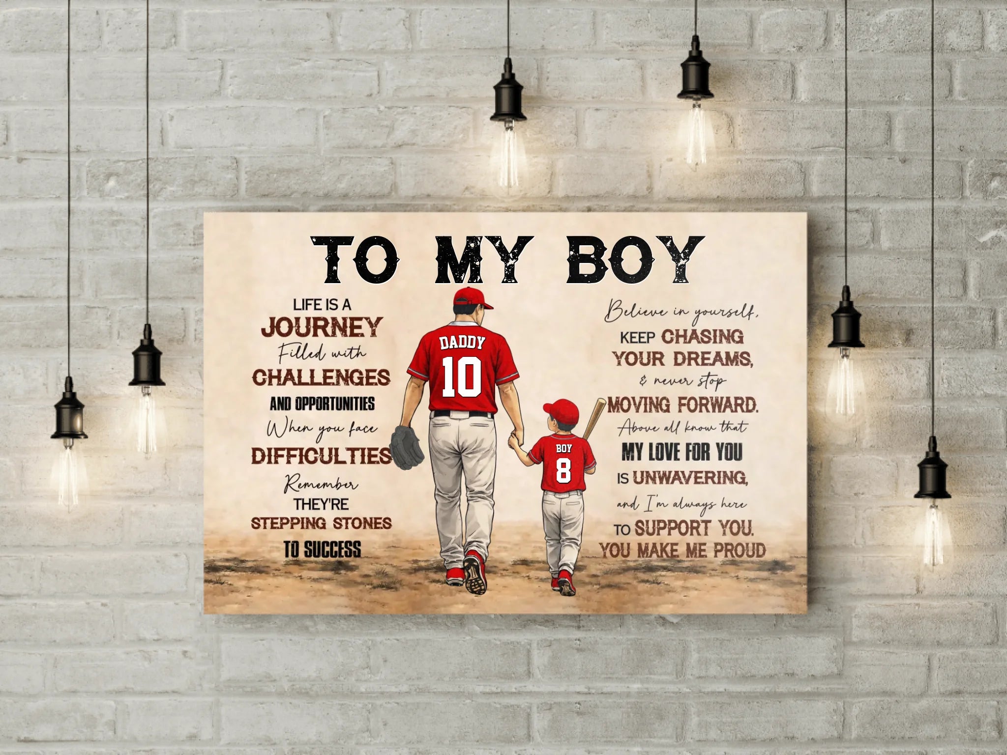 To My Boy Canvas – Personalized Baseball Wall Art, Father & Son Gift, Custom Name & Number, Inspirational Gift from Dad NTH26040240NVH
