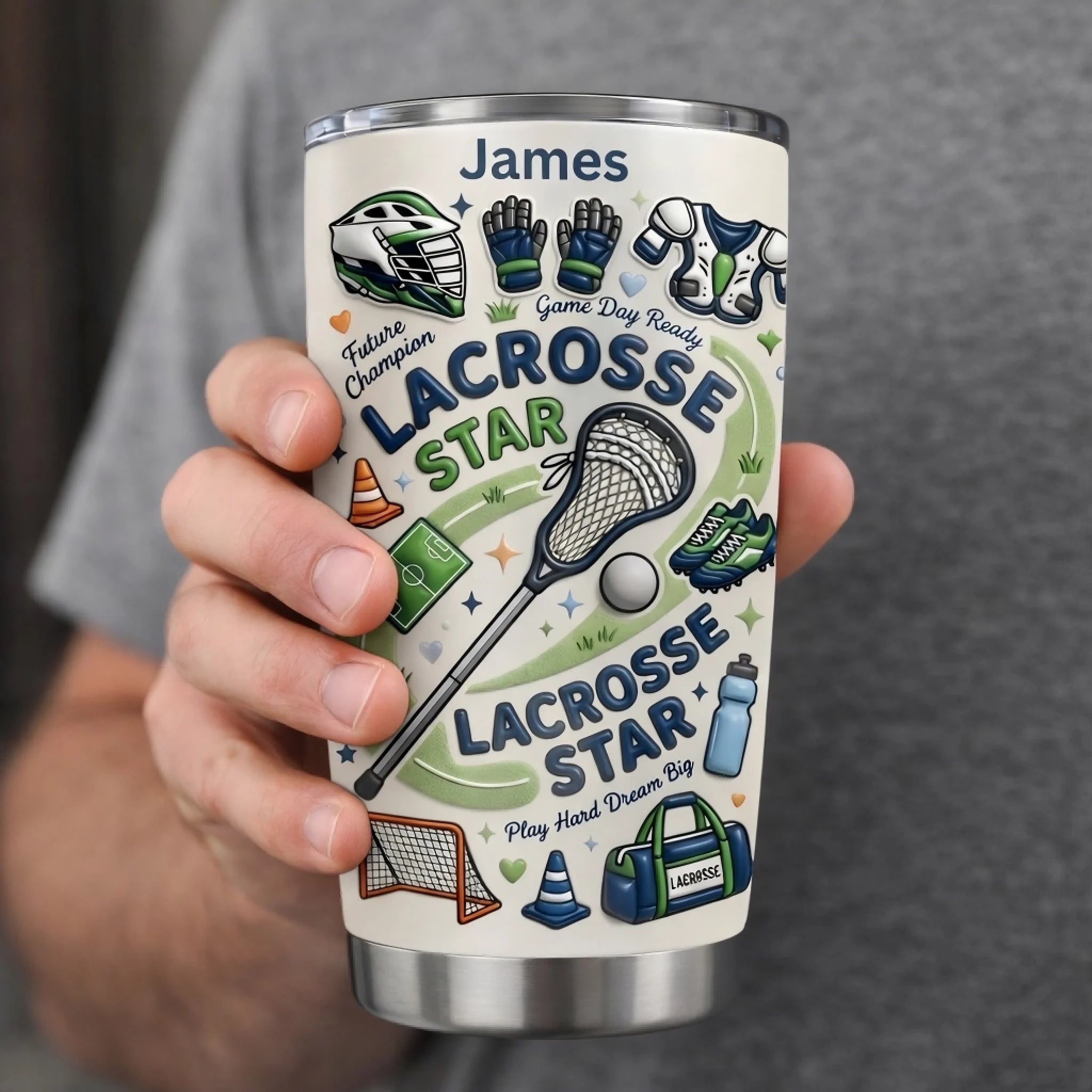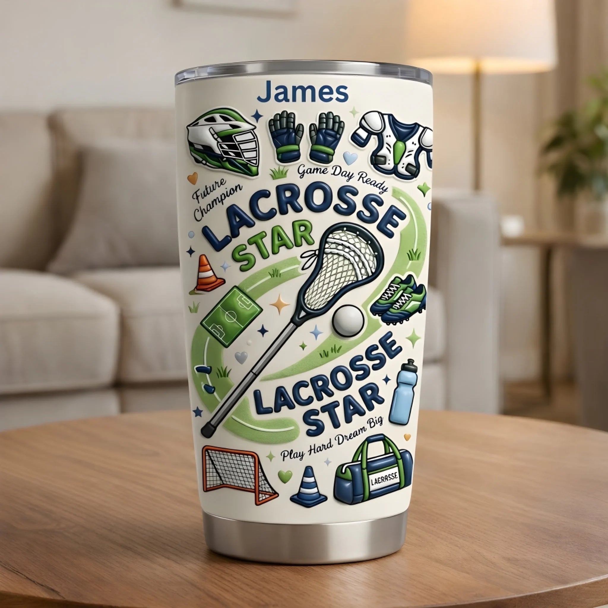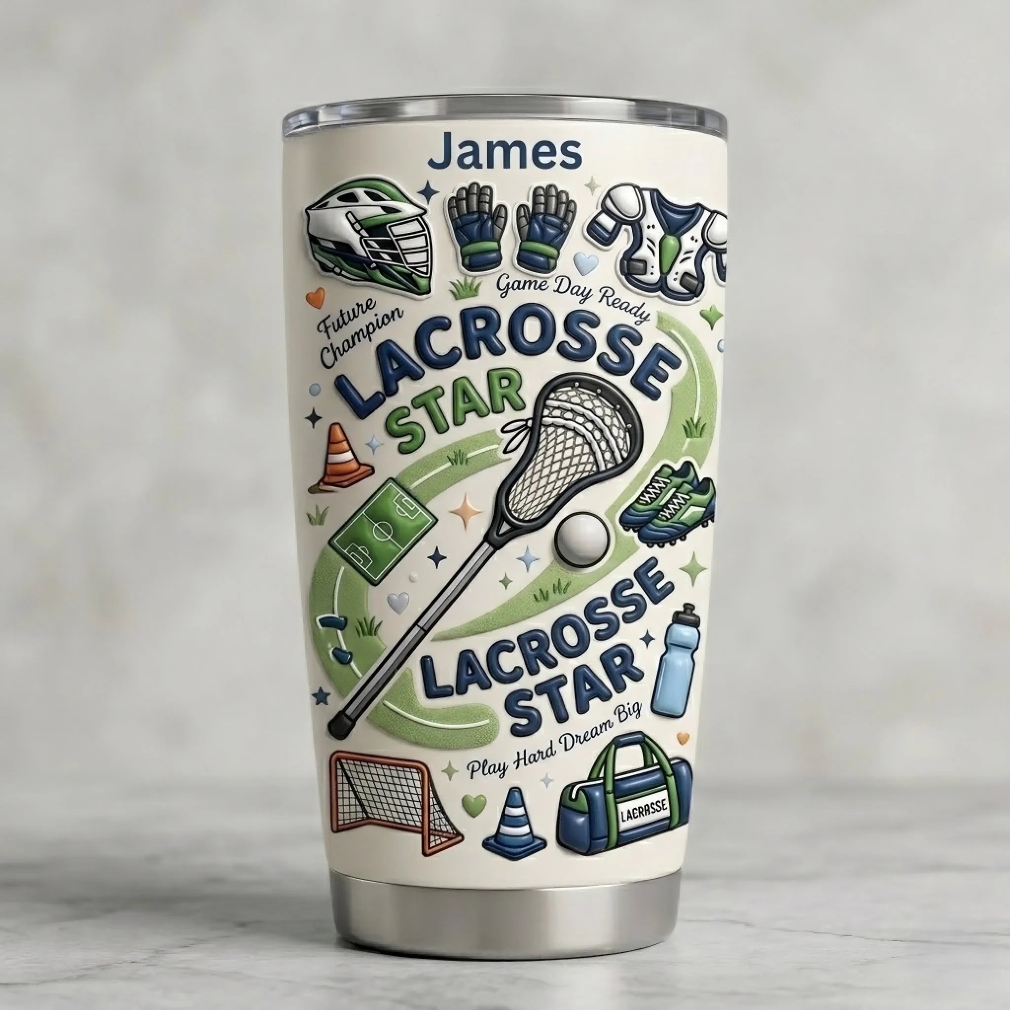 3D Inflated Effect Tumbler, Personalized Lacrosse Star Cup, Custom Name Lacrosse Tumbler, Kids Lacrosse Gift, Lacrosse Player Drinkware NTH26040243