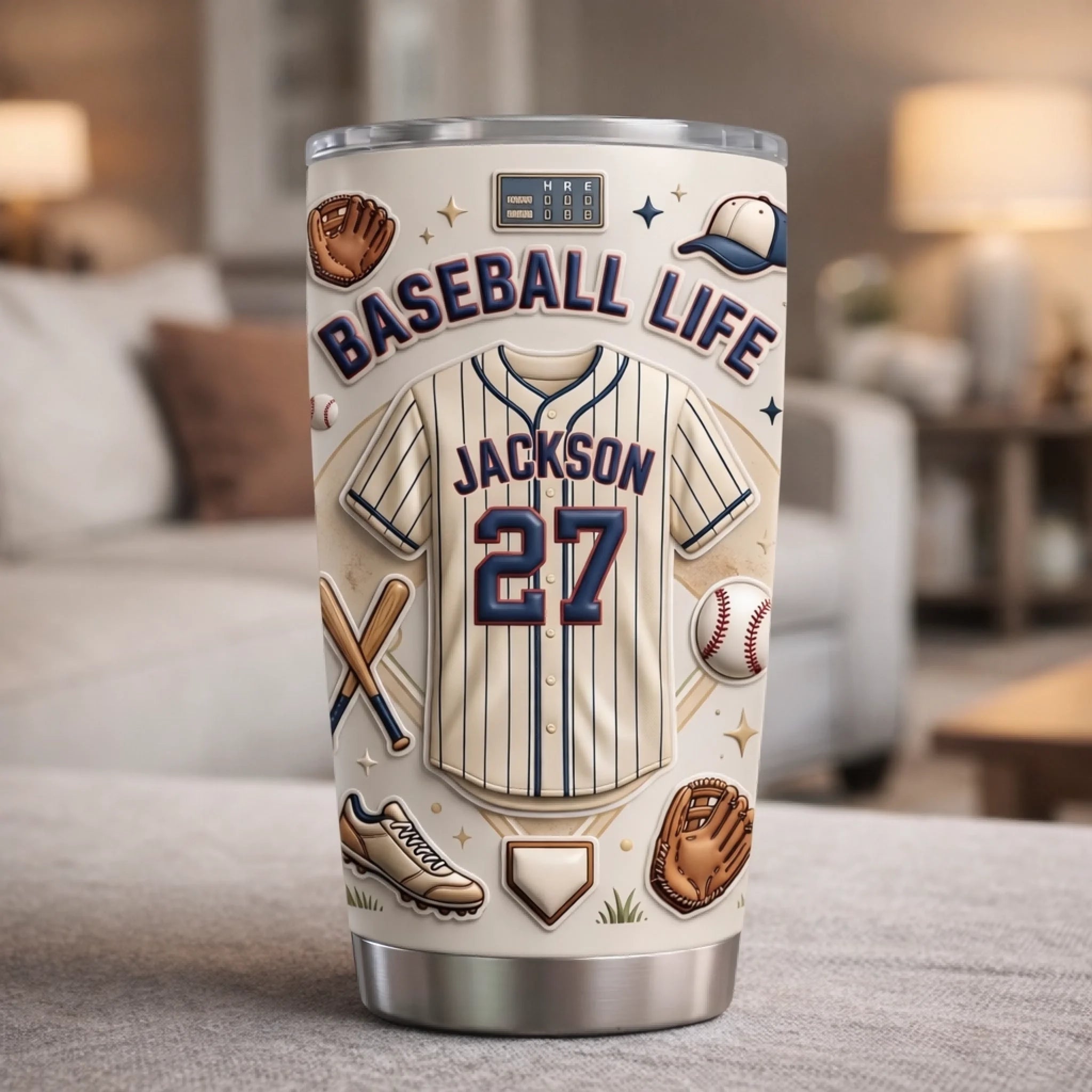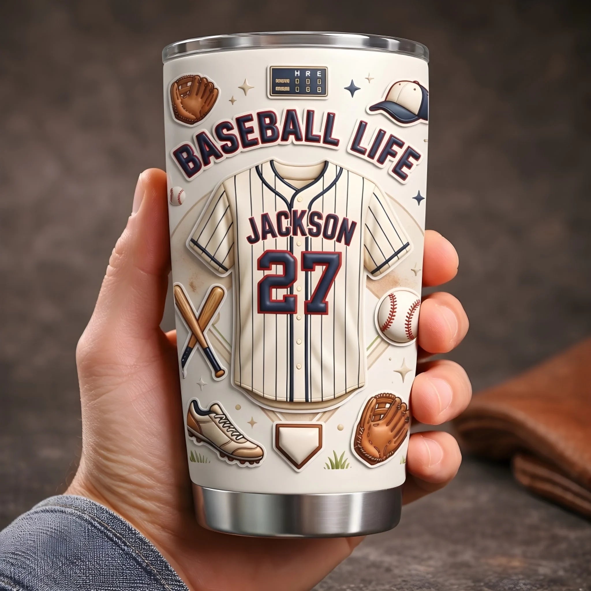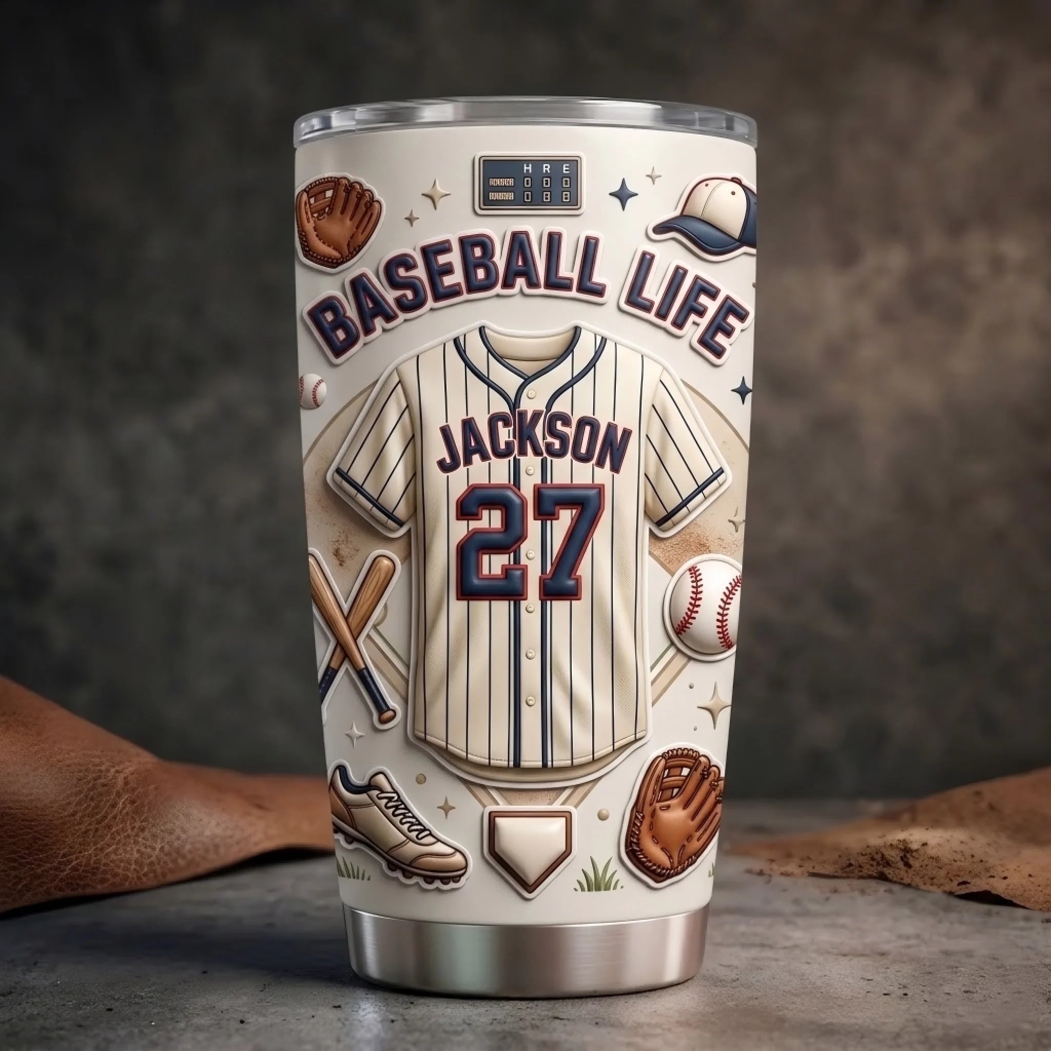 3D Inflated Effect Tumbler, Personalized Baseball Jersey Cup, Custom Name Number Tumbler, Baseball Life Gift, Player Drinkware NTH26040245