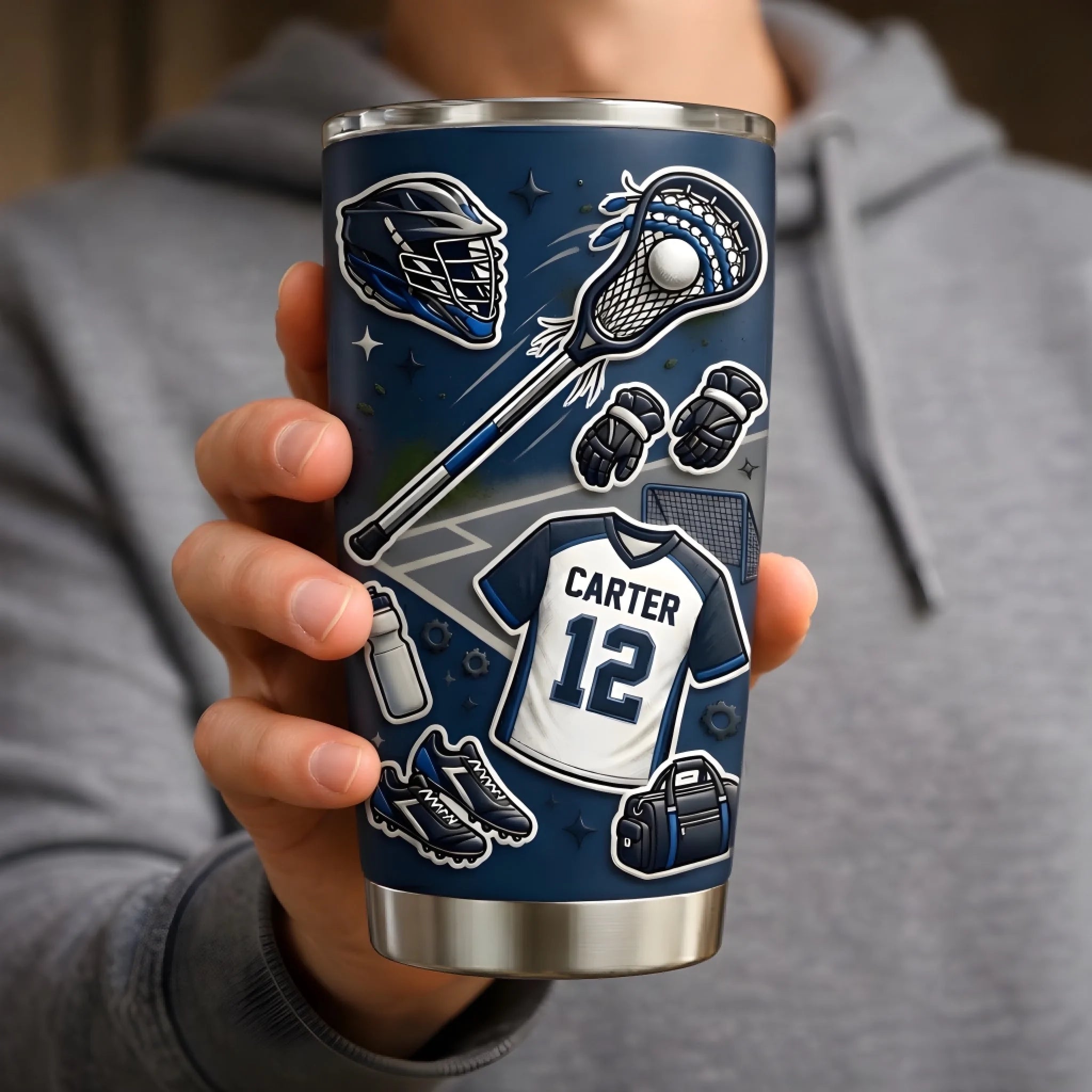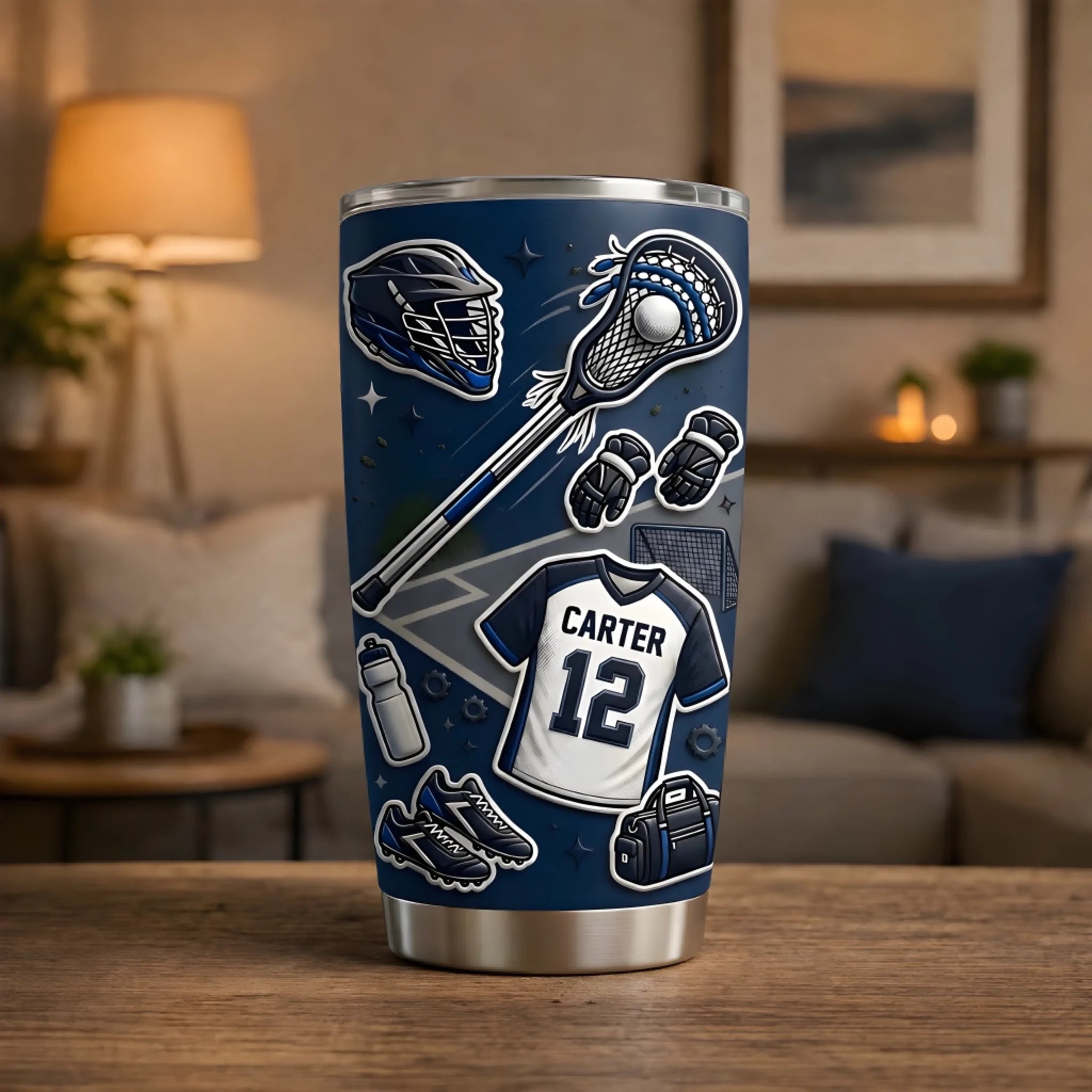 3D Inflated Effect Tumbler, Personalized Lacrosse Jersey Cup, Custom Name Number Tumbler, Lacrosse Player Gift, Sports Drinkware NTH26040248