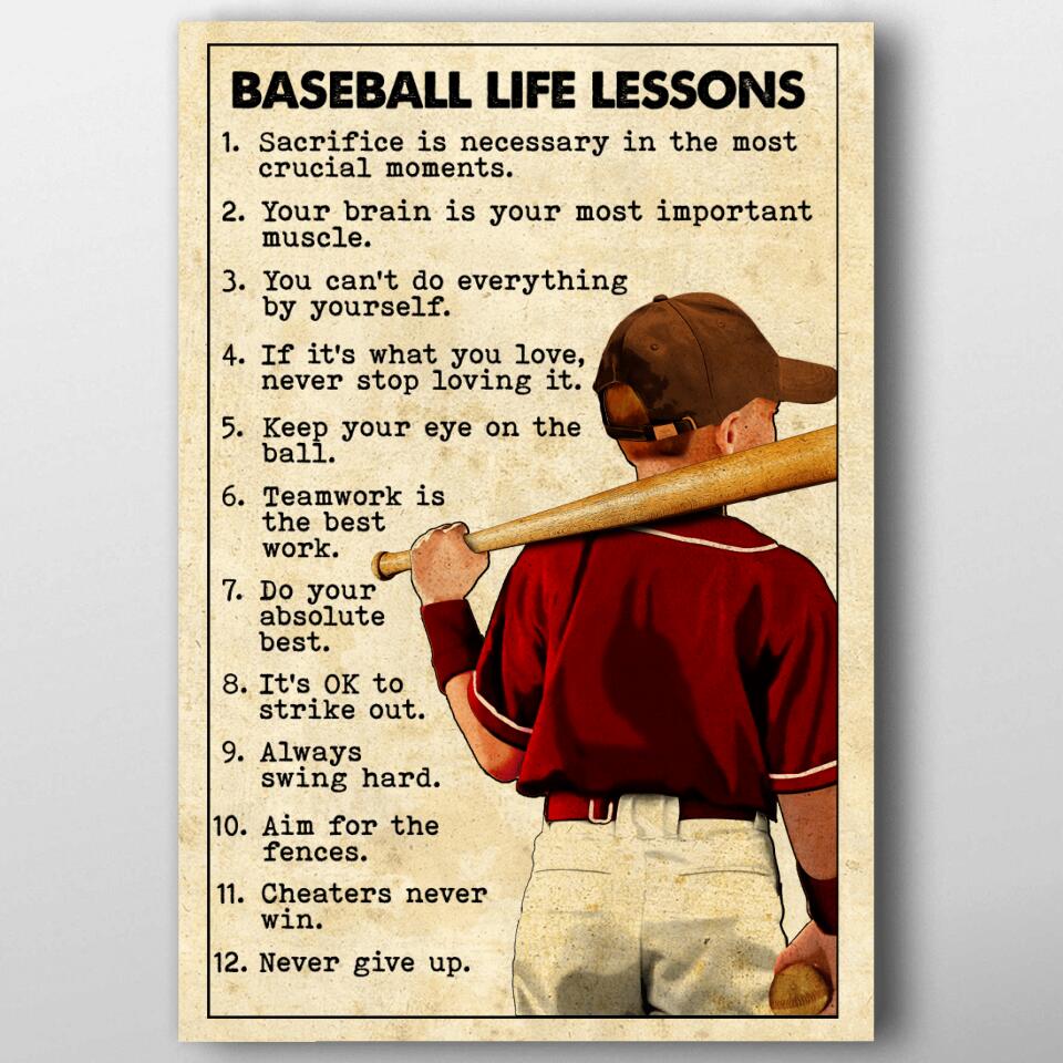 Custom Personalized Baseball Life Lessons Poster, Canvas with custom Name, Number & Appearance, Vintage Style, Sport Gifts For Son, Baseball Poster, Baseball Room Decor, Baseball Wall Decor, Baseball Poster Ideas NTB0228B04DP