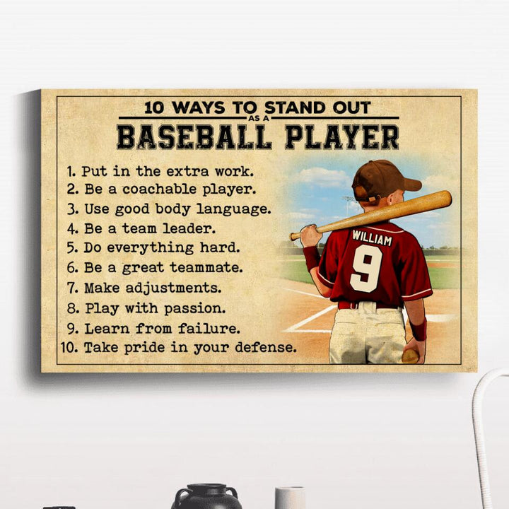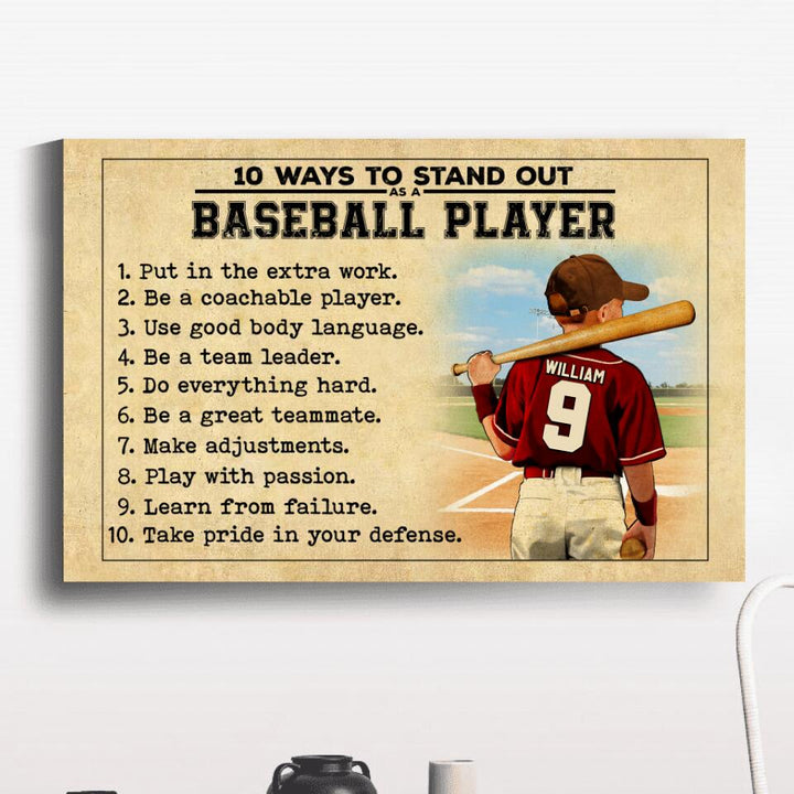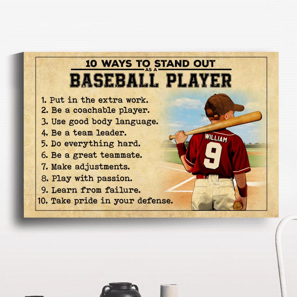 Custom Personalized 10 Ways to Stand Out Baseball Poster, Canvas with custom Name, Number & Appearance, Vintage Style, Sport Gifts For Son, Baseball Poster, Baseball Room Decor, Baseball Wall Decor, Baseball Poster Ideas NTB0328B01DP