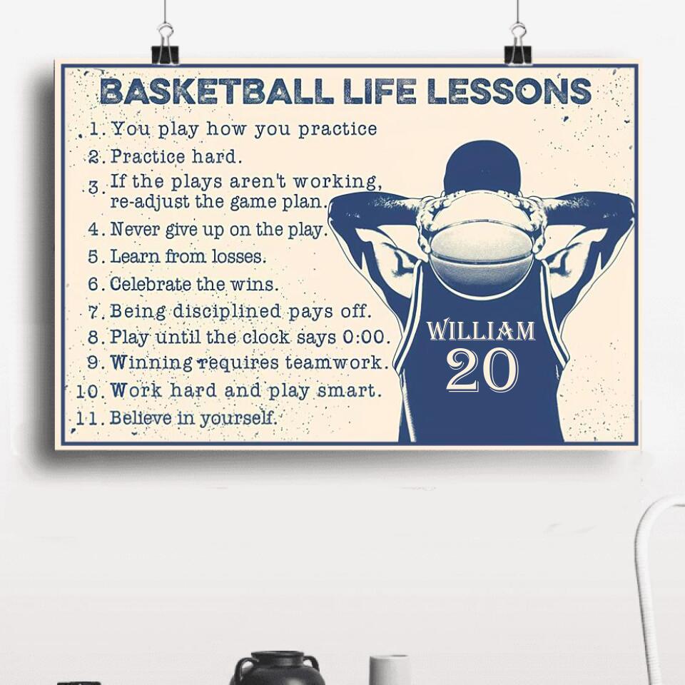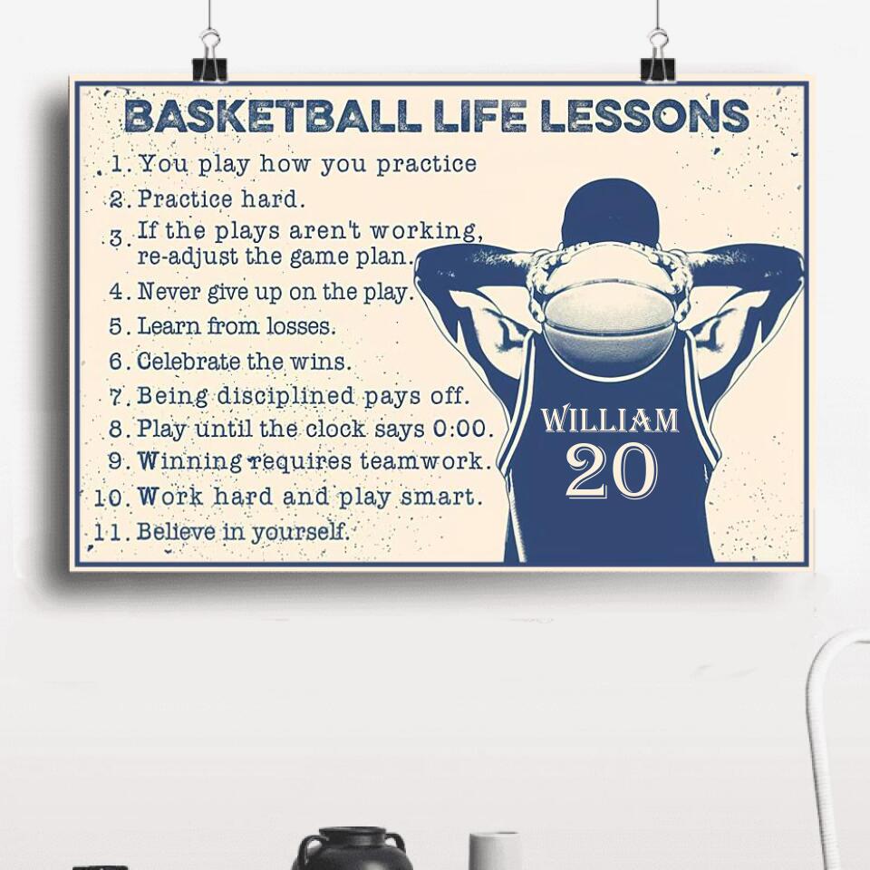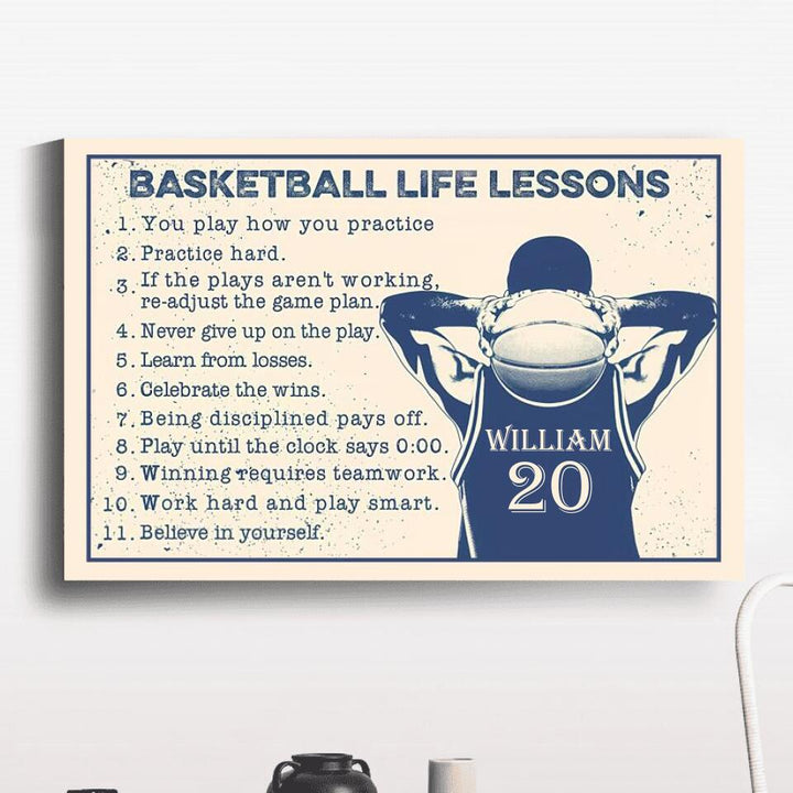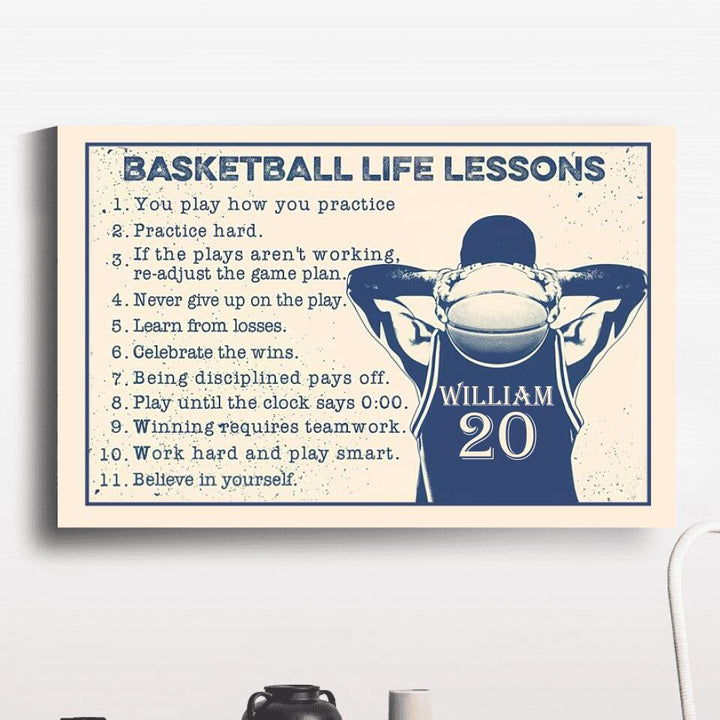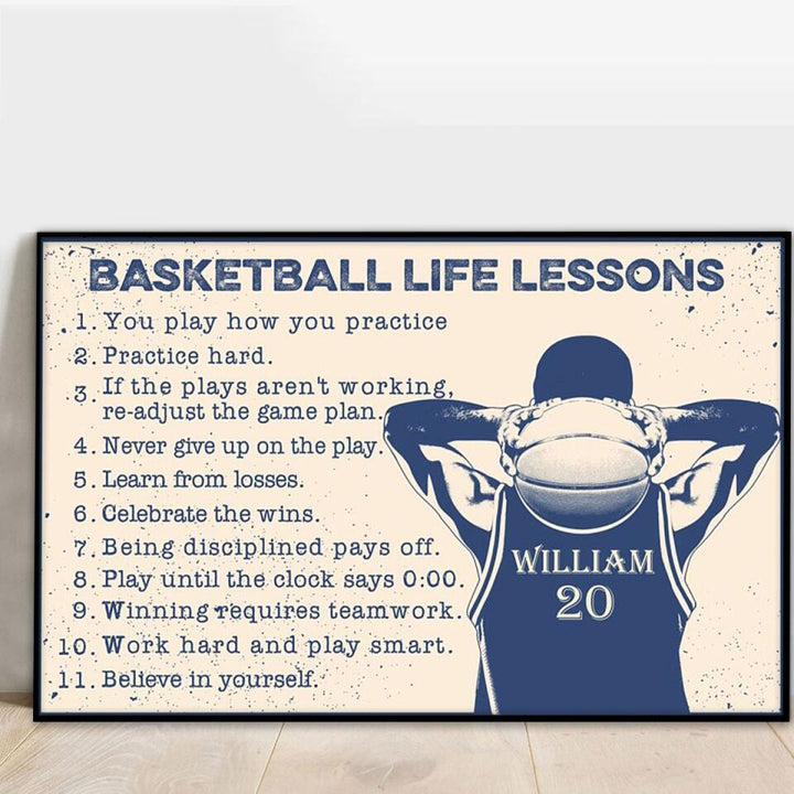 Custom Personalized Basketball Life Lessons Poster, Canvas with custom Name & Number, Vintage Style NTB021902CL