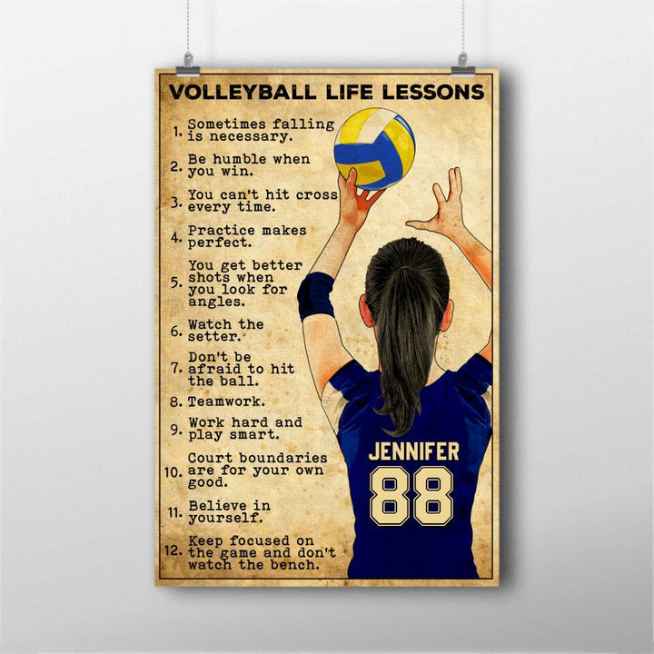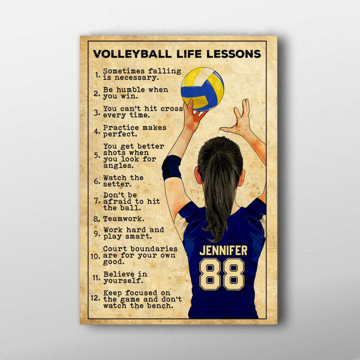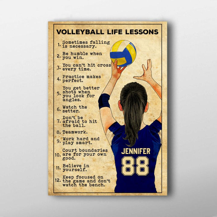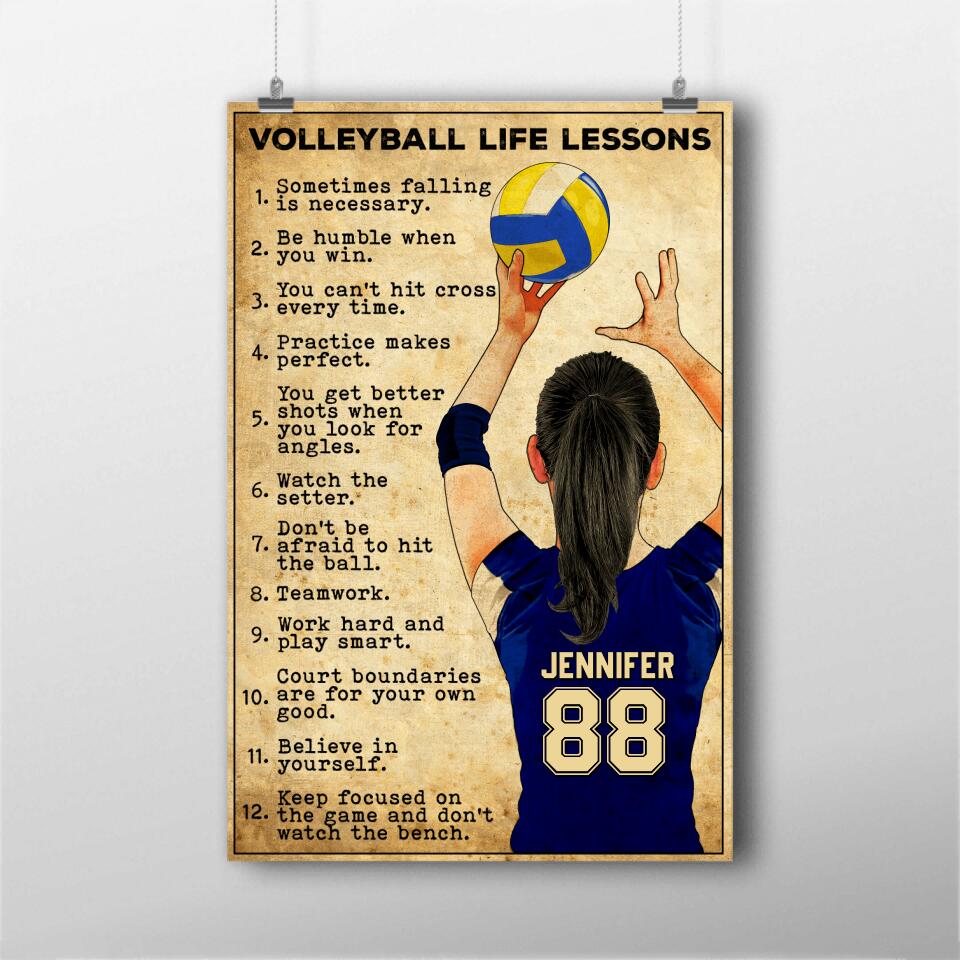 Custom Personalized Motivational Volleyball Life Lessons Poster, Canvas with custom Name, Number & Appearance, Vintage Style, Sport Gifts For Daughter NTB0318B01DP
